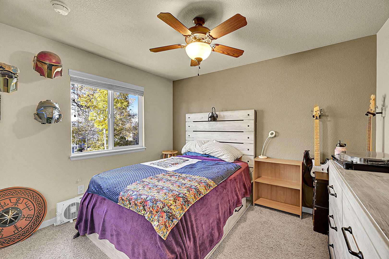 Baseboards Wall, Ceiling Fan, Drywall, Natural Light, Smoke Carbon Monoxide Detector, Textured Ceiling, Carpet