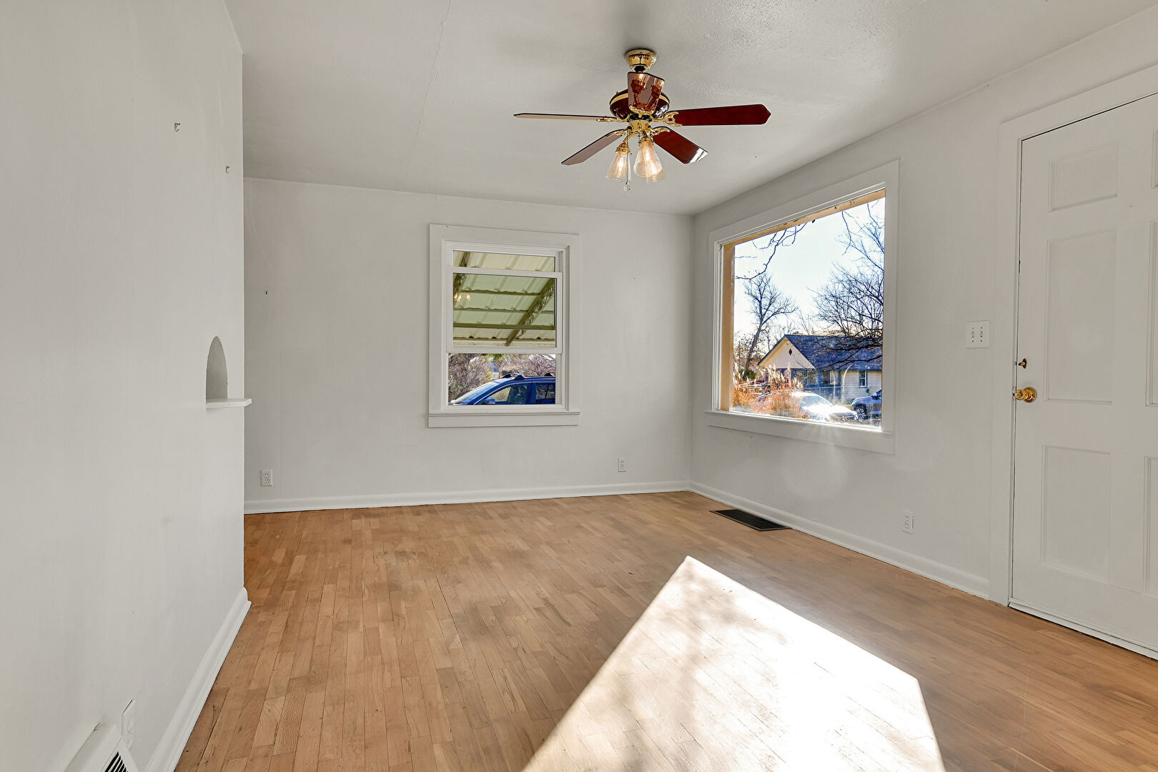 Baseboards Wall, Ceiling Fan, Drywall, Natural Light, Vent, Wood Finish Floor, Baseboards Wall, Vent