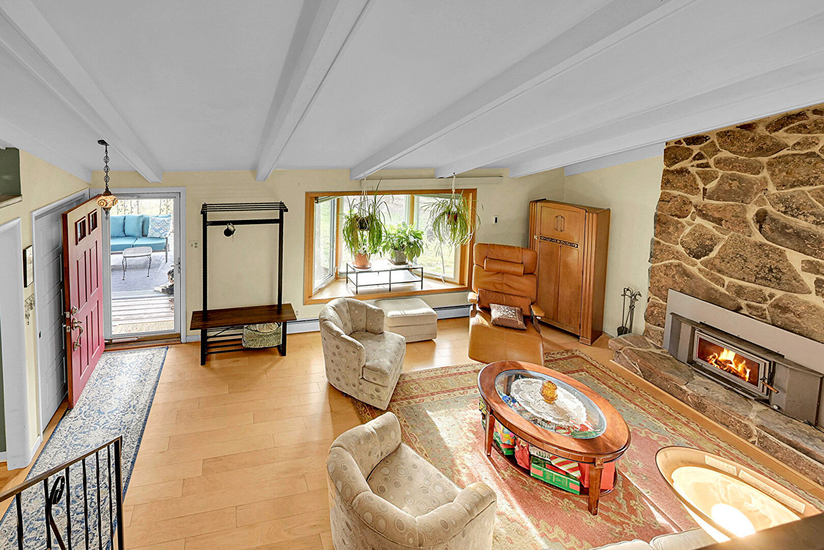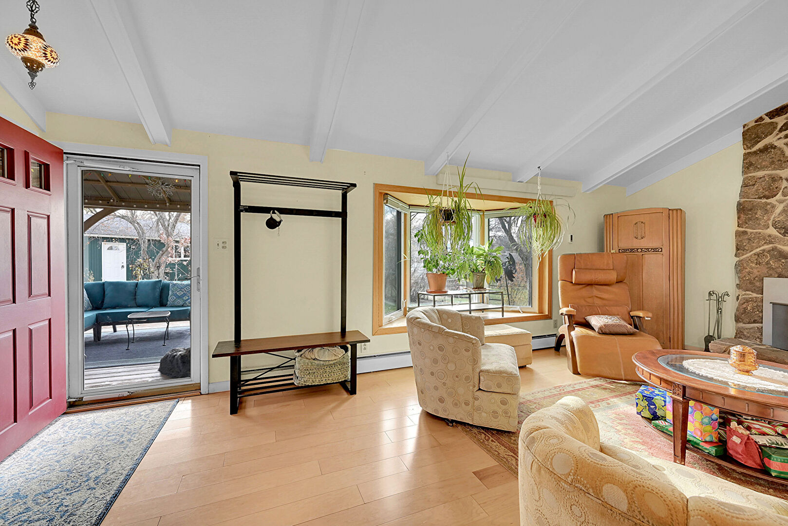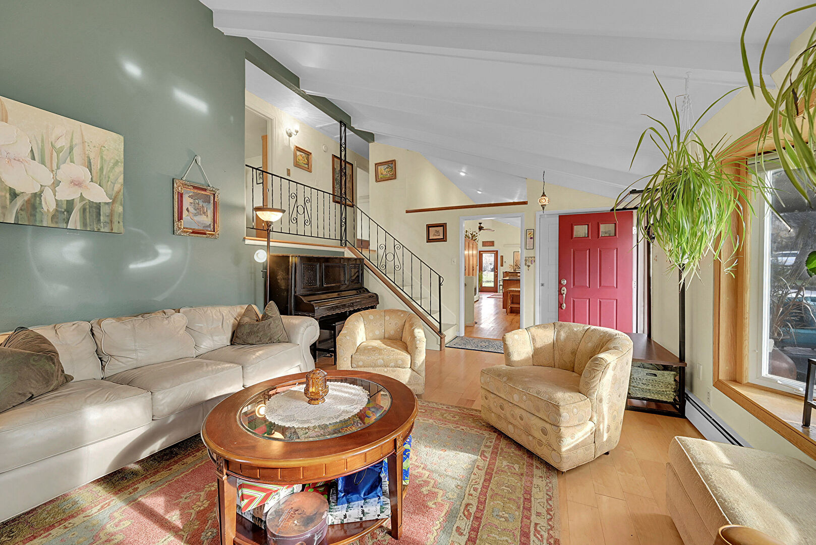 Baseboard Radiator, Beamed Ceiling, Cathedral Ceiling, Ceiling Fan, Drywall, Fireplace, High Ceiling, Natural Light, Notable Chandelier, Office Area, Recessed Lighting, Stairs, Vaulted Ceiling, Wood Finish Floor, Beamed Ceiling, Drywall, Fireplace, Recessed Lighting, Vaulted Ceiling, Wood Finish Floor