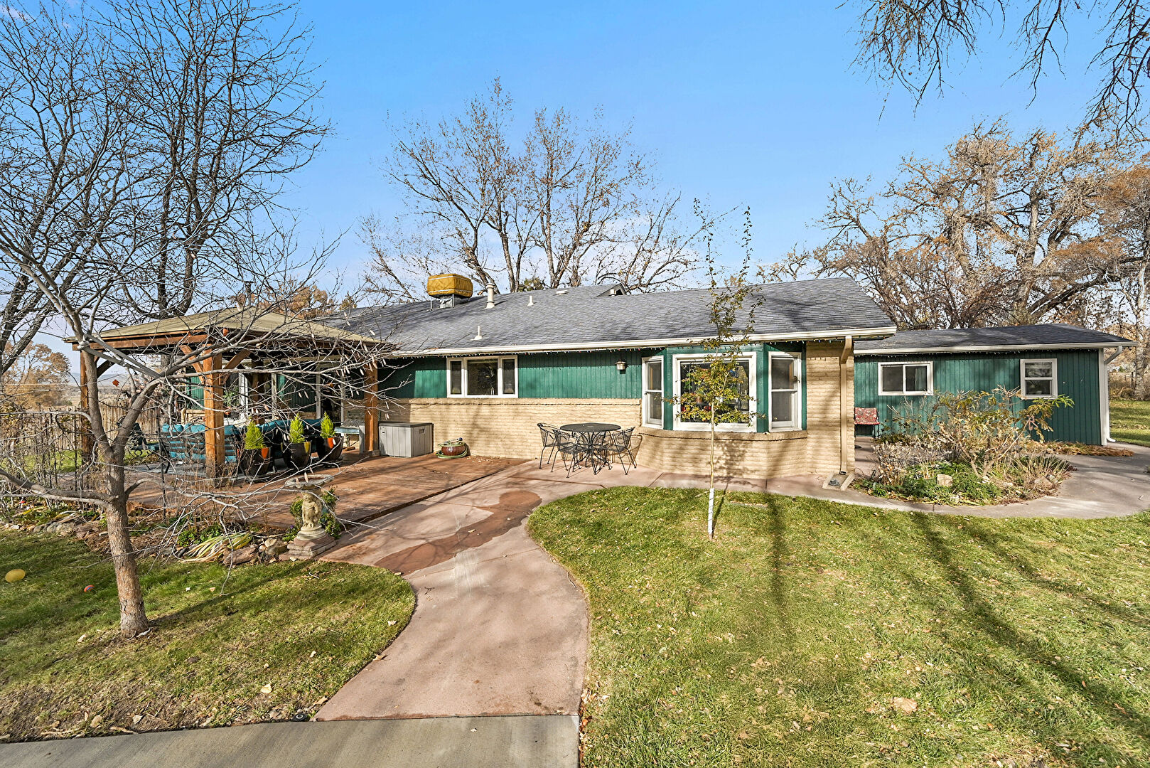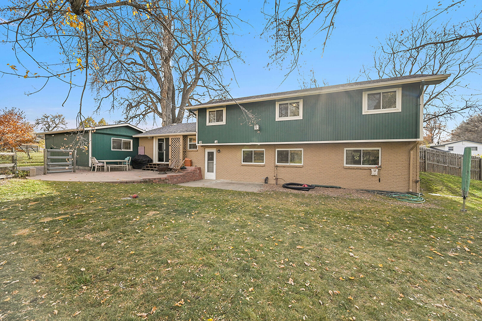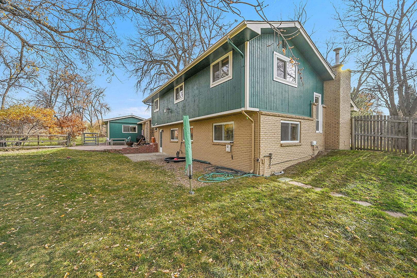 Brick Siding, Downspout, Entry Steps, Fence, Gate, Gutters, Lawn, Patio, Vertical Siding, Patio, Vertical Siding