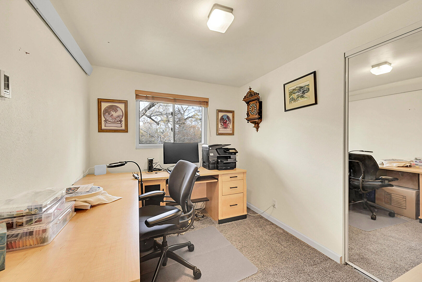 Baseboard Radiator, Baseboards Wall, Carpet, Ceiling Fan, Closet, Drywall, Natural Light, Office Area, Wood Finish Floor, Baseboards Wall, Ceiling Fan, Closet, Drywall, Natural Light