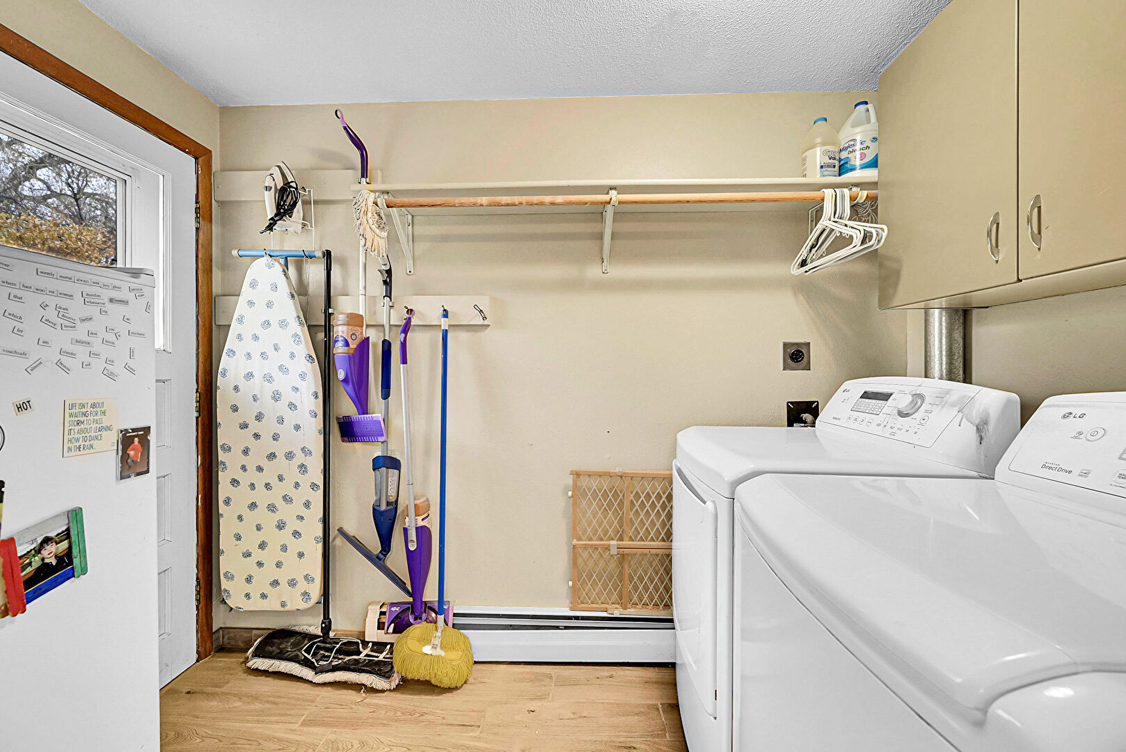 Baseboard Radiator, Drywall, Electric Dryer Hookup, Laundry, Textured Ceiling, Wood Finish Floor, Natural Light