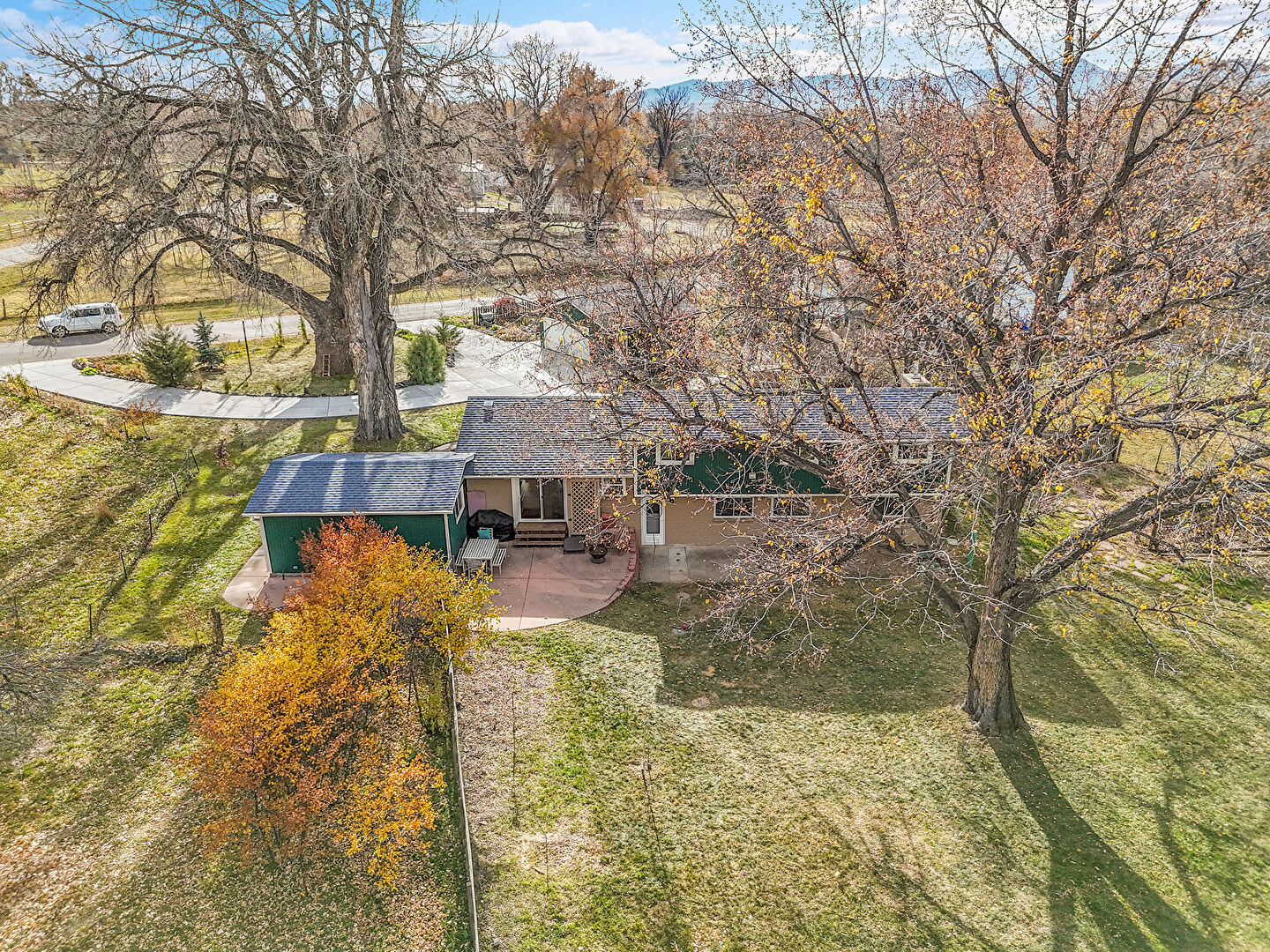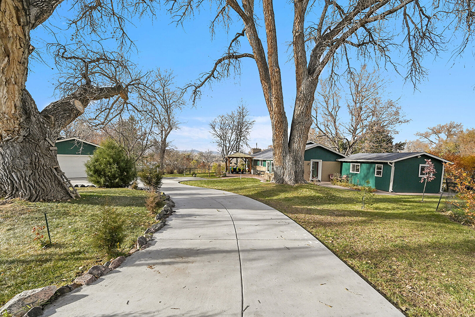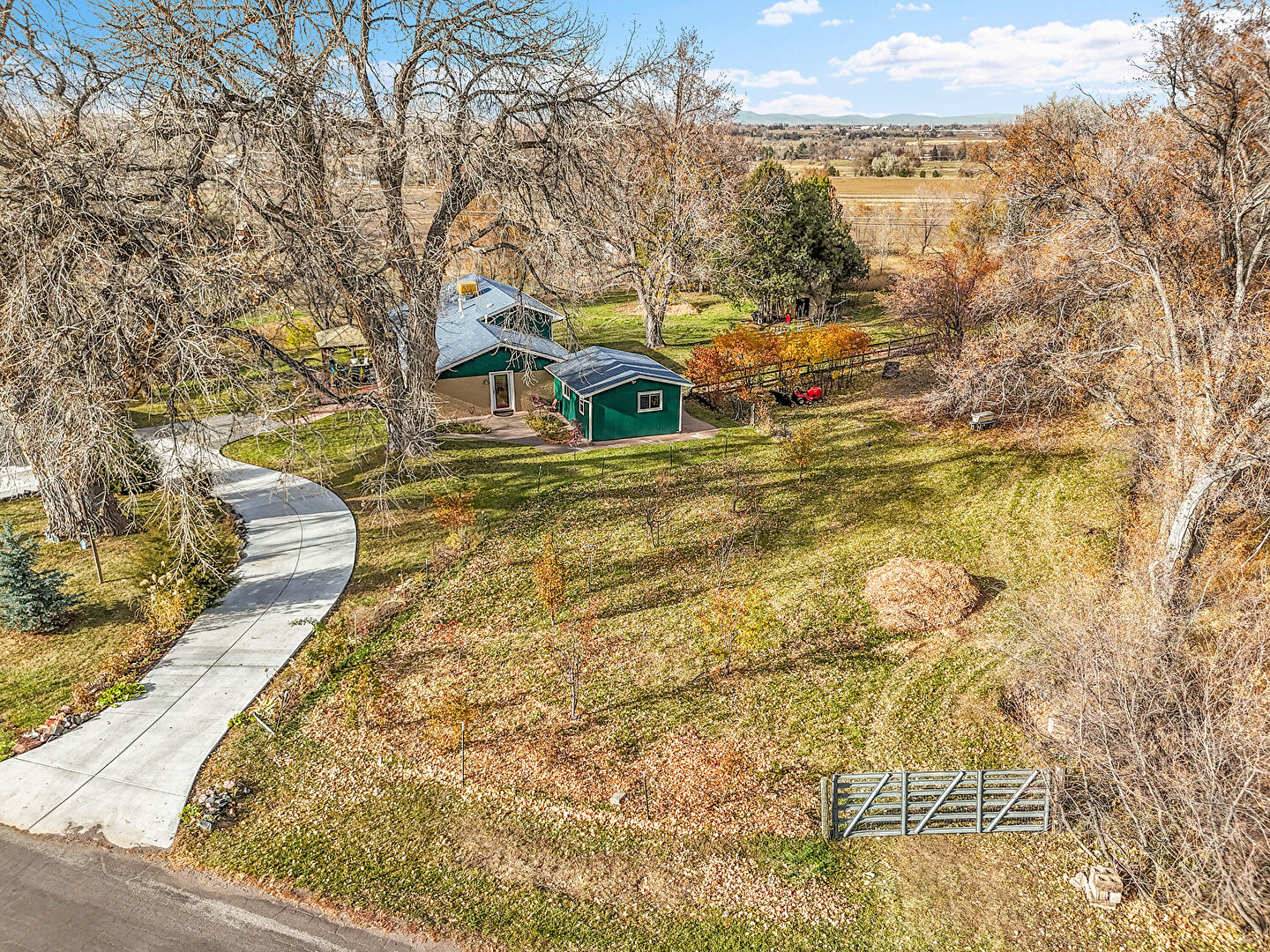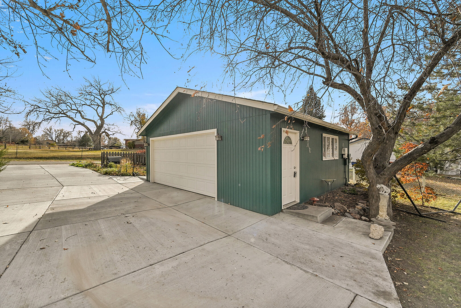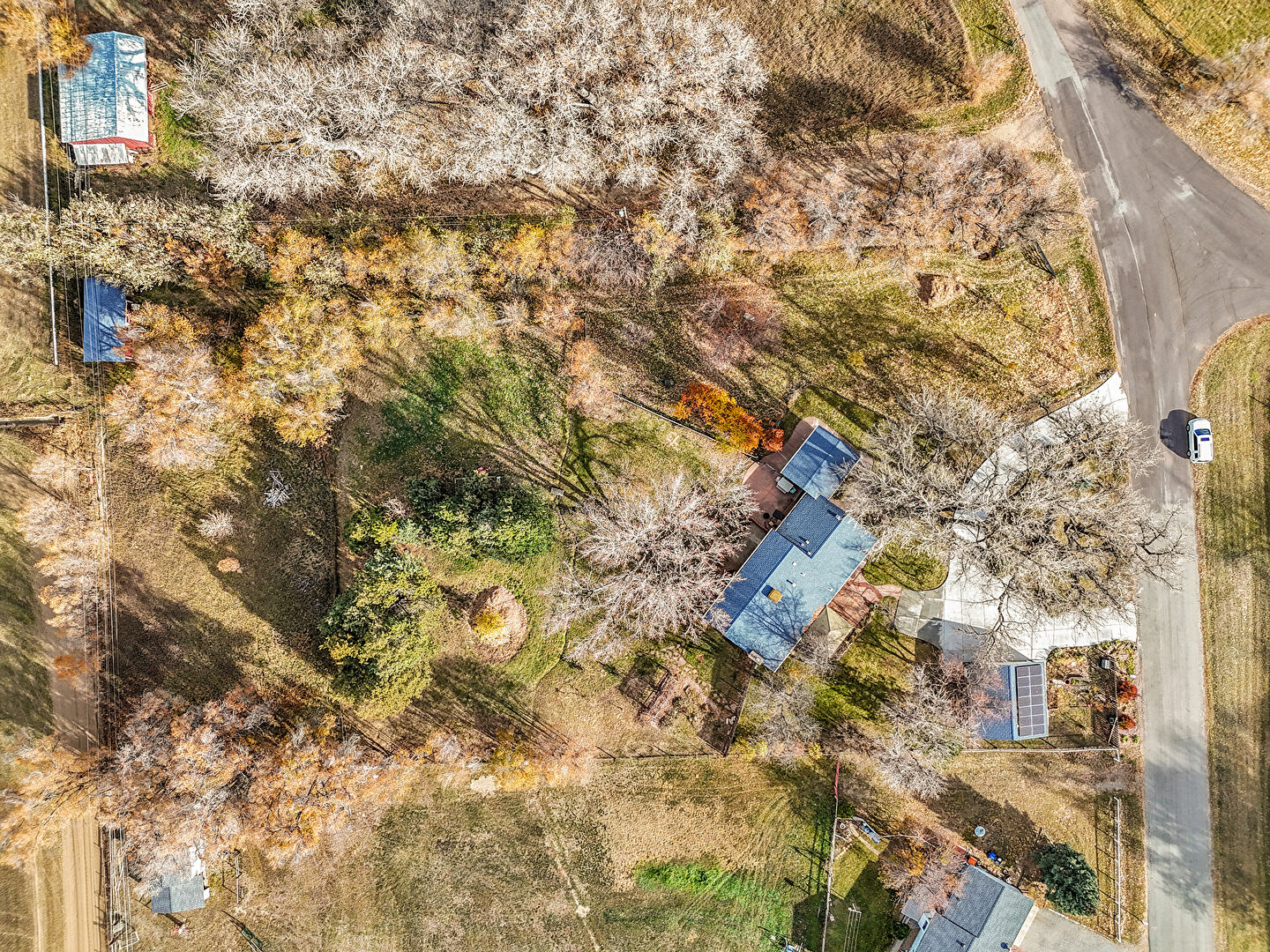 Brick Siding, Central Ac, Chimney, Concrete Foundation, Deck, Detached Garage, Downspout, Driveway, Fence, Gas Meter, Gazebo, Gutters, Lawn, Outdoor Living Space, Outdoor Structure, Parking Pad, Patio, Shingle Roof, Solar Panels, Vertical Siding, Woods View, Downspout, Driveway, Fence, Gate, Gazebo, Gutters, Vertical Siding