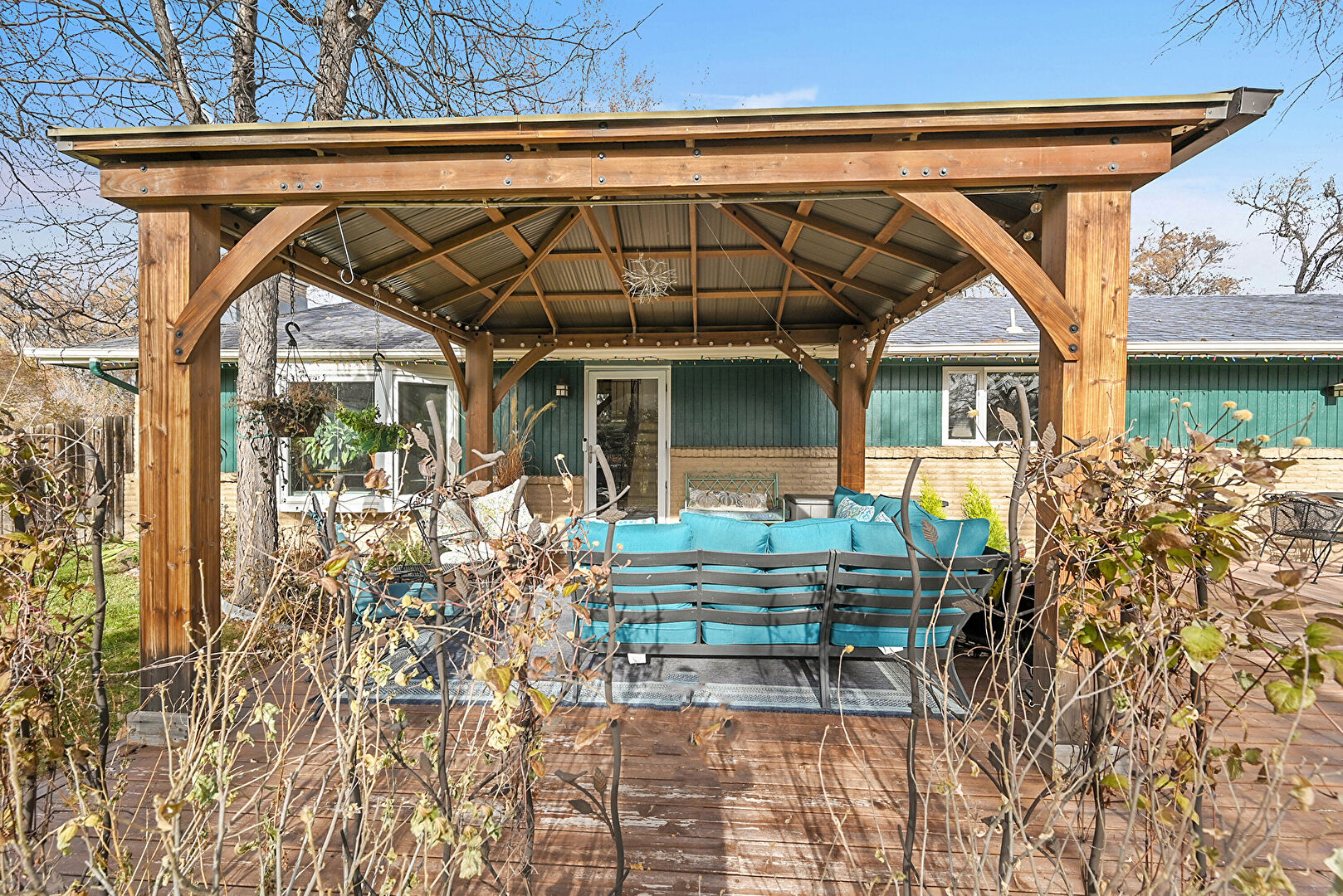 Deck, Gazebo, Lawn, Outdoor Living Space, Patio, Vent, Fence, Gazebo, Outdoor Dining Area, Outdoor Living Space