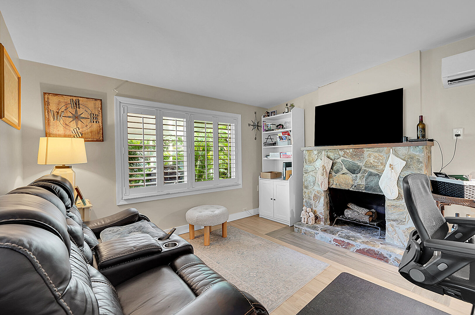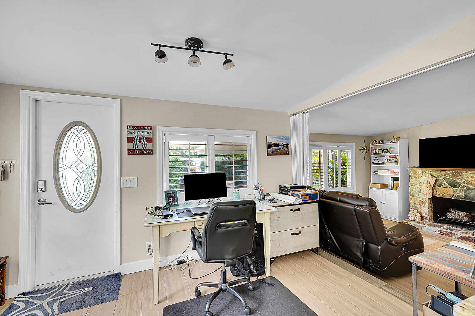 Baseboards Wall, Drywall, Fireplace, Natural Light, Wall Mounted Ac, Wood Finish Floor, Drywall, Office Area