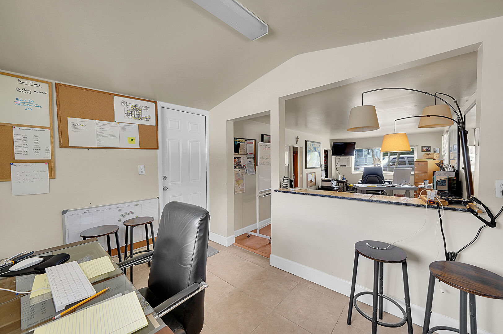 Baseboards Wall, Driveway, Drywall, Fireplace, Natural Light, Office Area, Outdoor Structure, Radiator, Split Ac Unit, Tile Floor, Vaulted Ceiling, Wall Mounted Ac, Wood Finish Floor, Drywall, Office Area, Parking Pad, Split Ac Unit, Tile Floor, Vaulted Ceiling, Wall Mounted Ac