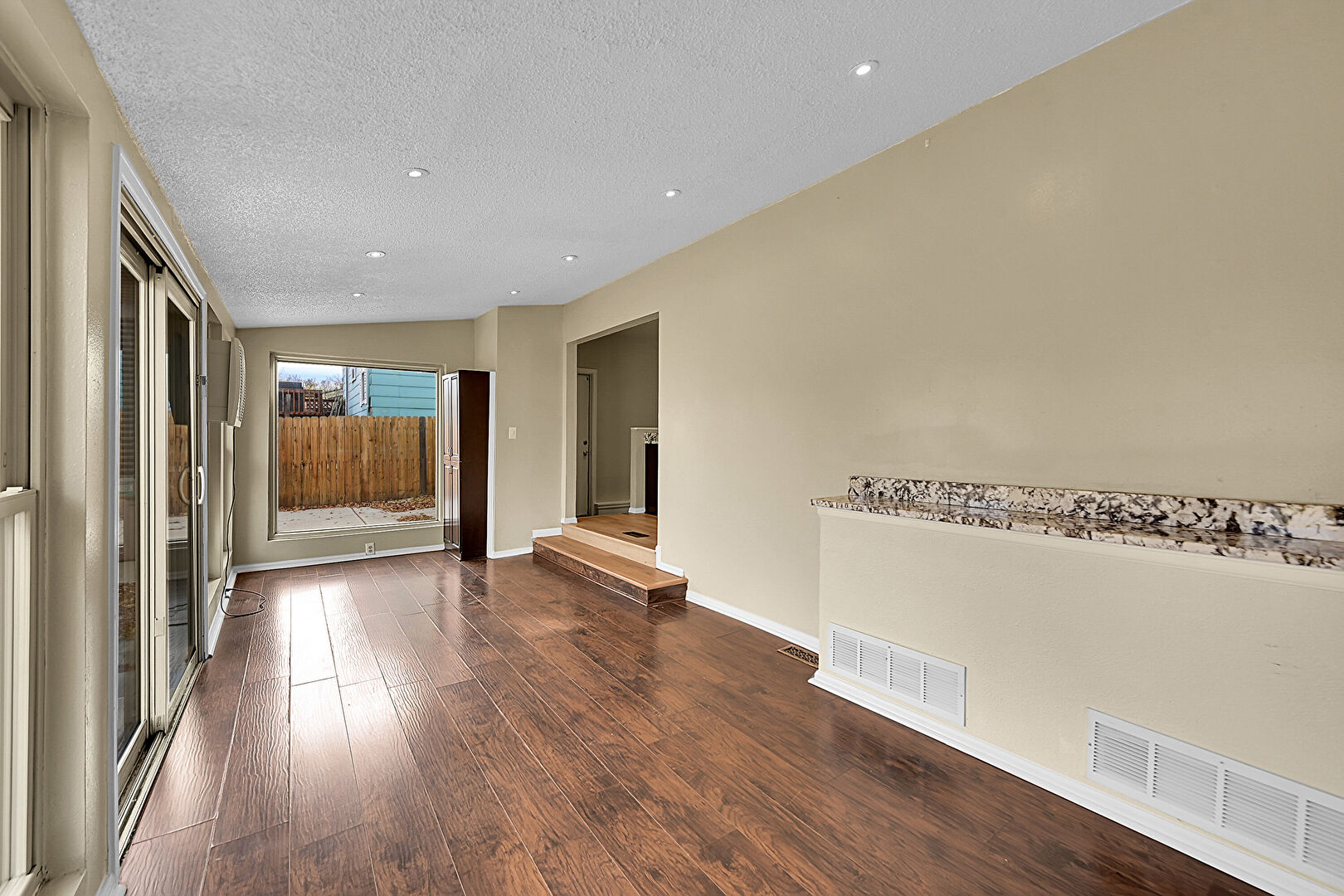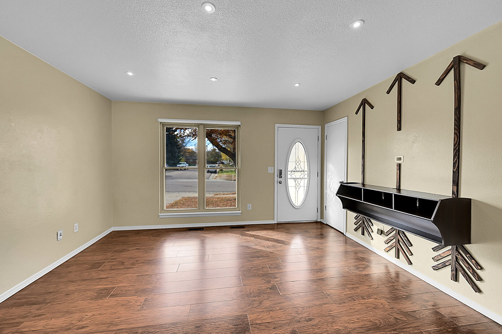 Baseboards Wall, Drywall, Natural Light, Textured Ceiling, Wood Finish Floor, Recessed Lighting