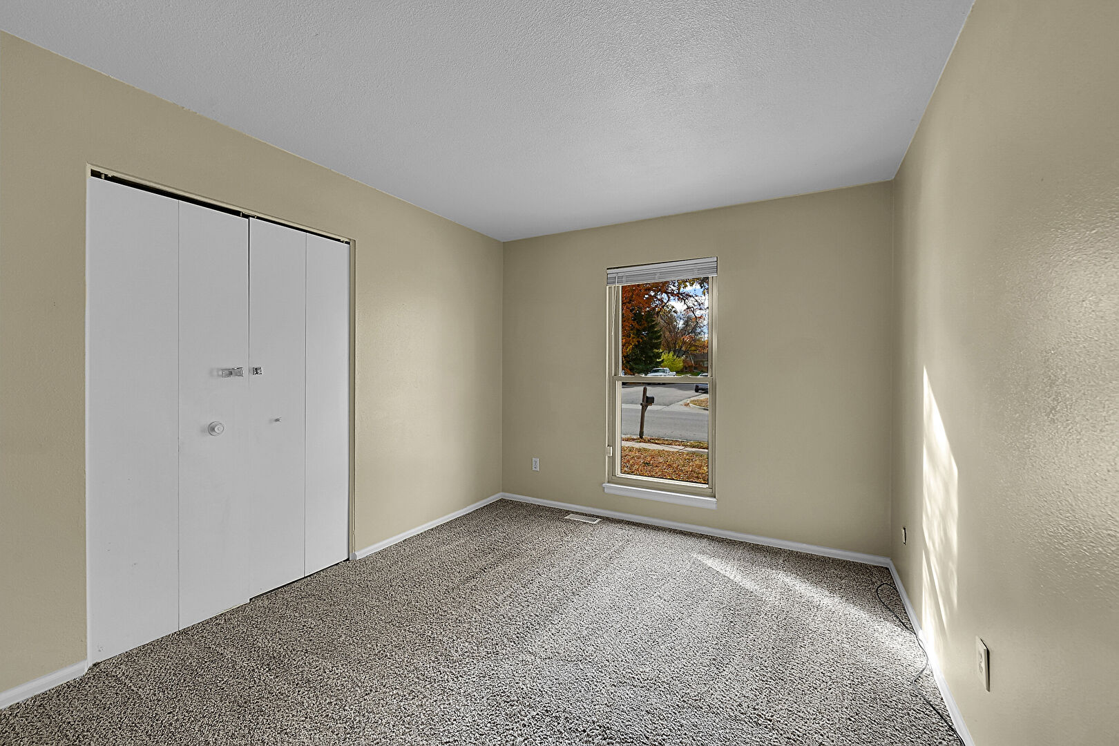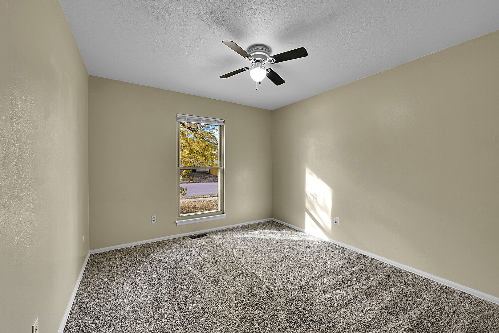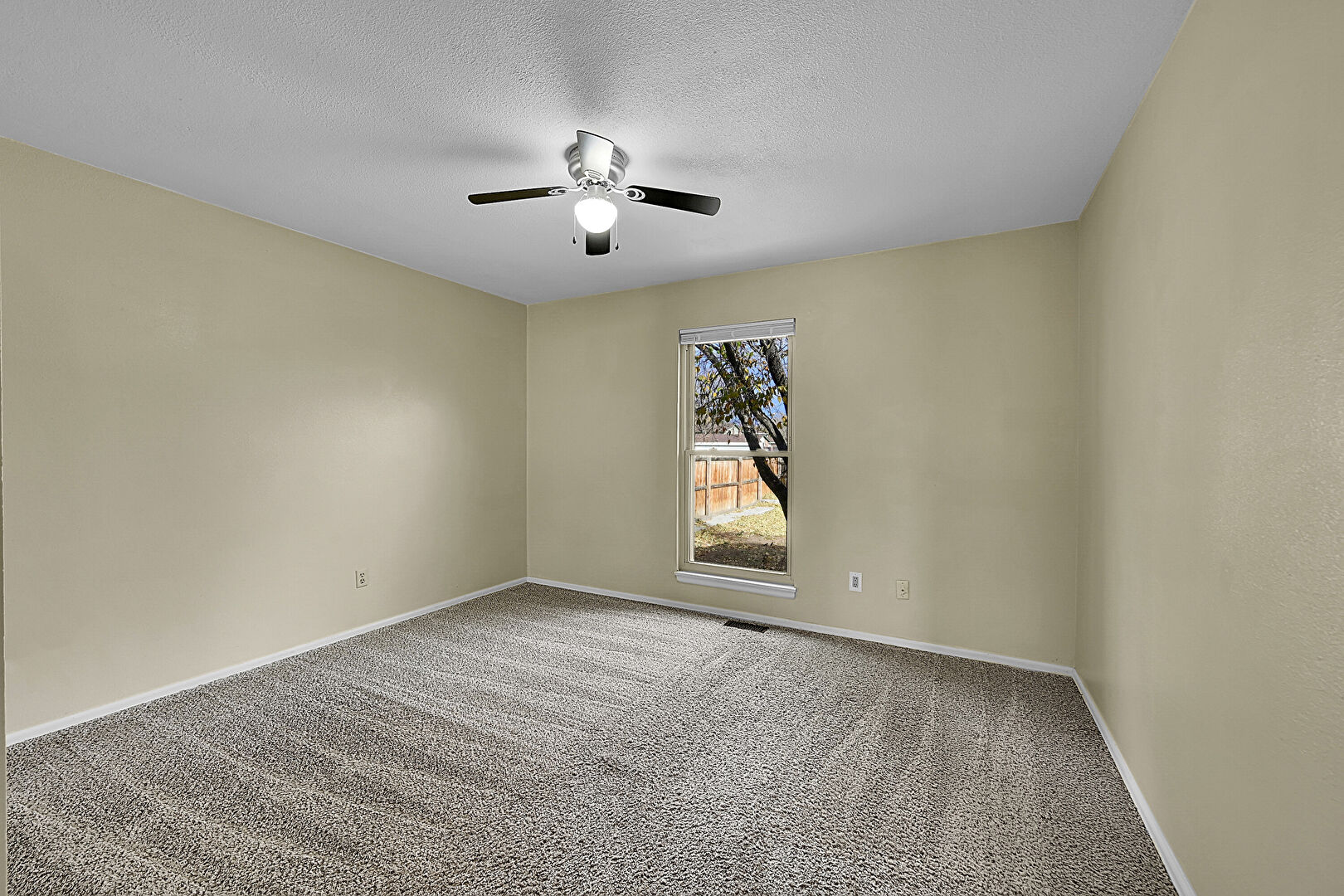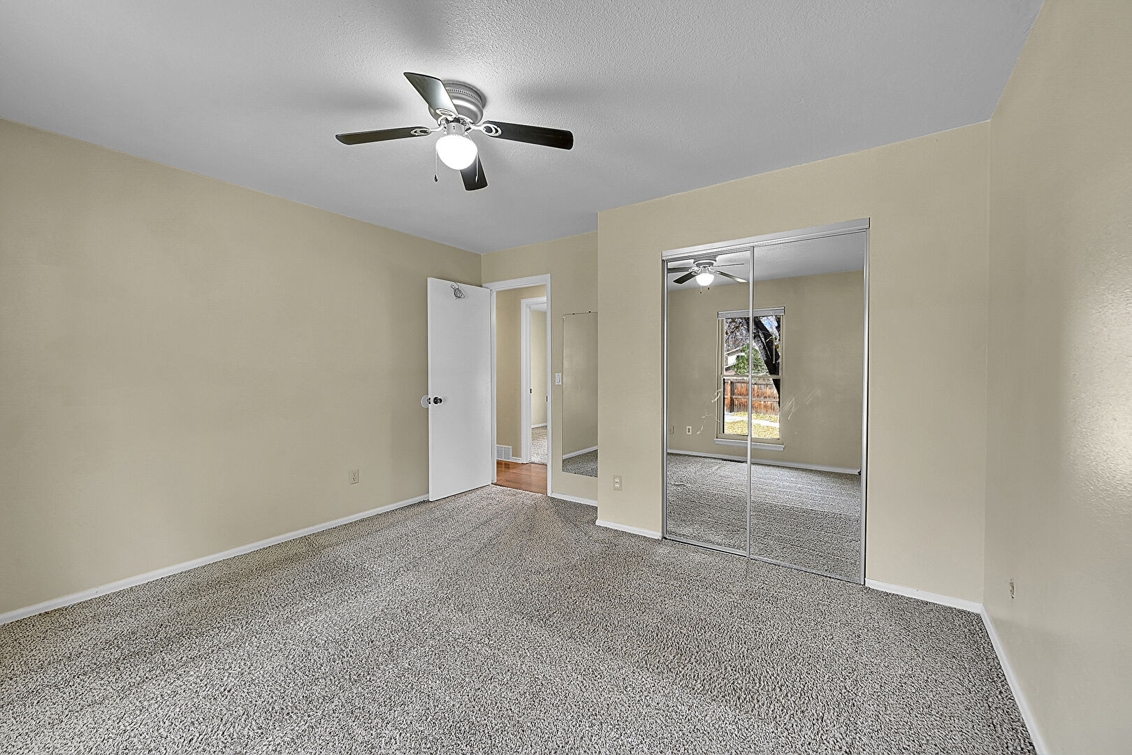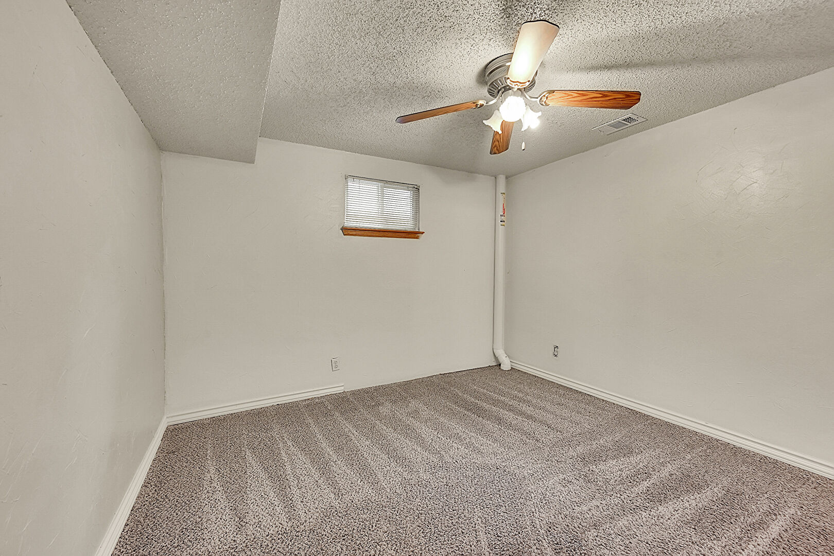 Baseboards Wall, Ceiling Fan, Closet, Drywall, Natural Light, Textured Ceiling, Vent, Carpet