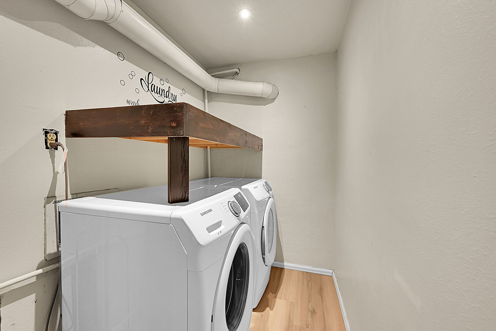 Baseboards Wall, Laundry, Wood Finish Floor, Textured Wall