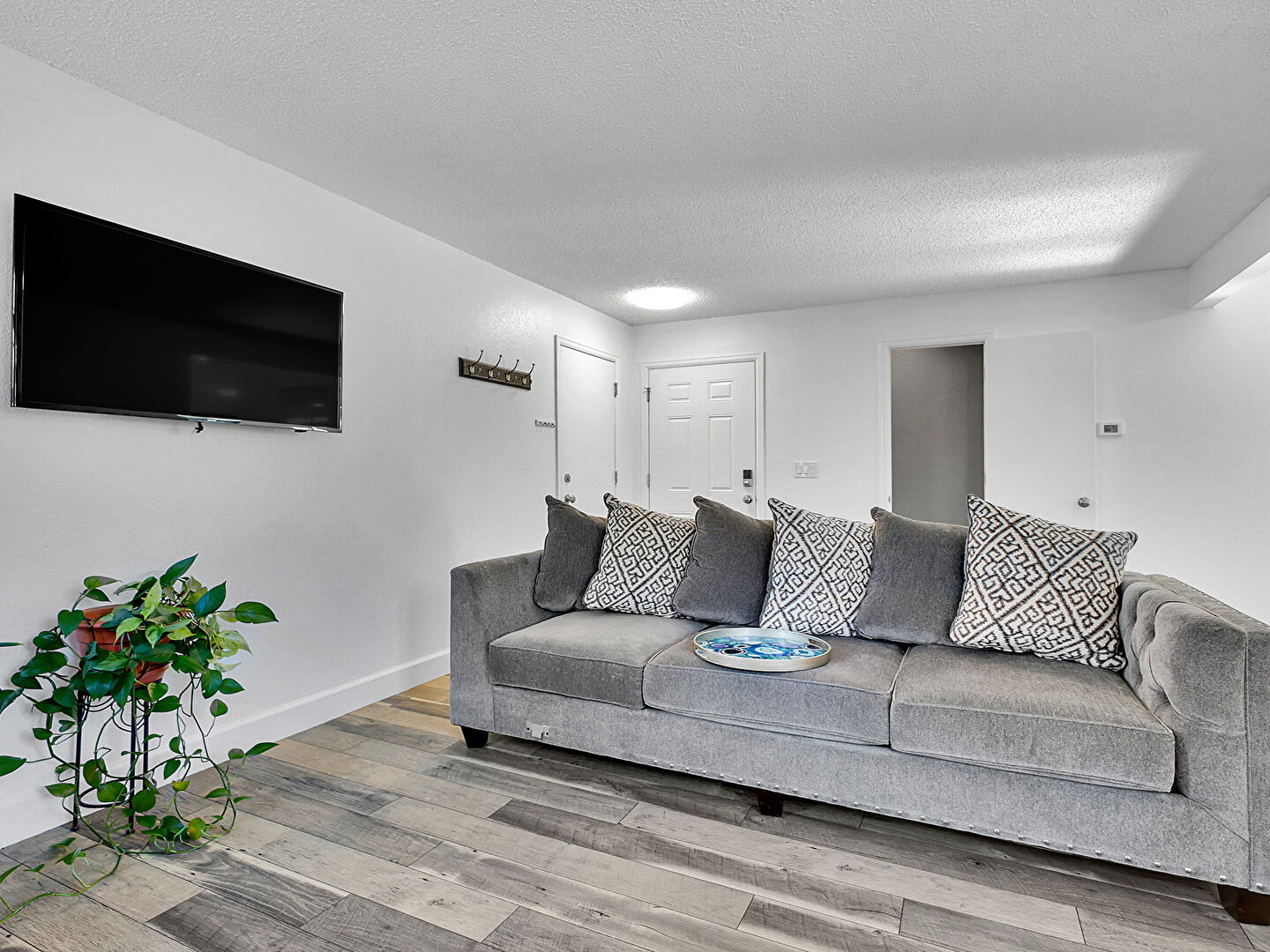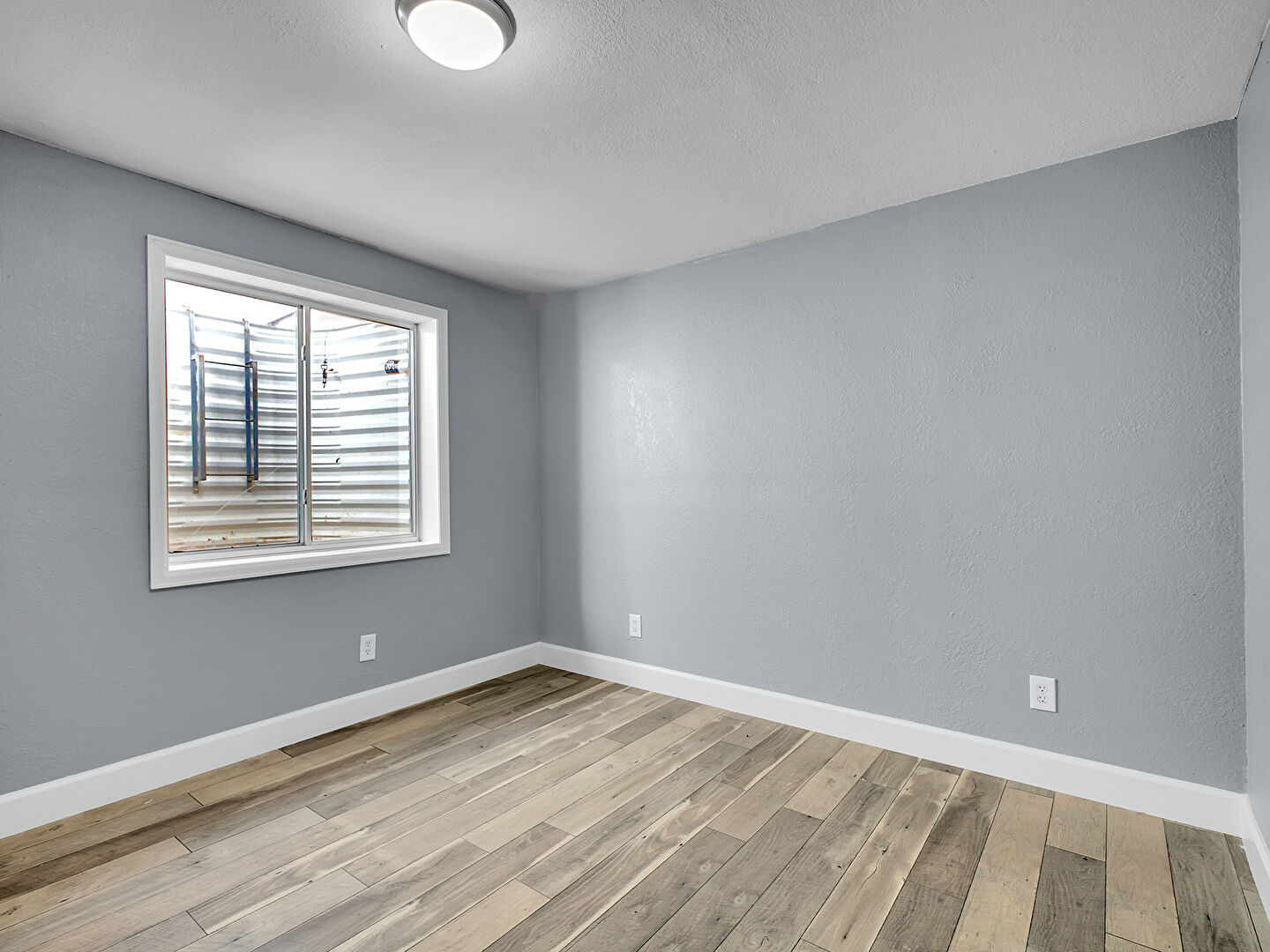 Baseboards Wall, Drywall, Natural Light, Textured Ceiling, Vent, Wood Finish Floor