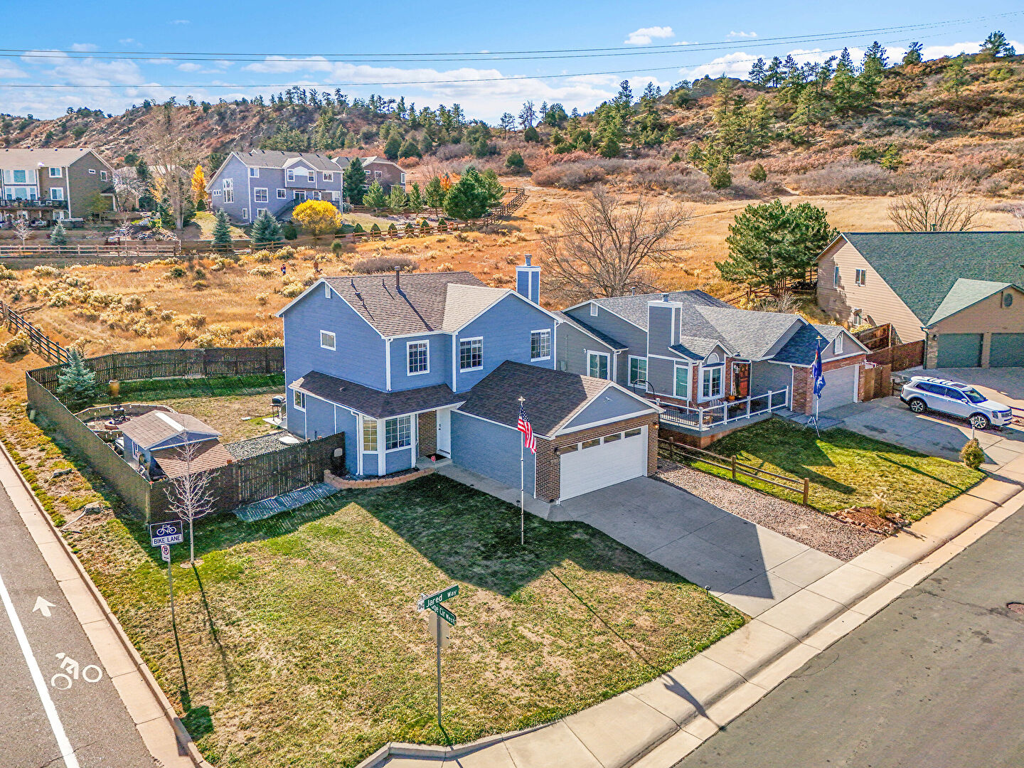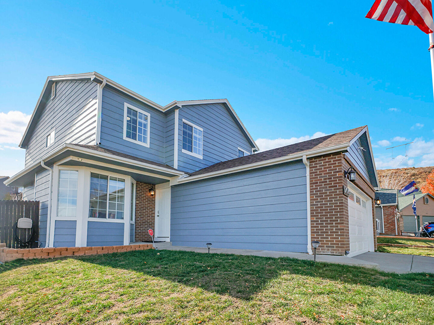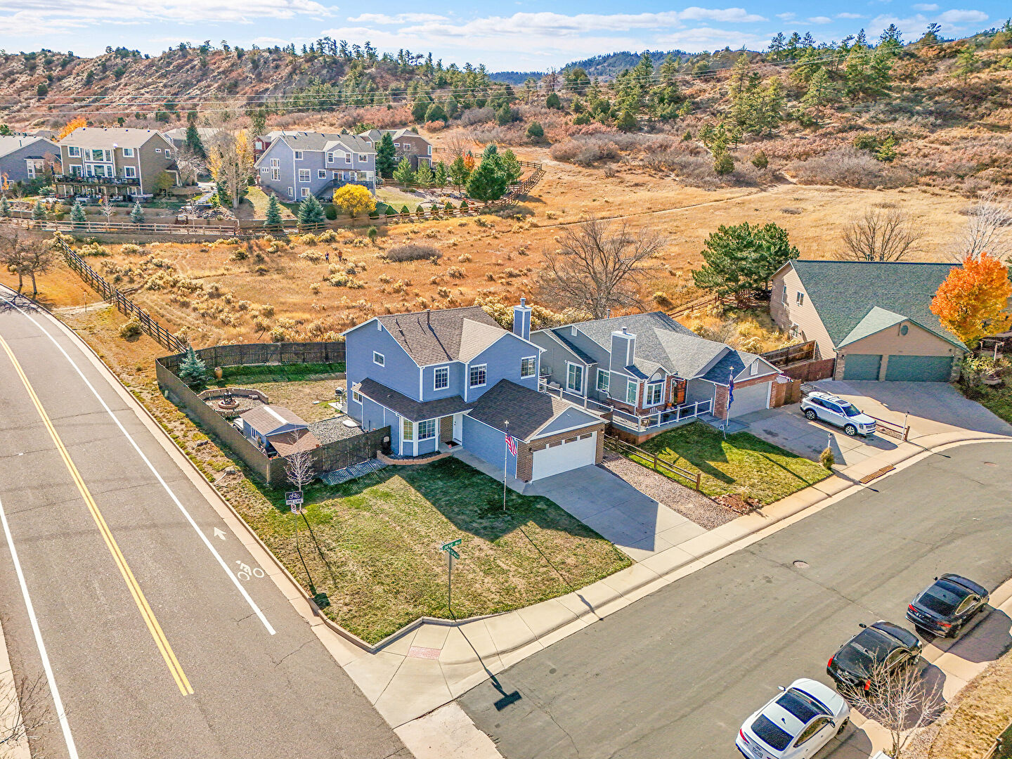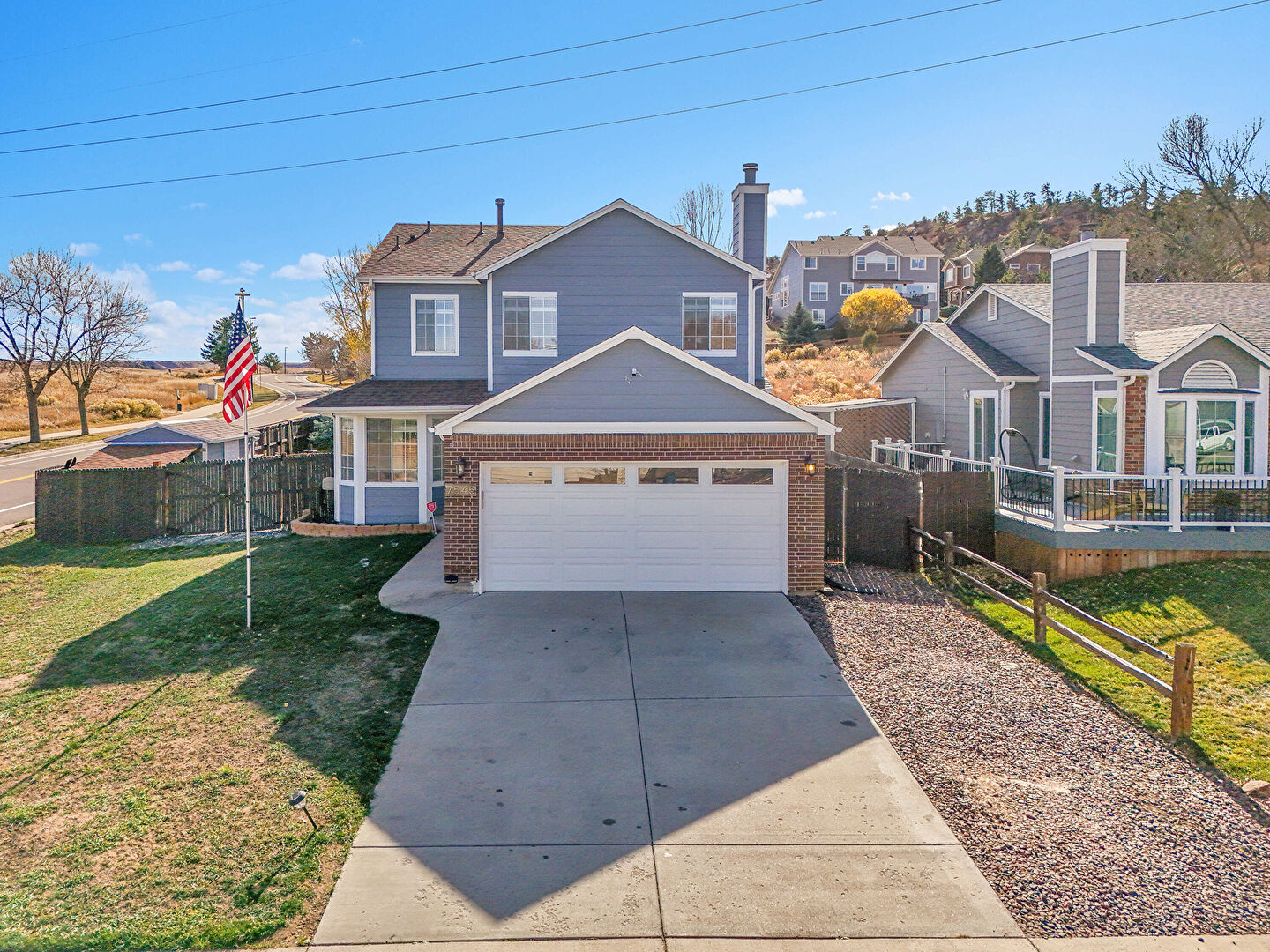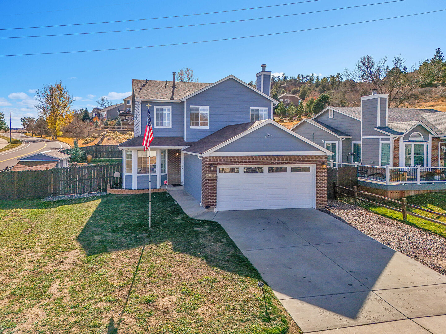 Chimney, Concrete Foundation, Downspout, Fence, Gate, Grill, Gutters, Horizontal Siding, Lawn, Mountain View, Patio, Residential View, Satellite Dish, Fire Pit, Grill, Lawn