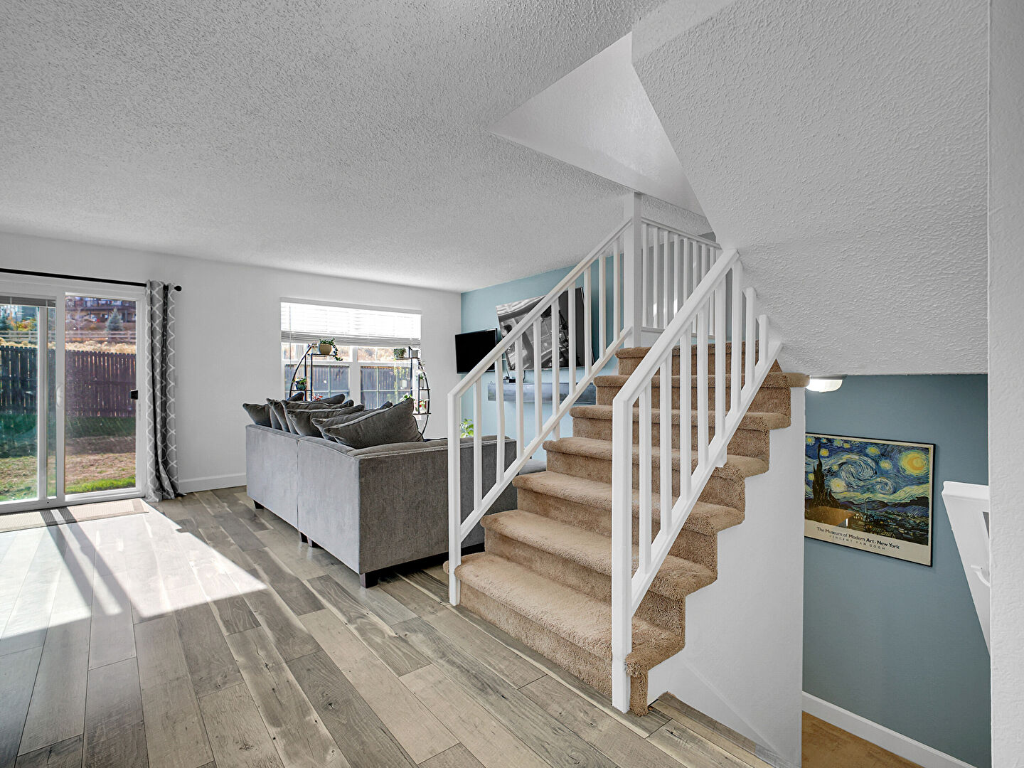 Baseboards Wall, Carpet, Drywall, Natural Light, Textured Ceiling, Vent, Wood Finish Floor, Baseboards Wall, Drywall, Vent, Wood Finish Floor