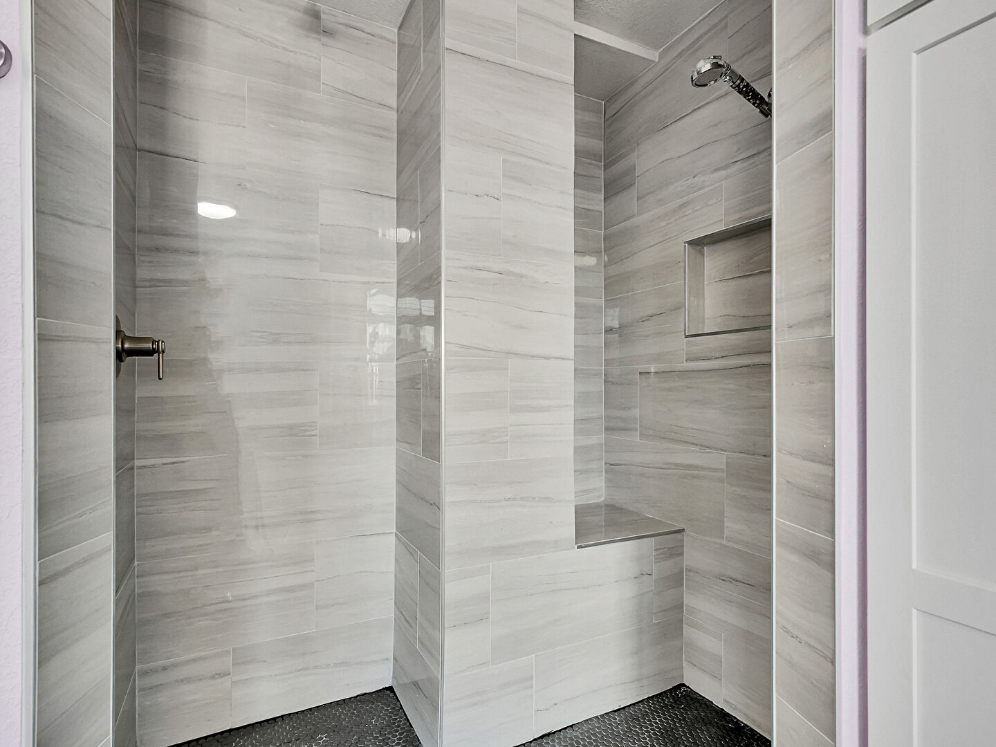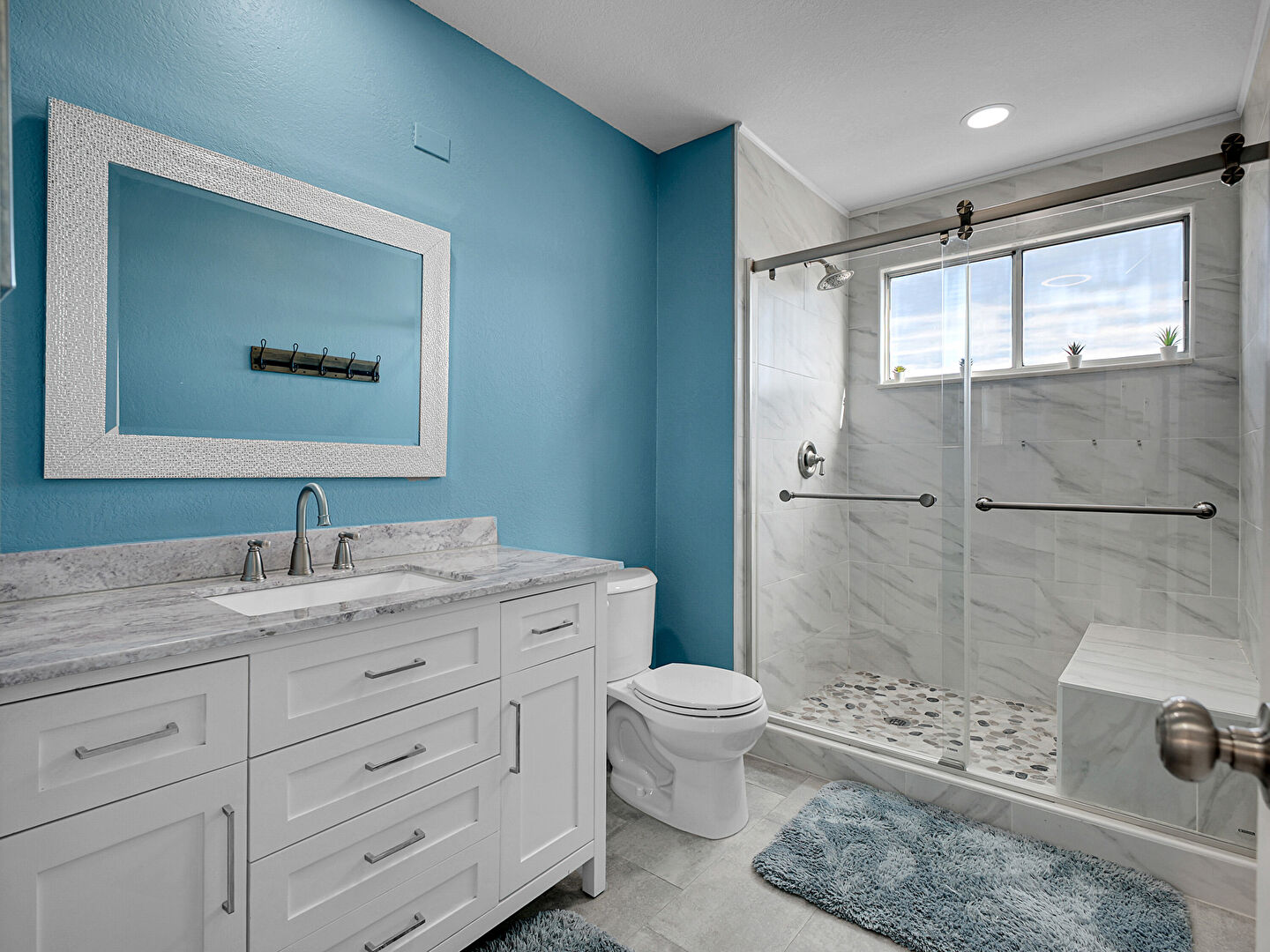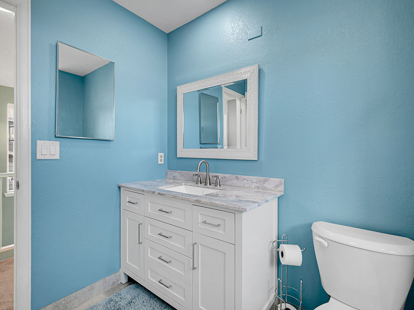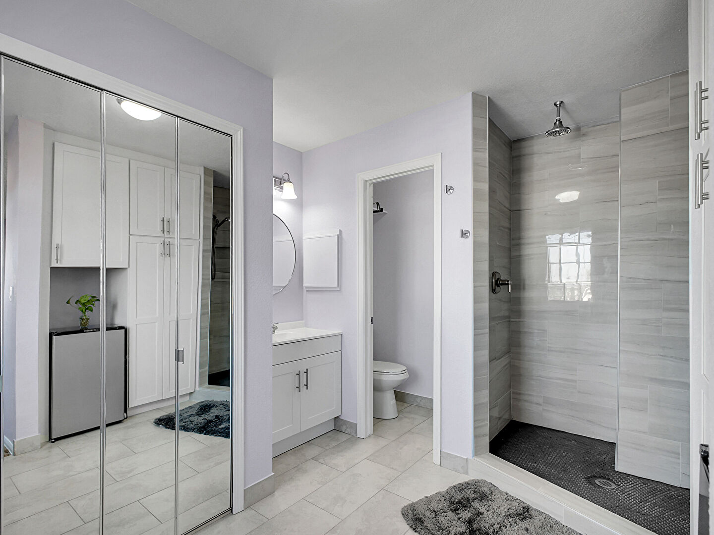 Baseboards Wall, Closet, Drywall, Full Bathroom, Half Bathroom, Natural Light, Recessed Lighting, Textured Wall, Tile Floor, Vanity, Vent, Water Closet, Wood Finish Floor, Baseboards Wall, Full Bathroom, Textured Wall, Tile Floor, Vanity, Vent, Water Closet
