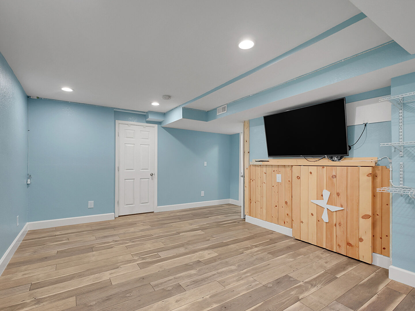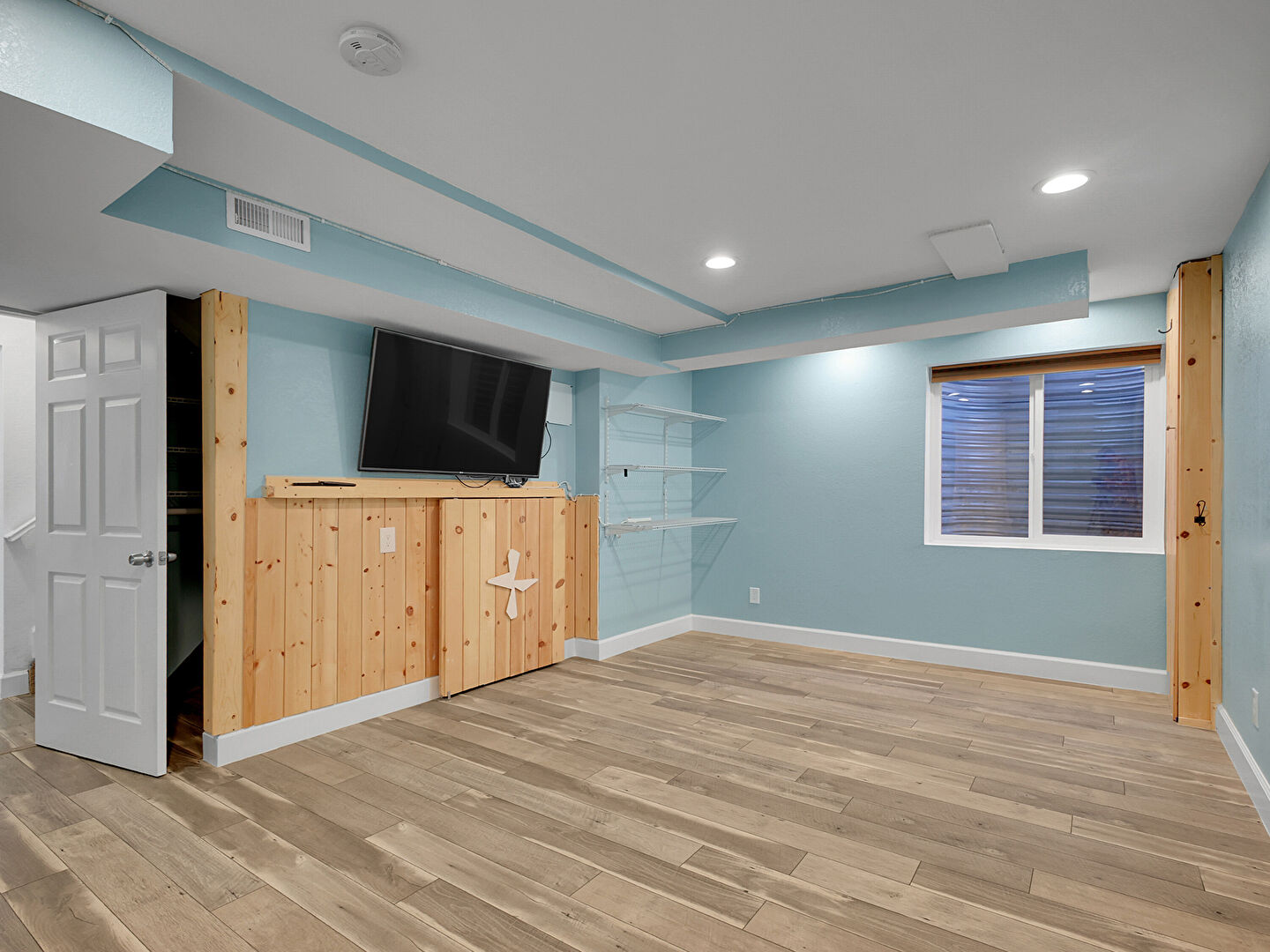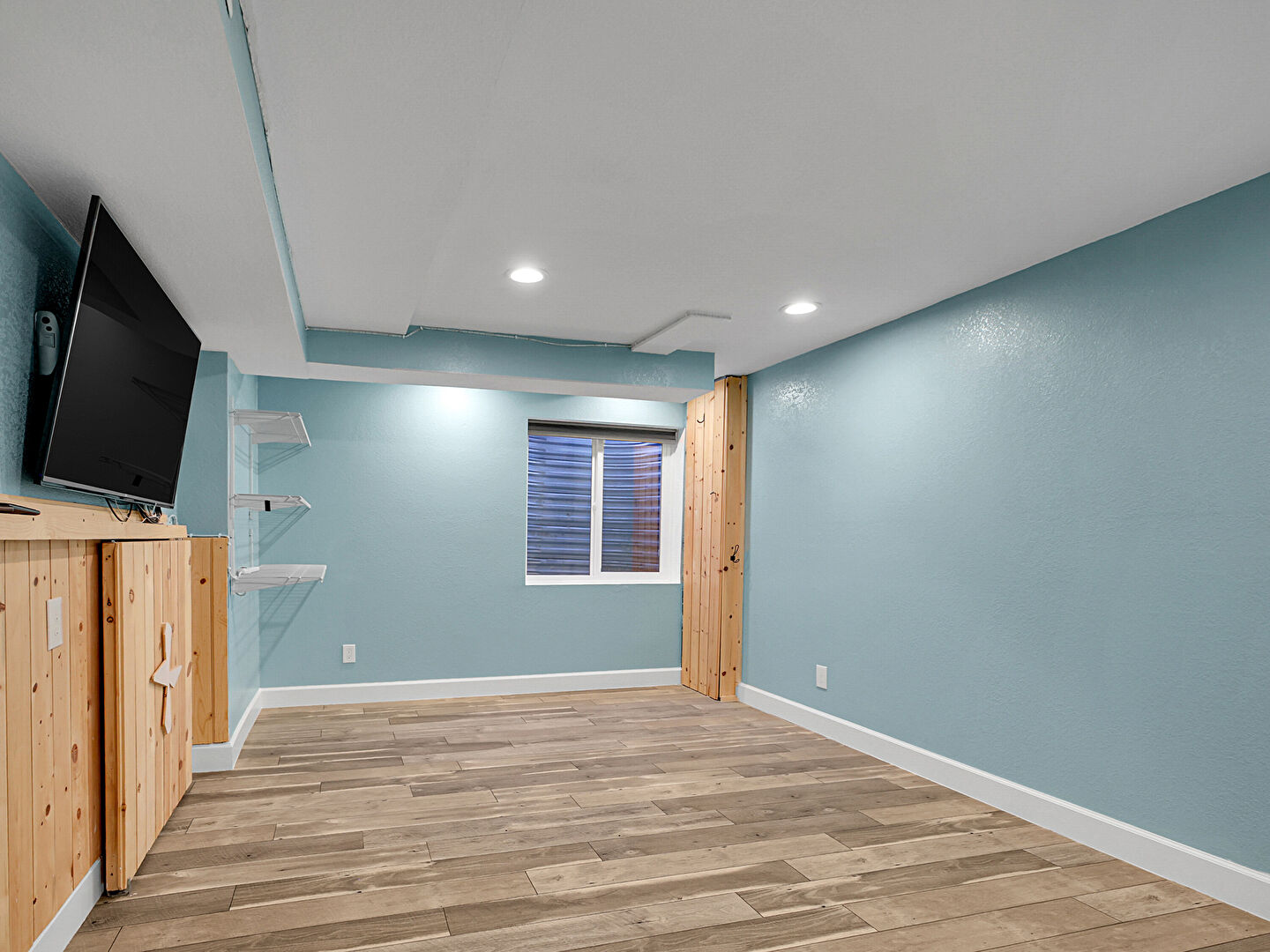 Baseboards Wall, Basement, Drywall, Recessed Lighting, Smoke Carbon Monoxide Detector, Wood Finish Floor, Vent