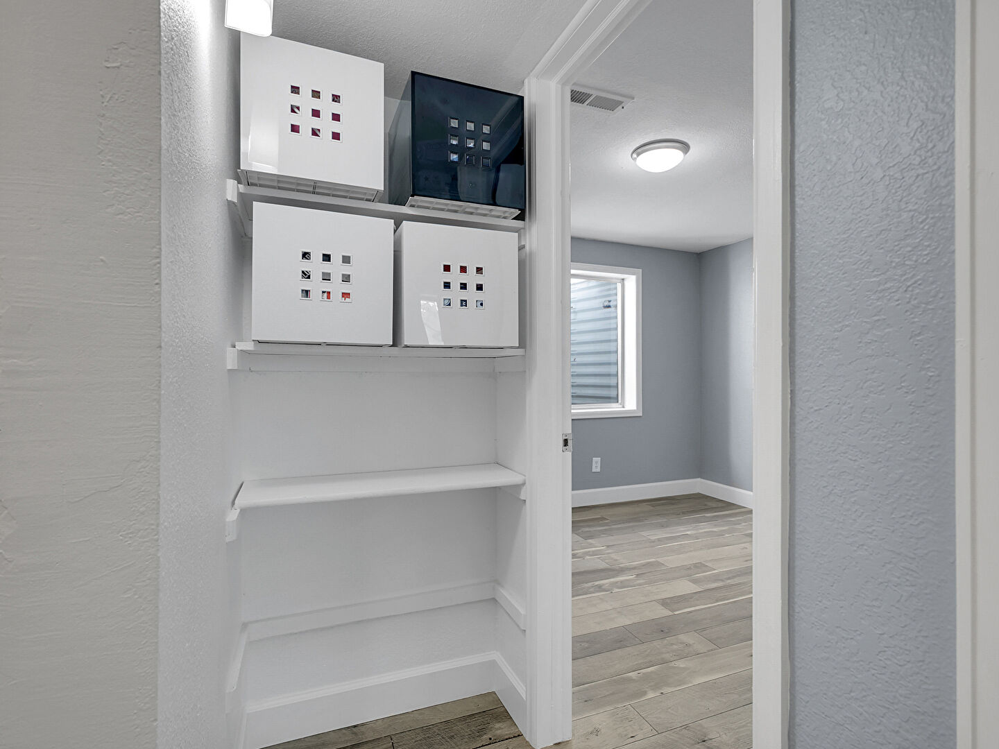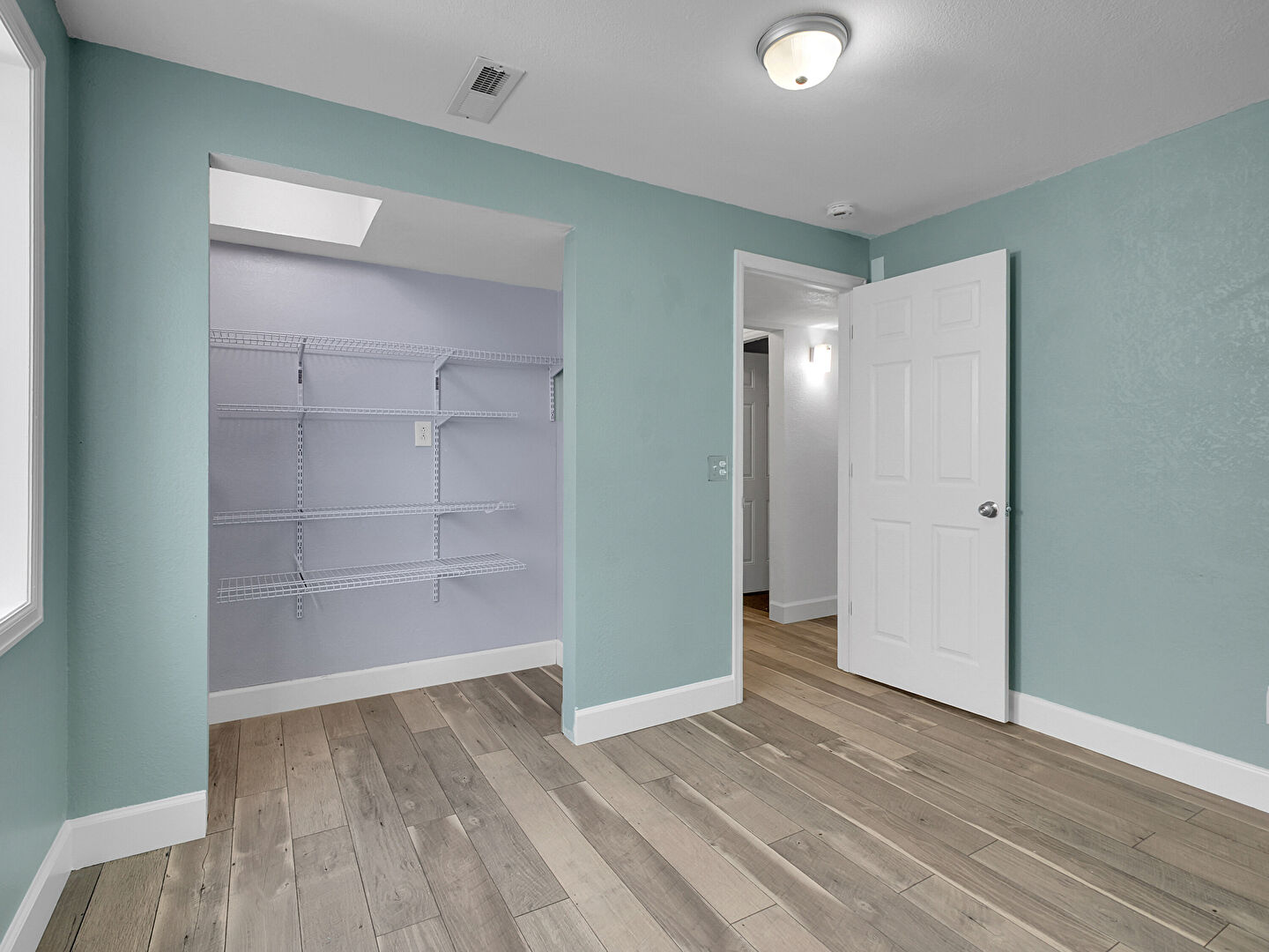 Baseboards Wall, Carpet, Closet, Drywall, Natural Light, Textured Ceiling, Vent, Wood Finish Floor, Baseboards Wall, Carpet, Skylight, Textured Ceiling, Vent, Wood Finish Floor