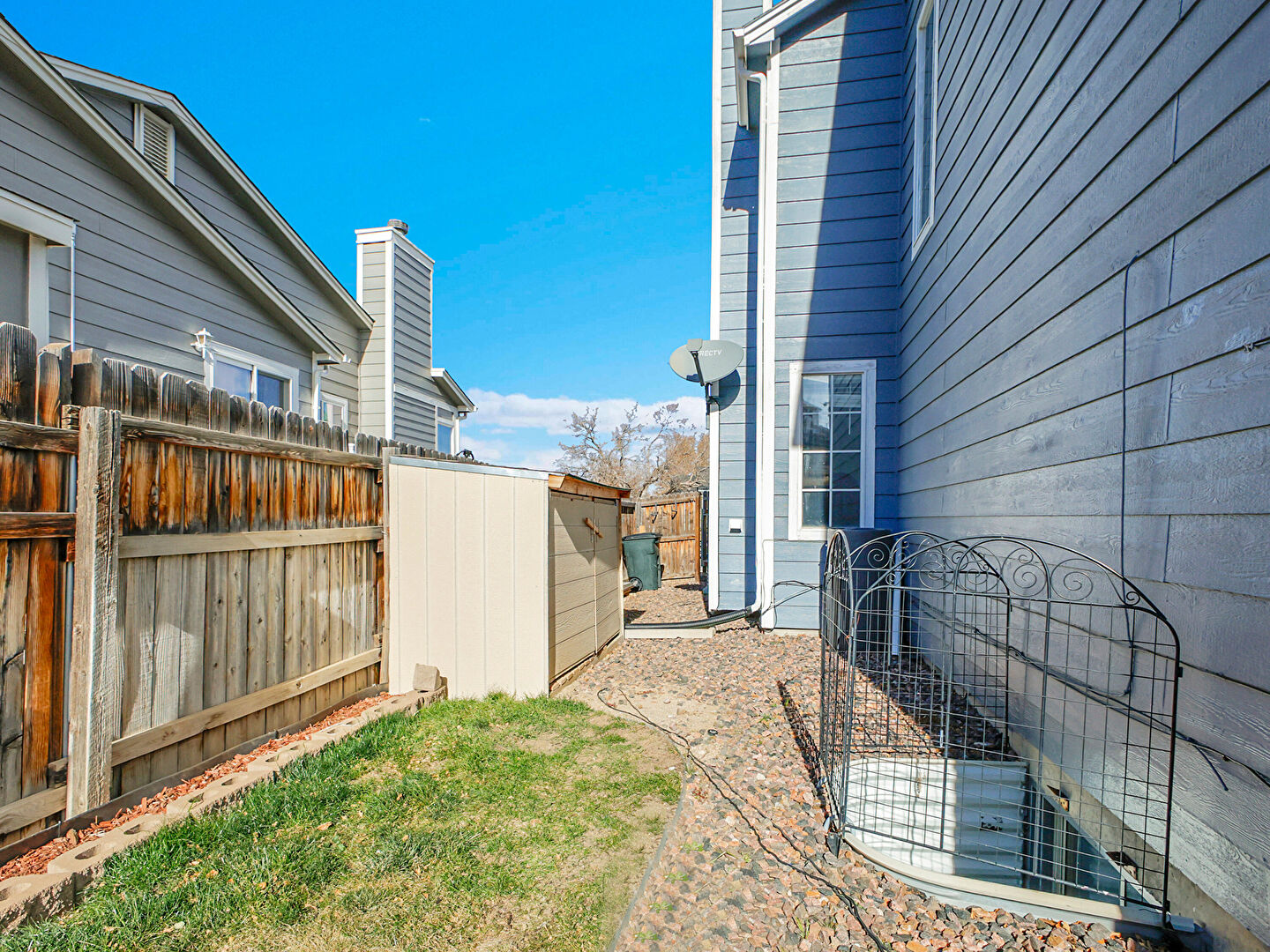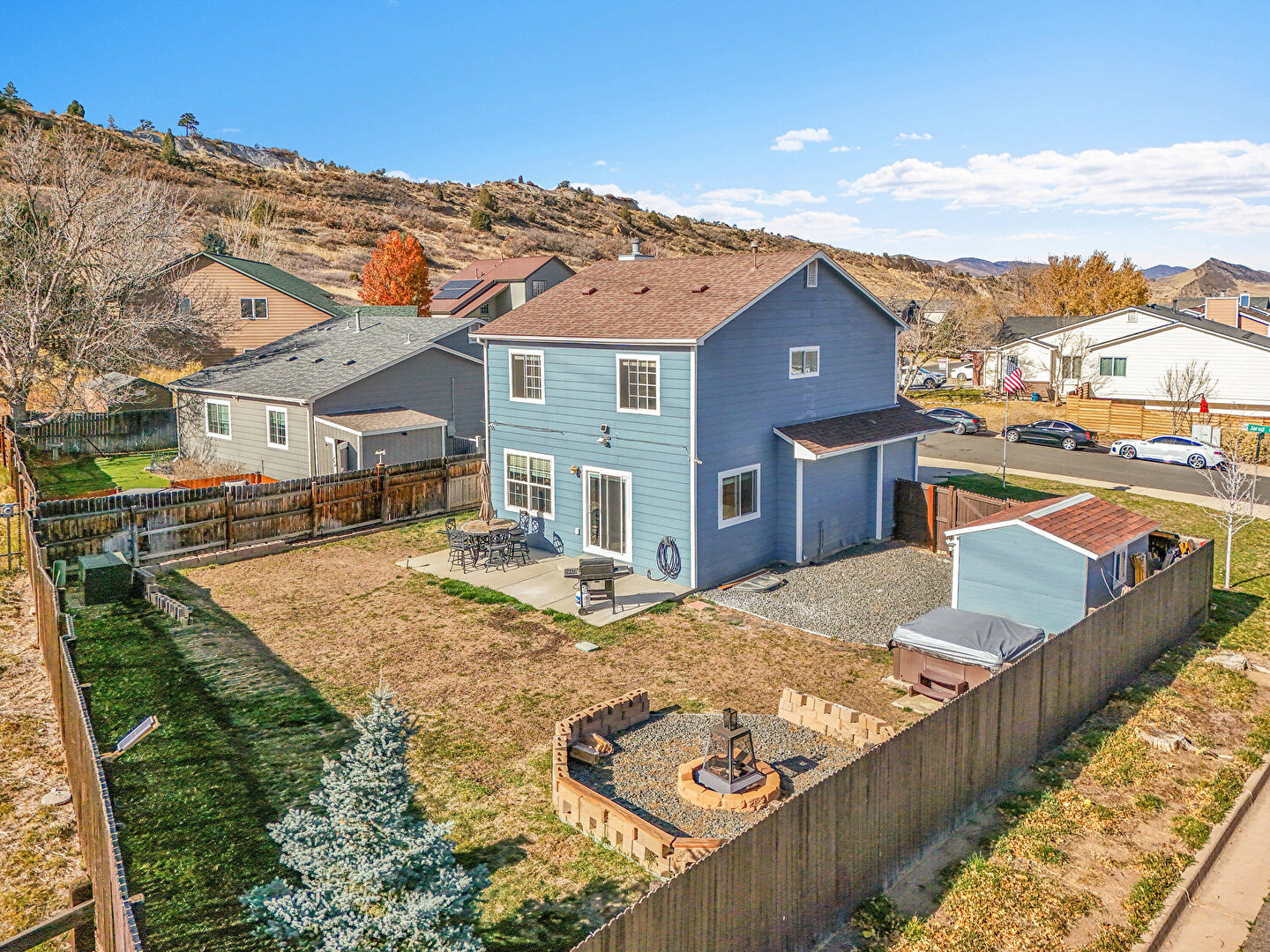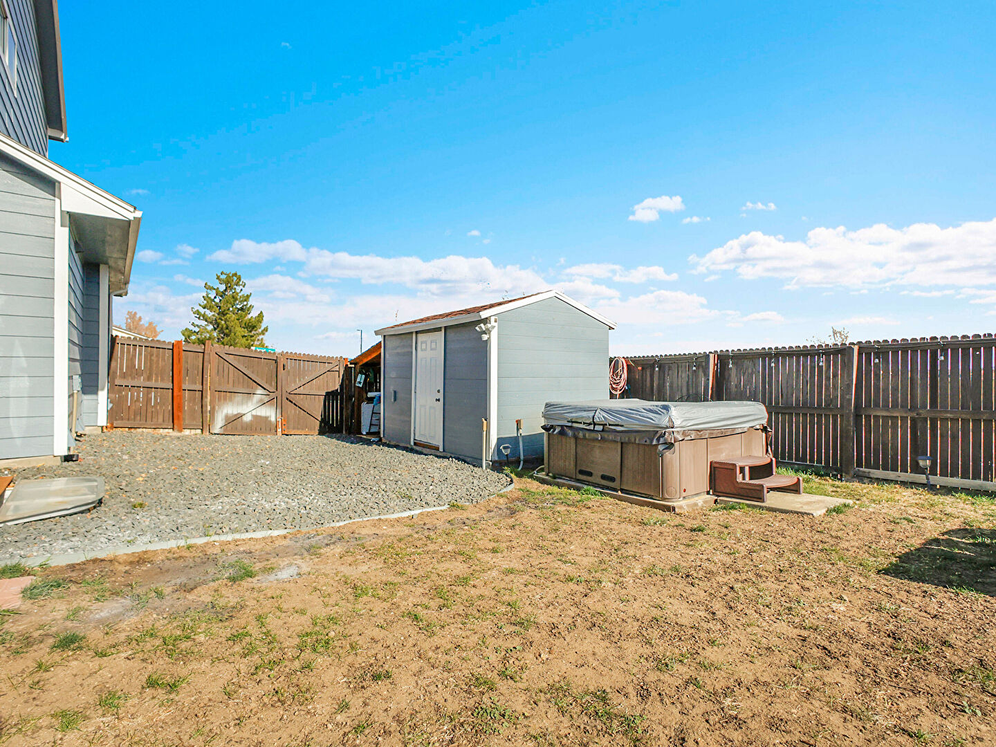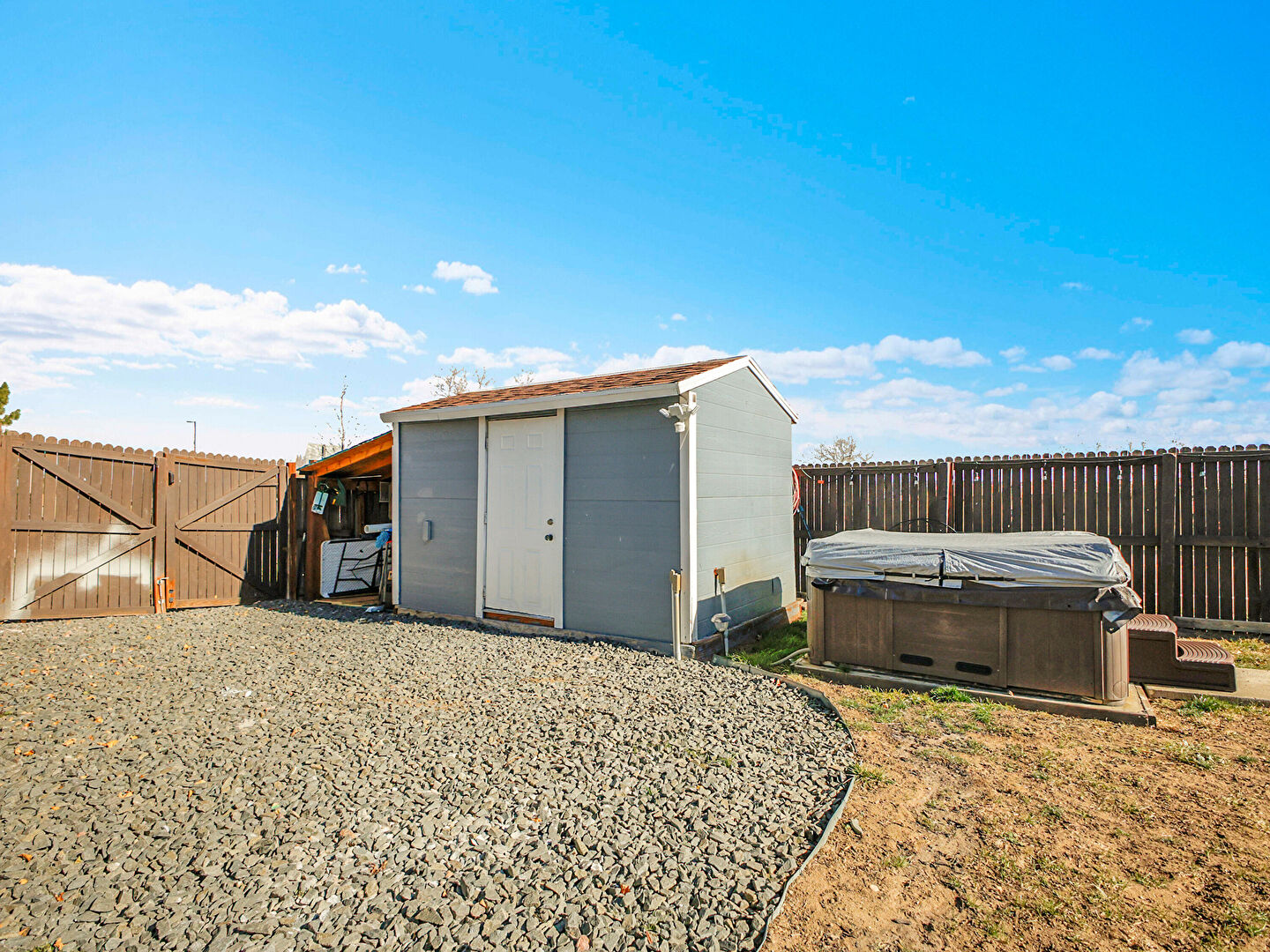 Fence, Gate, Grill, Lawn, Outdoor Structure, Patio, Satellite Dish, Shed, Water Meter, Fire Pit, Hot Tub, Patio, Residential View