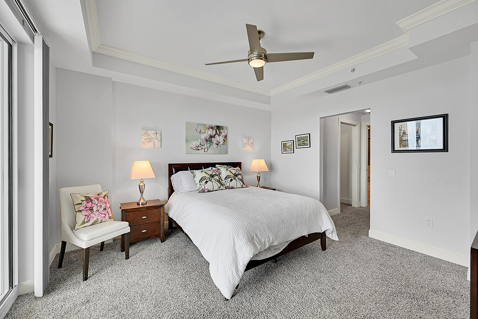 Access To Exterior, Baseboards Wall, Carpet, Ceiling Fan, Crown Molding, Drywall, Natural Light, Tray Ceiling, Vent, Carpet, Drywall, Natural Light