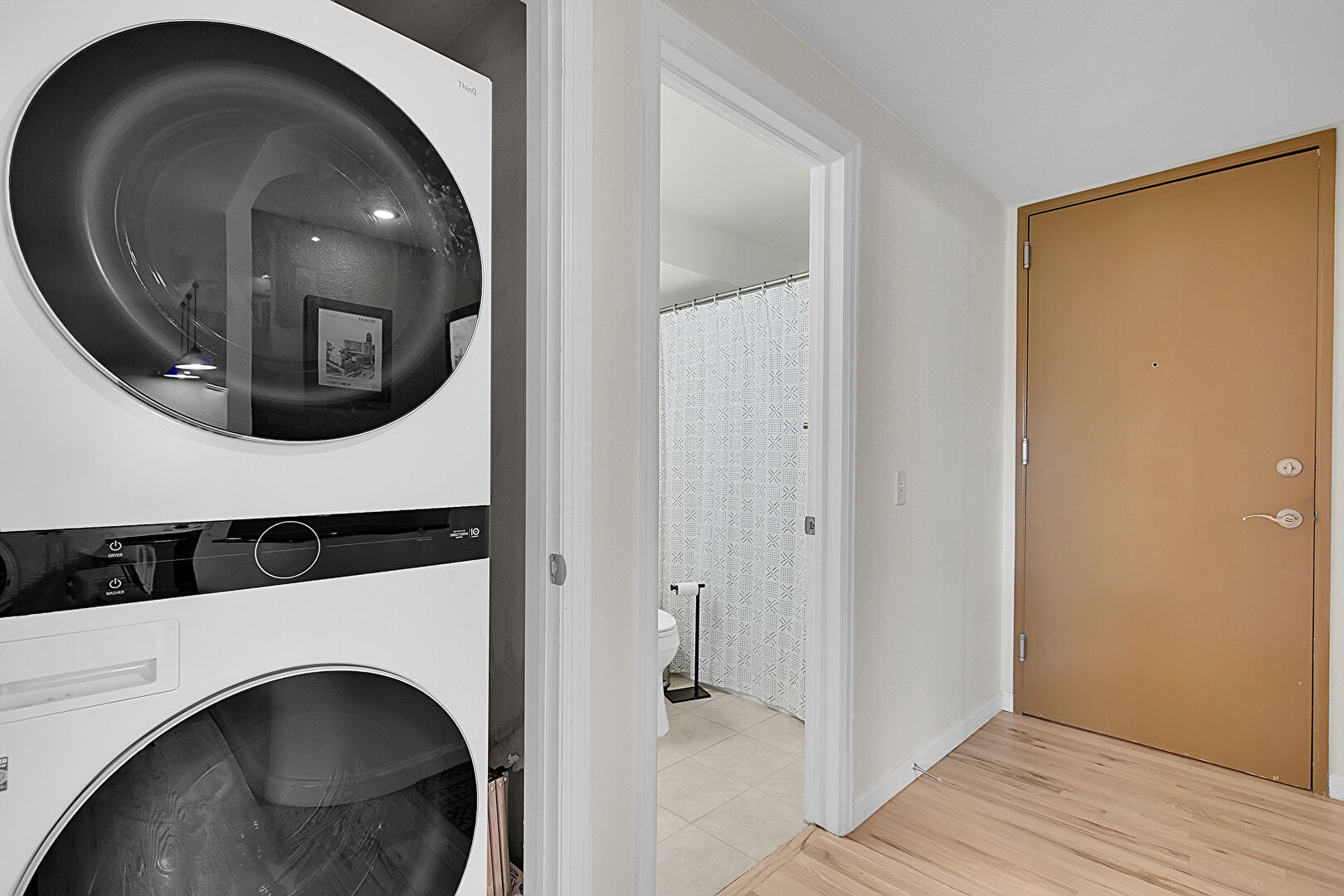 Drywall, Laundry, Tile Floor, Wood Finish Floor, Baseboards Wall