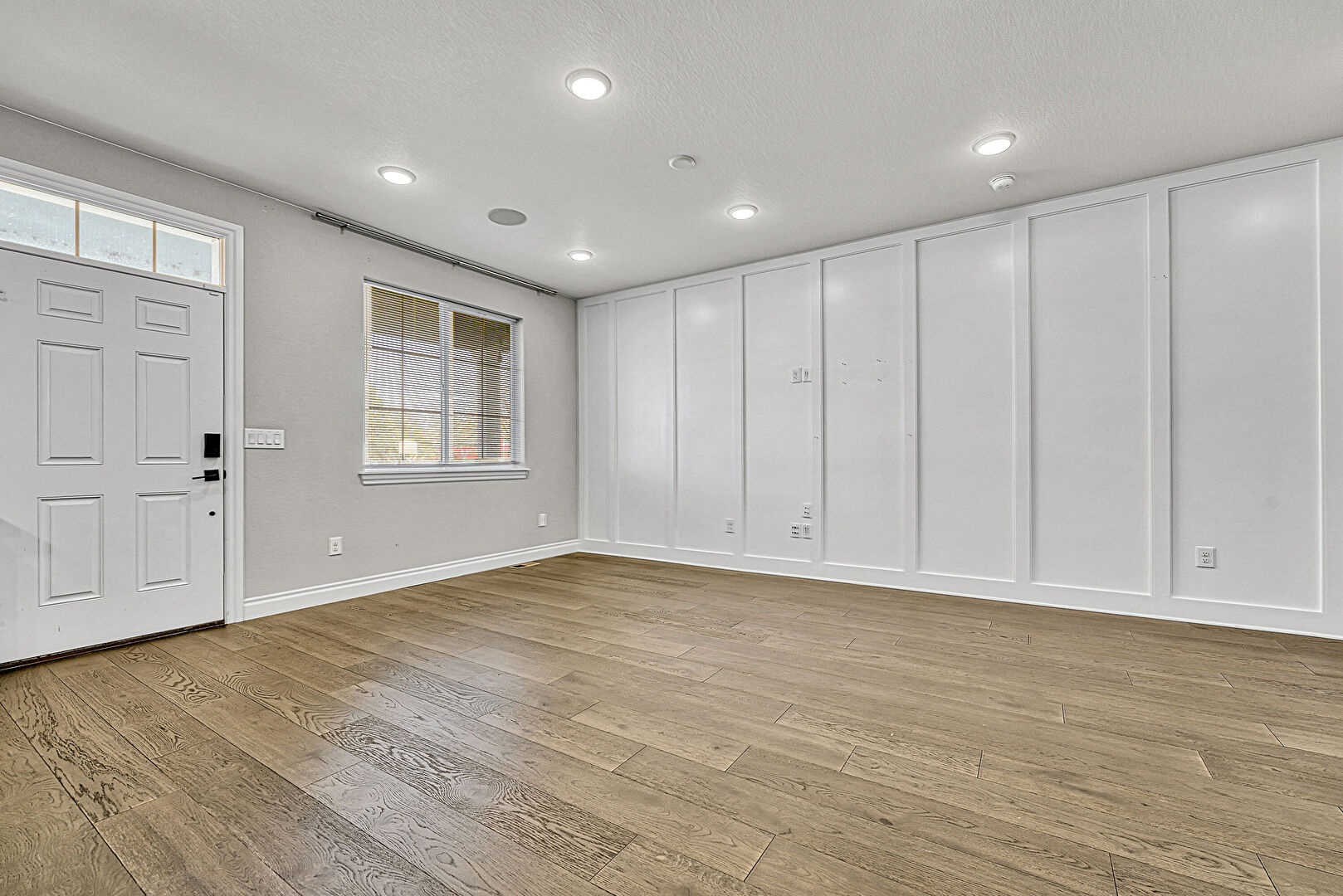 Baseboards Wall, Drywall, Natural Light, Recessed Lighting, Wood Finish Floor, Textured Ceiling