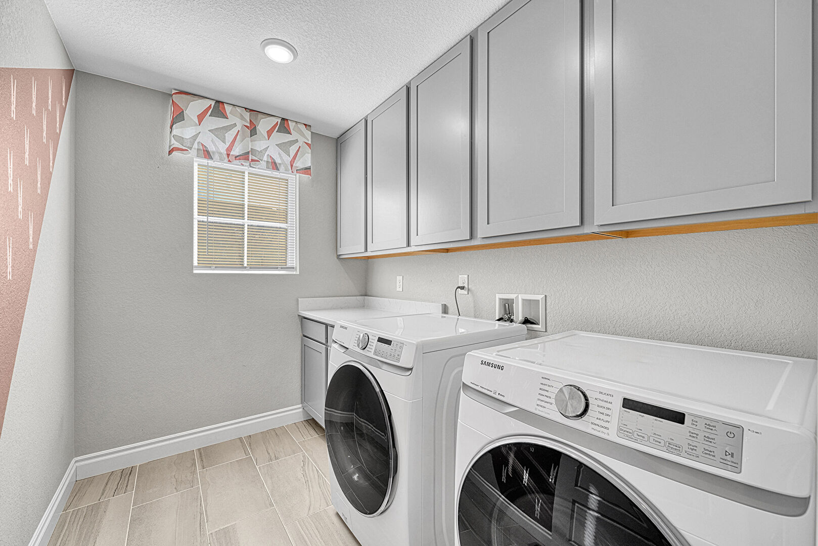 Laundry, Natural Light, Textured Ceiling, Textured Wall, Washer Hookup, Baseboards Wall
