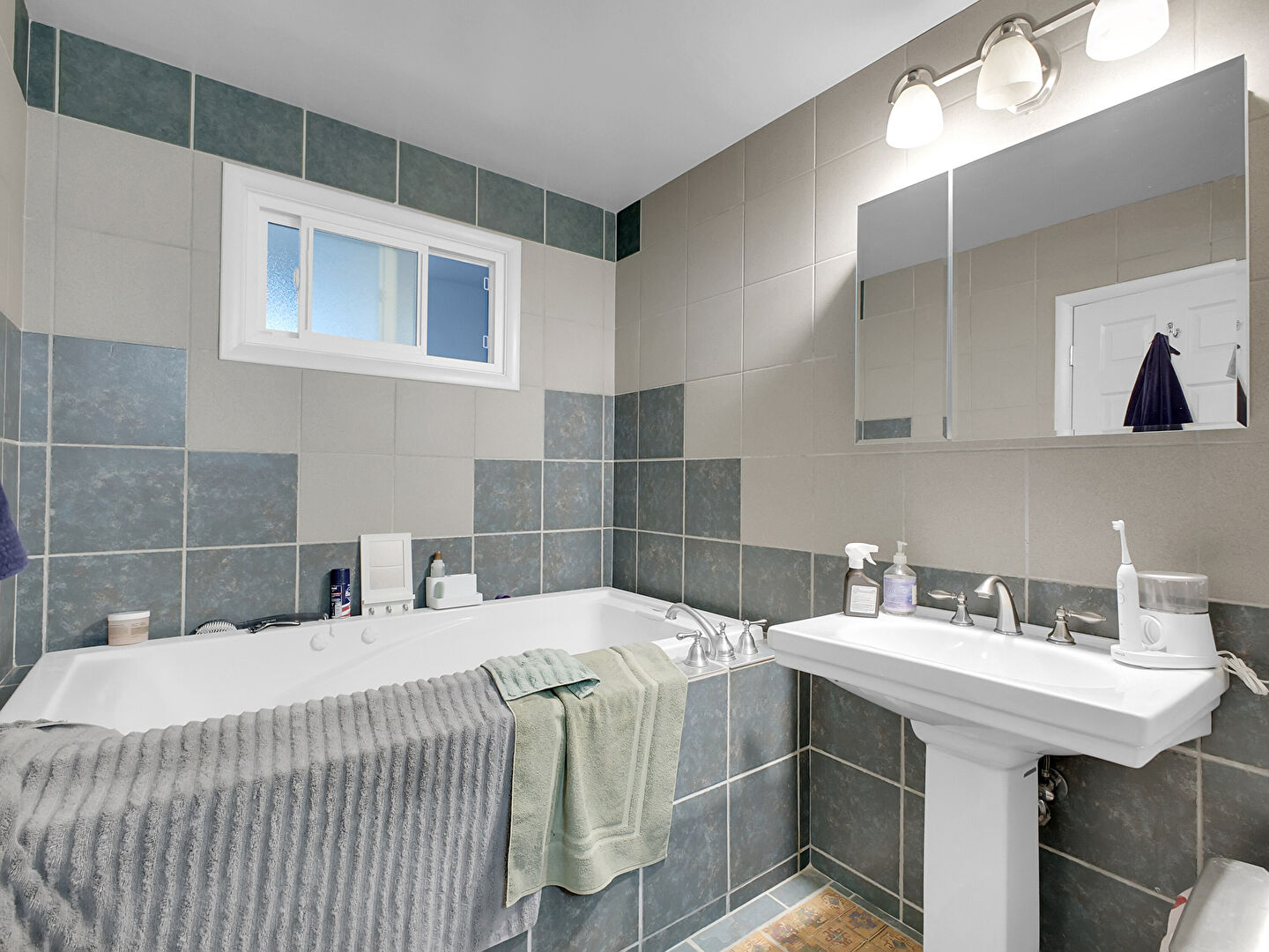 Baseboards Wall, Closet, Drywall, Full Bathroom, Half Bathroom, Natural Light, Tile Floor, Tile Wall, Vanity, Drywall, Full Bathroom, Tile Wall, Vent