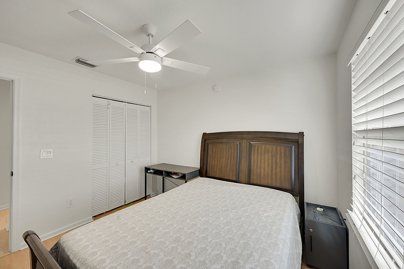 Ceiling Fan, Closet, Drywall, Natural Light, Vent, Wood Finish Floor, Baseboards Wall