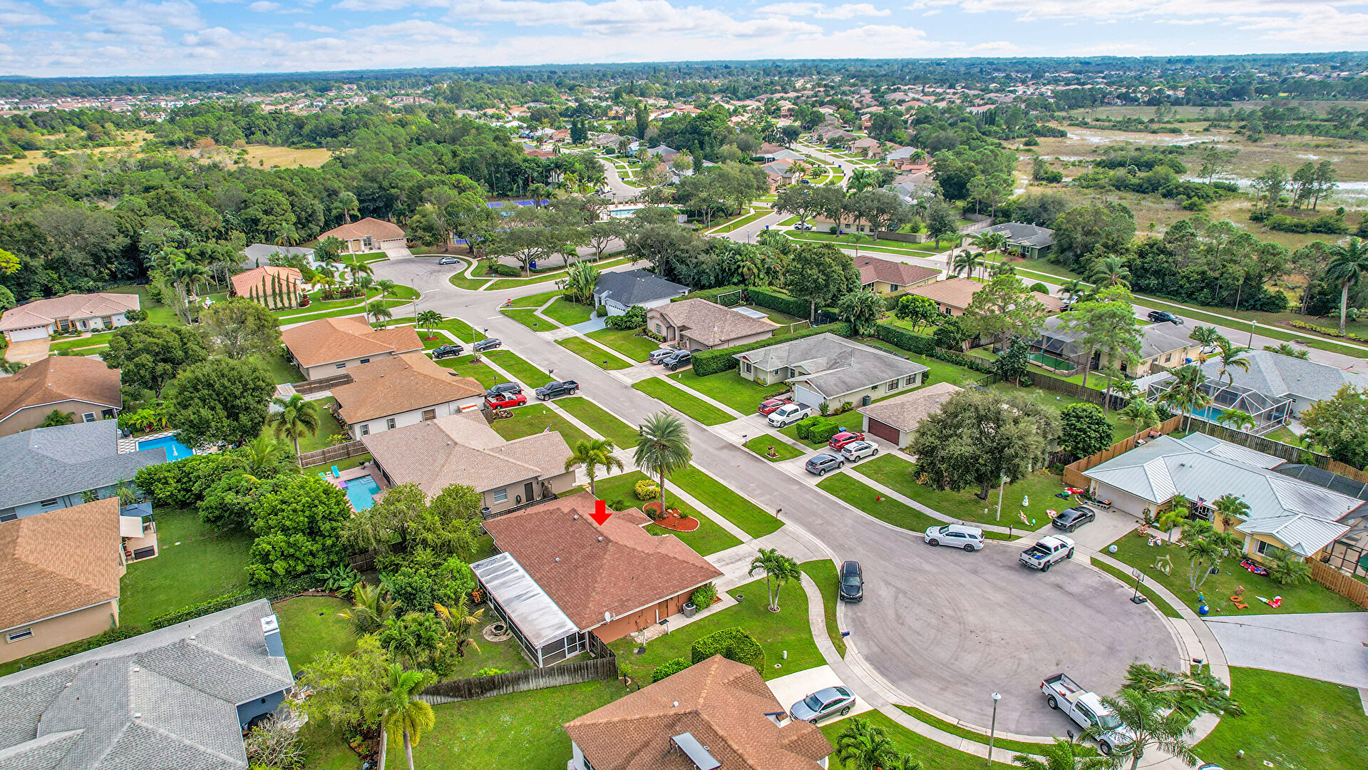 Driveway, Lawn, Residential View, Shingle Roof, Stucco Siding, Fence, Forest View, Residential View