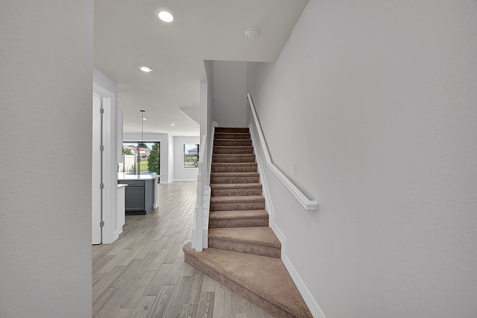 Baseboards Wall, Drywall, Natural Light, Recessed Lighting, Smoke Carbon Monoxide Detector, Stairs, Textured Wall, Wood Finish Floor, Recessed Lighting, Wood Finish Floor