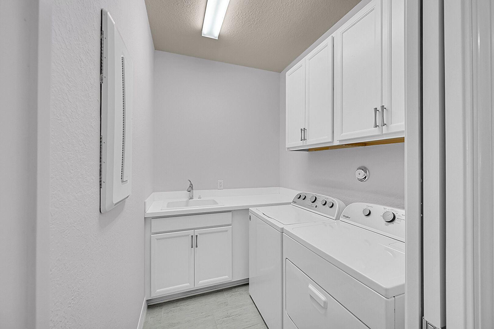 Baseboards Wall, Electric Panel, Textured Ceiling, Textured Wall, Laundry