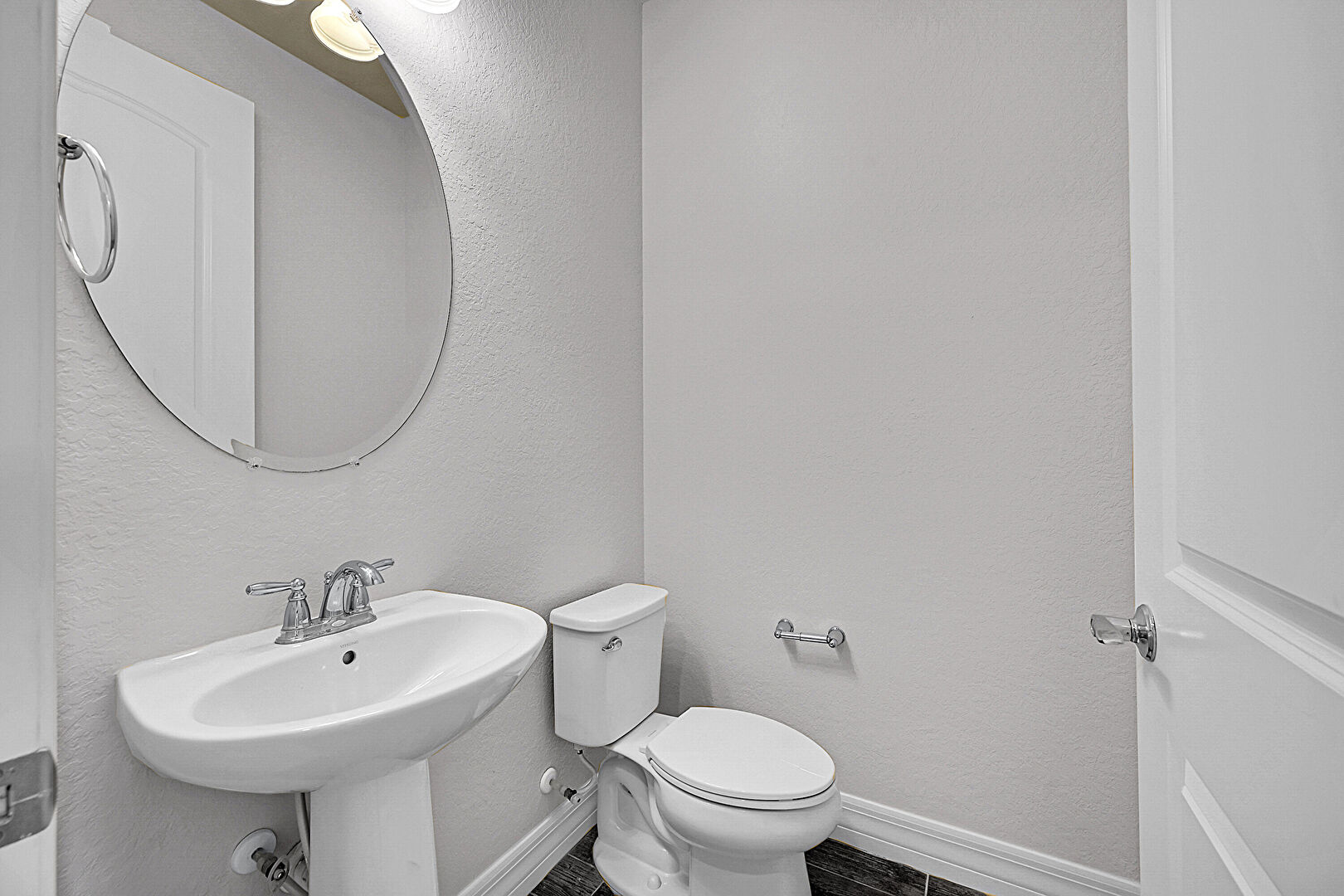 Baseboards Wall, Combined Bath Shower, Drywall, Full Bathroom, Half Bathroom, Textured Wall, Vanity, Wood Finish Floor, Baseboards Wall, Full Bathroom