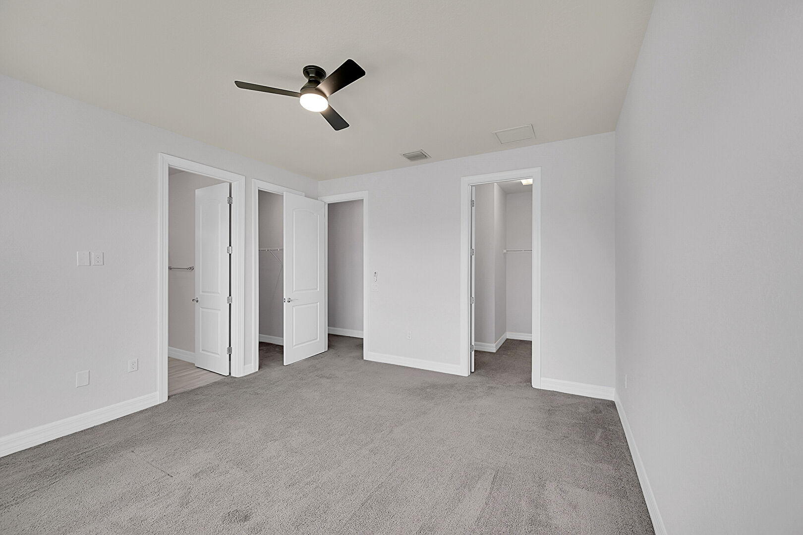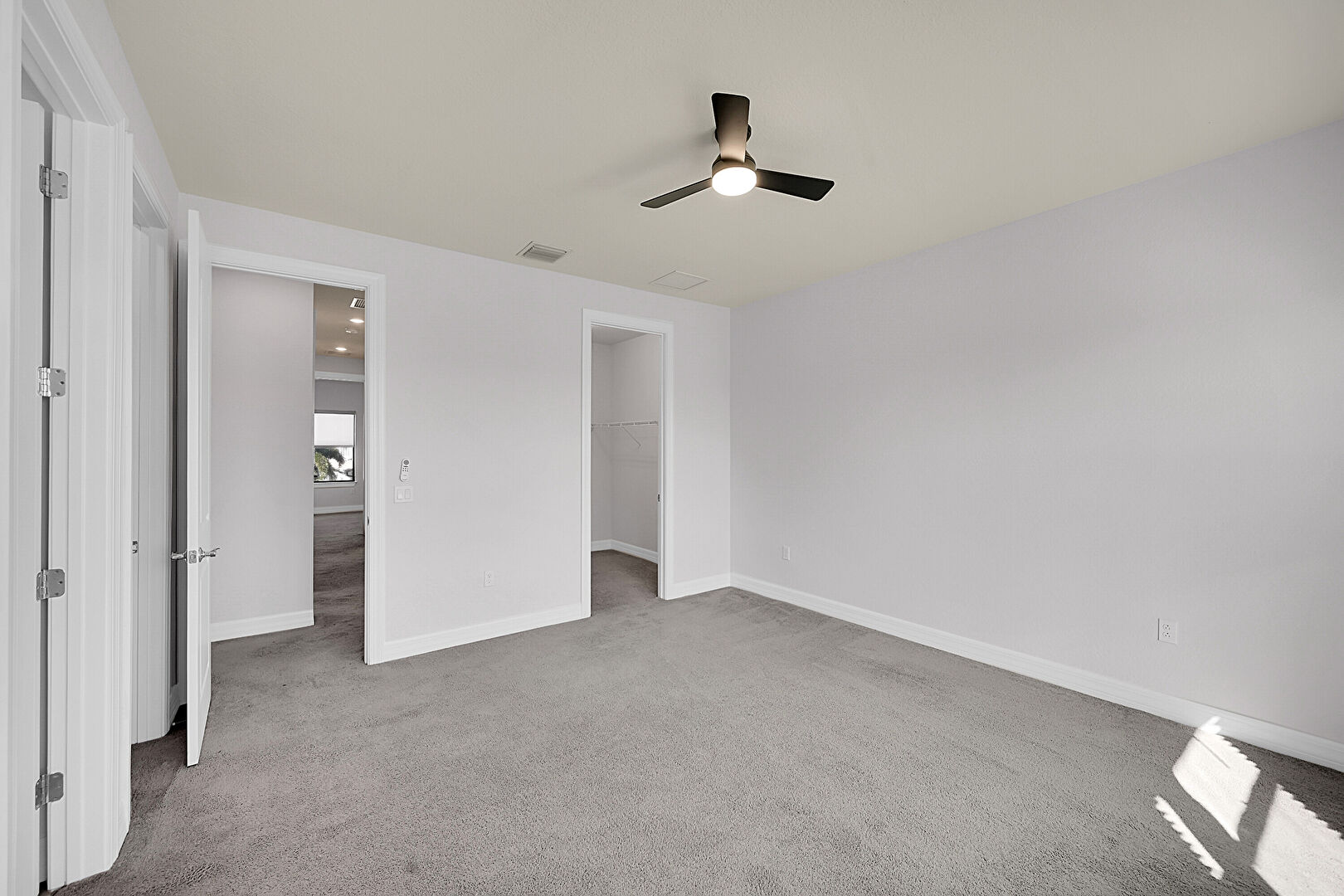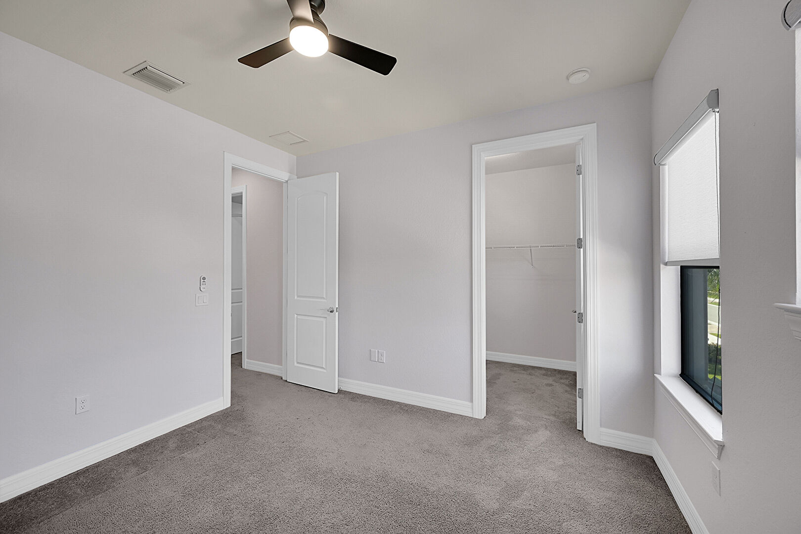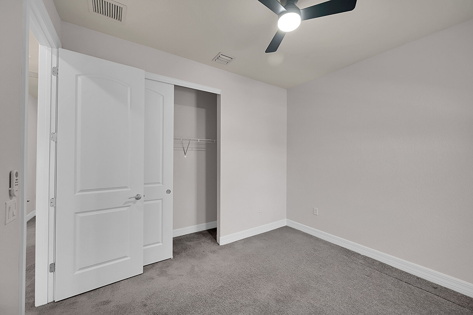 Baseboards Wall, Carpet, Ceiling Fan, Closet, Drywall, Vent, Ceiling Fan, Natural Light