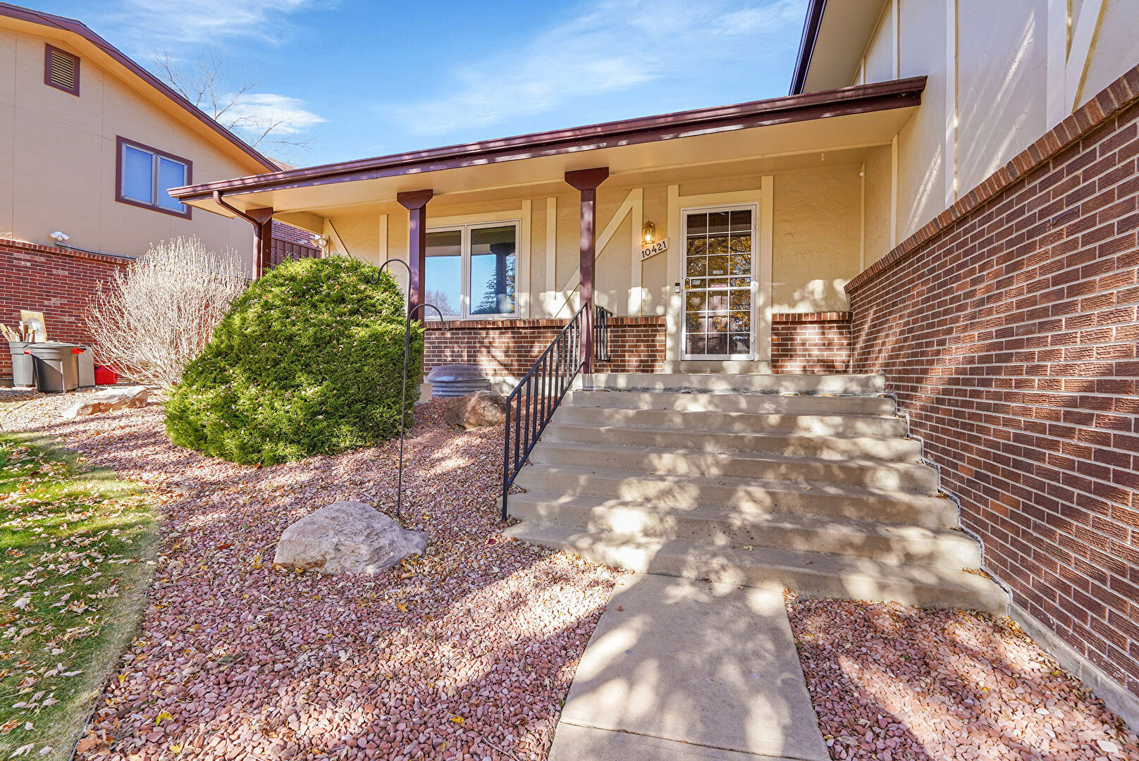 Brick Siding, Built In Garage, Concrete Foundation, Driveway, Lawn, Porch, Stucco Siding, Vertical Siding, Built In Garage, Concrete Foundation, Driveway, Vertical Siding