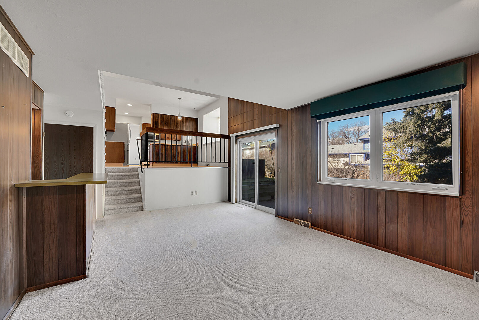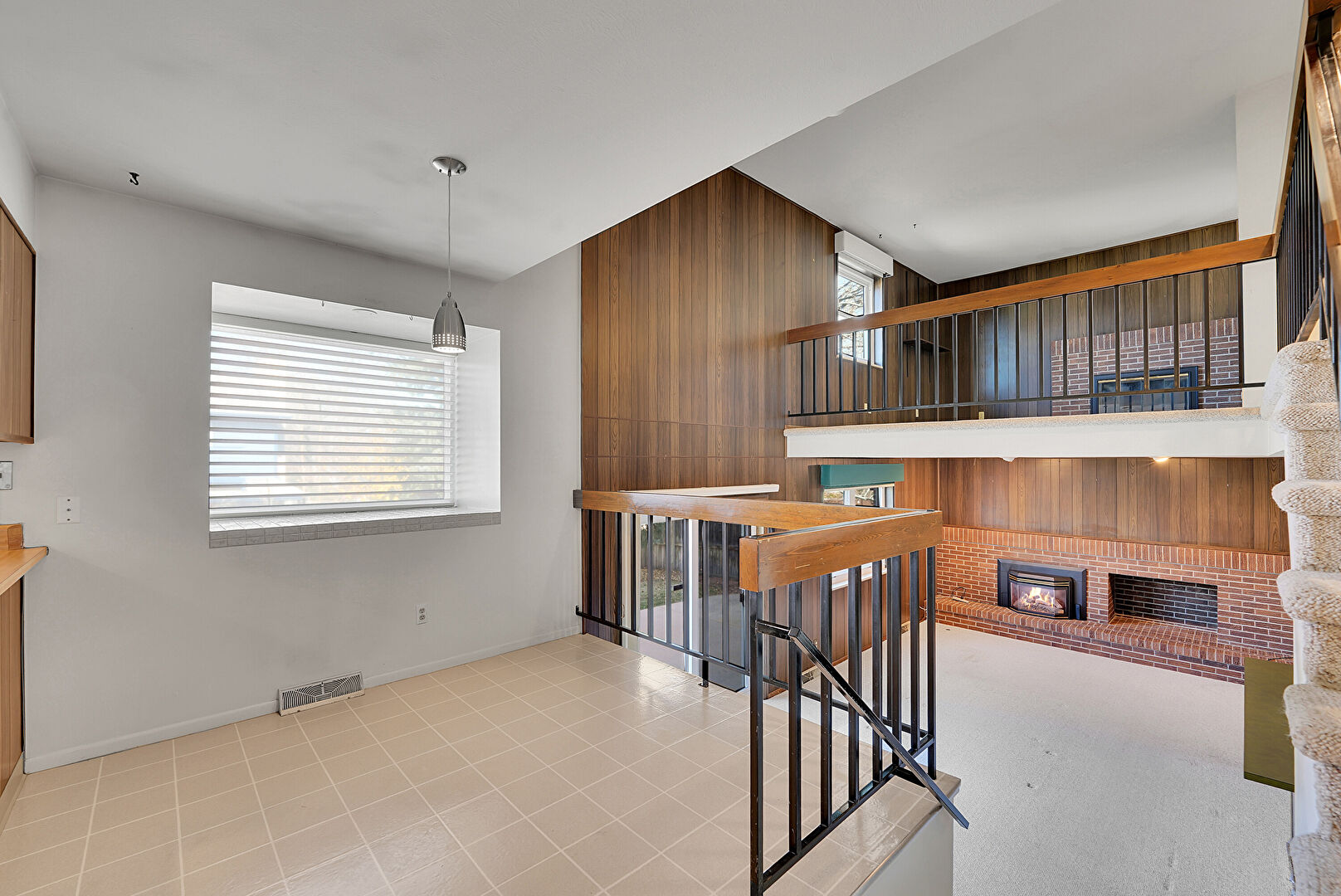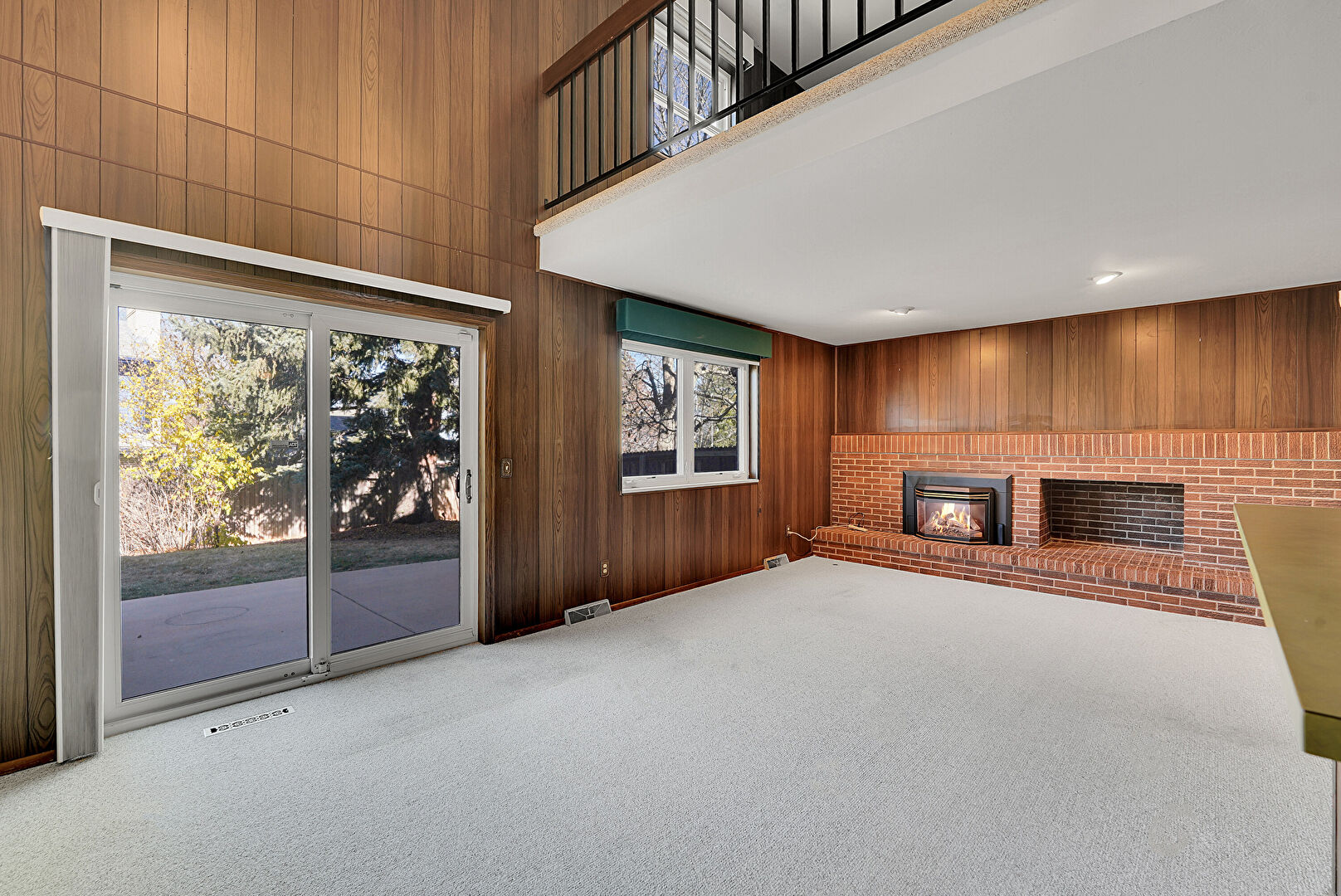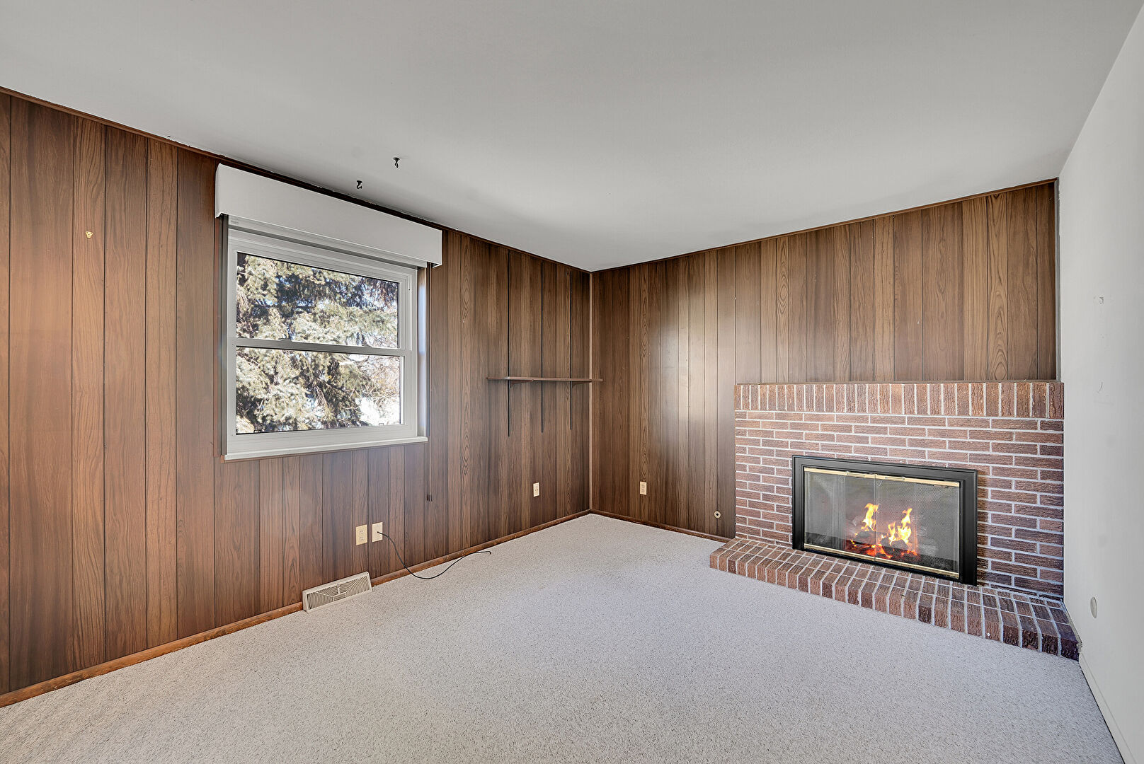 Baseboards Wall, Carpet, Fireplace, Vent, Wood Wall, Natural Light