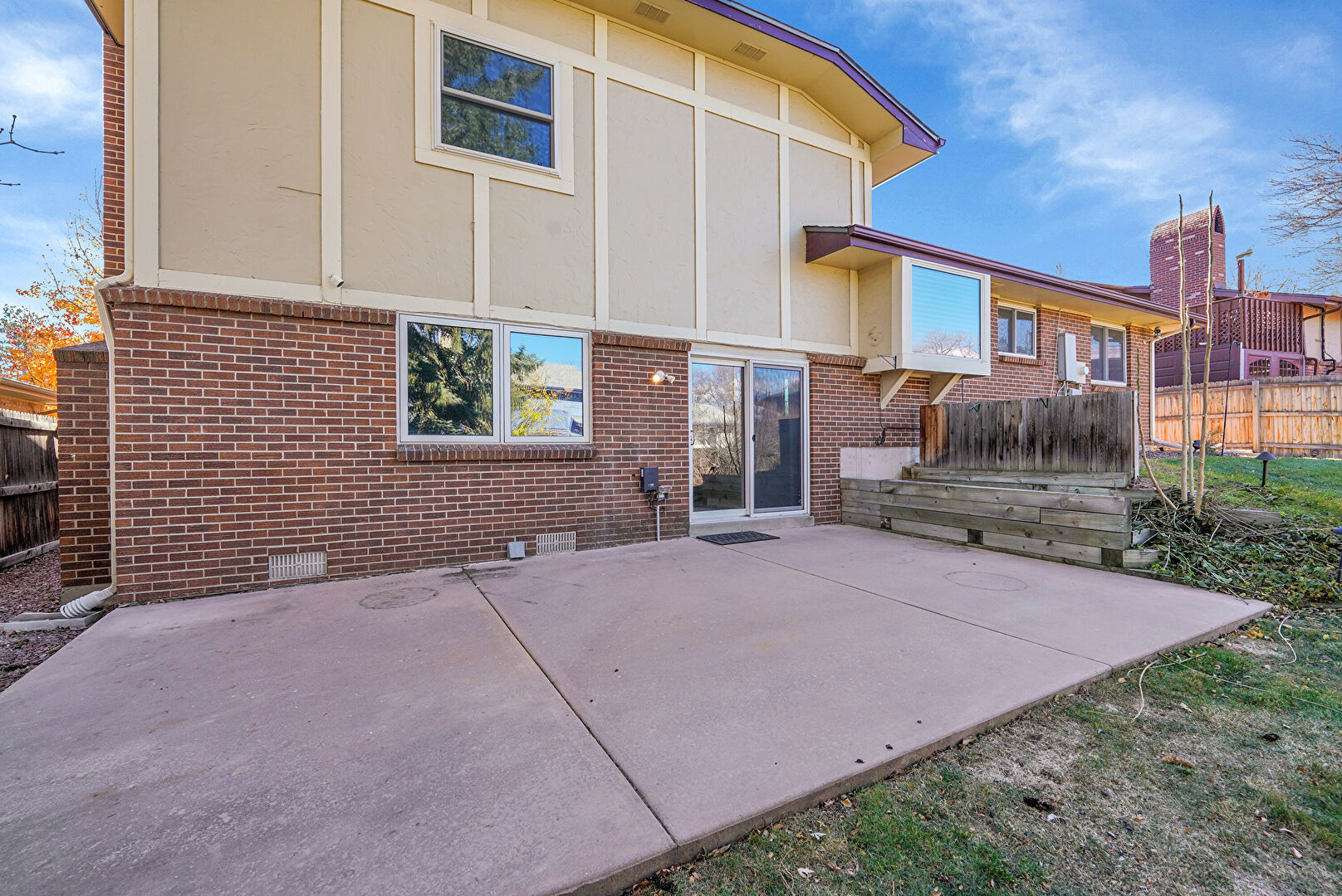 Brick Siding, Central Ac, Concrete Foundation, Downspout, Fence, Gutters, Lawn, Patio, Stucco Siding, Vertical Siding, Board Batten Siding, Brick Siding, Crawl Space