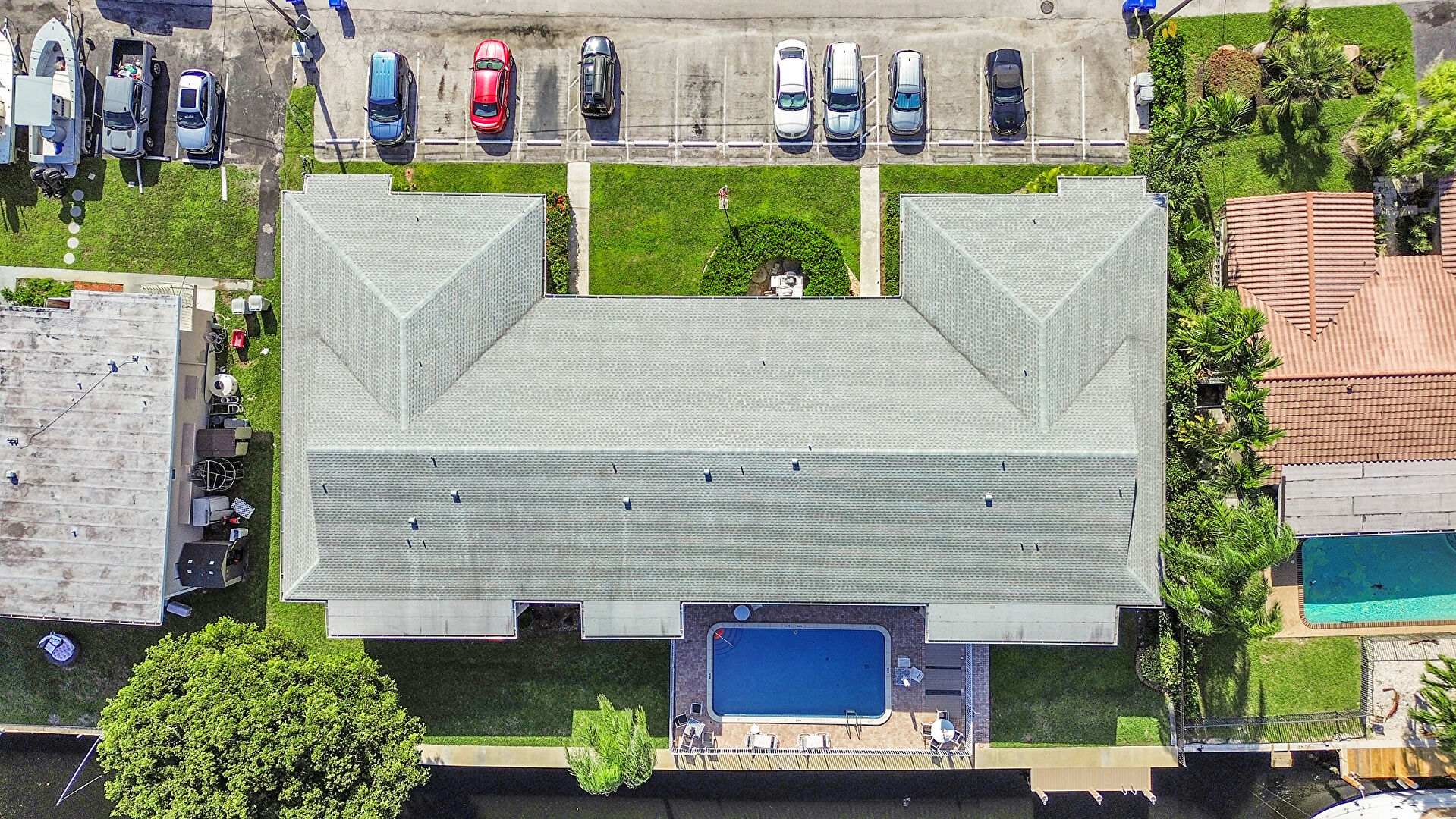 Fence, Handrail, Lawn, Patio, Pool, Shingle Roof, Stucco Siding, Sunroom, Water View, Waterfront Bulkhead, Waterfront