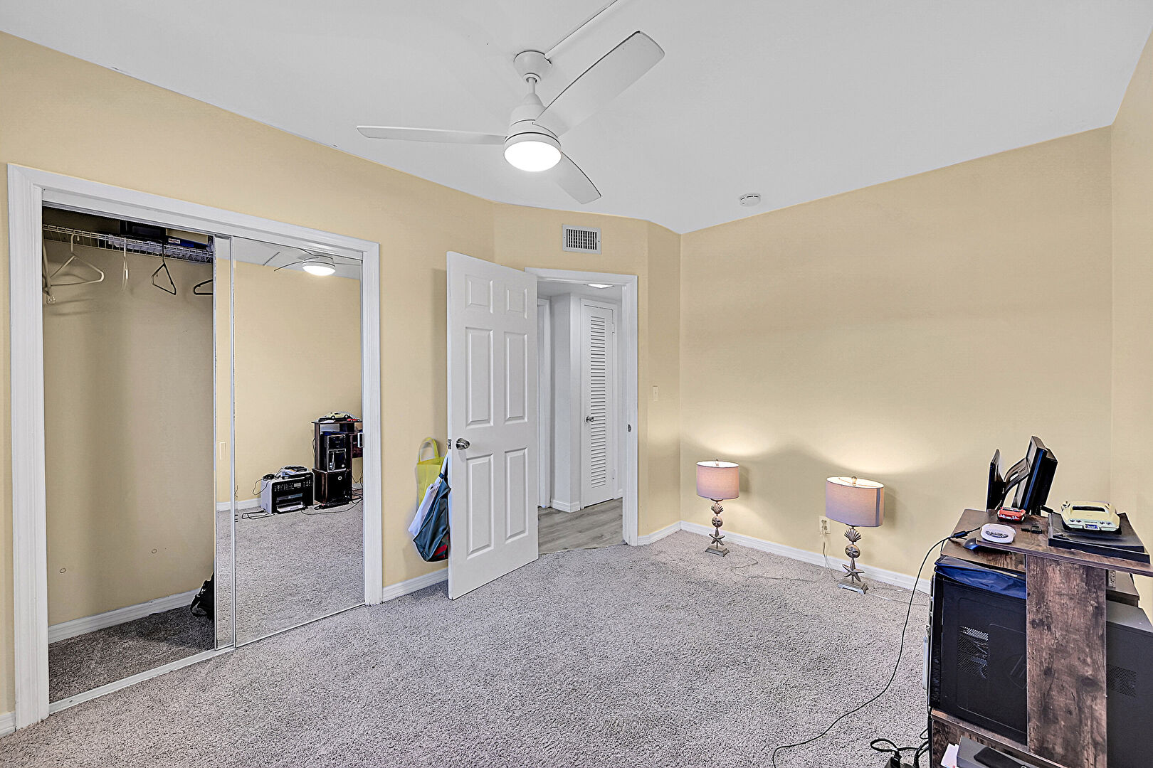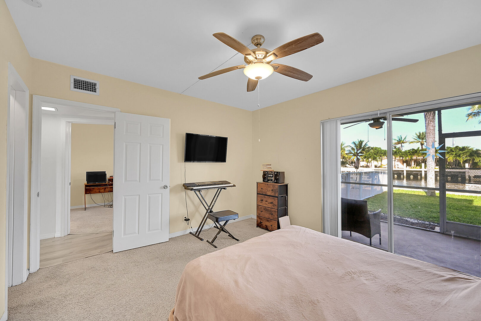 Access To Exterior, Baseboards Wall, Carpet, Ceiling Fan, Drywall, Ensuite Bathroom, Natural Light, Office Area, Vent, Walk In Closet, Waterfront, Carpet, Ceiling Fan, Vent