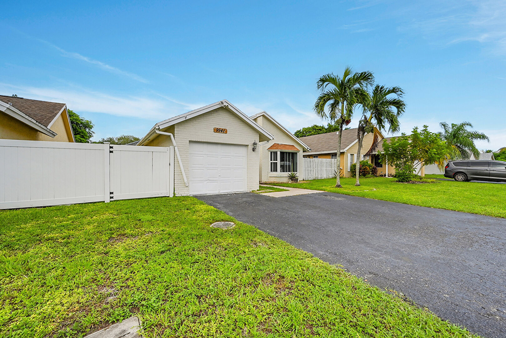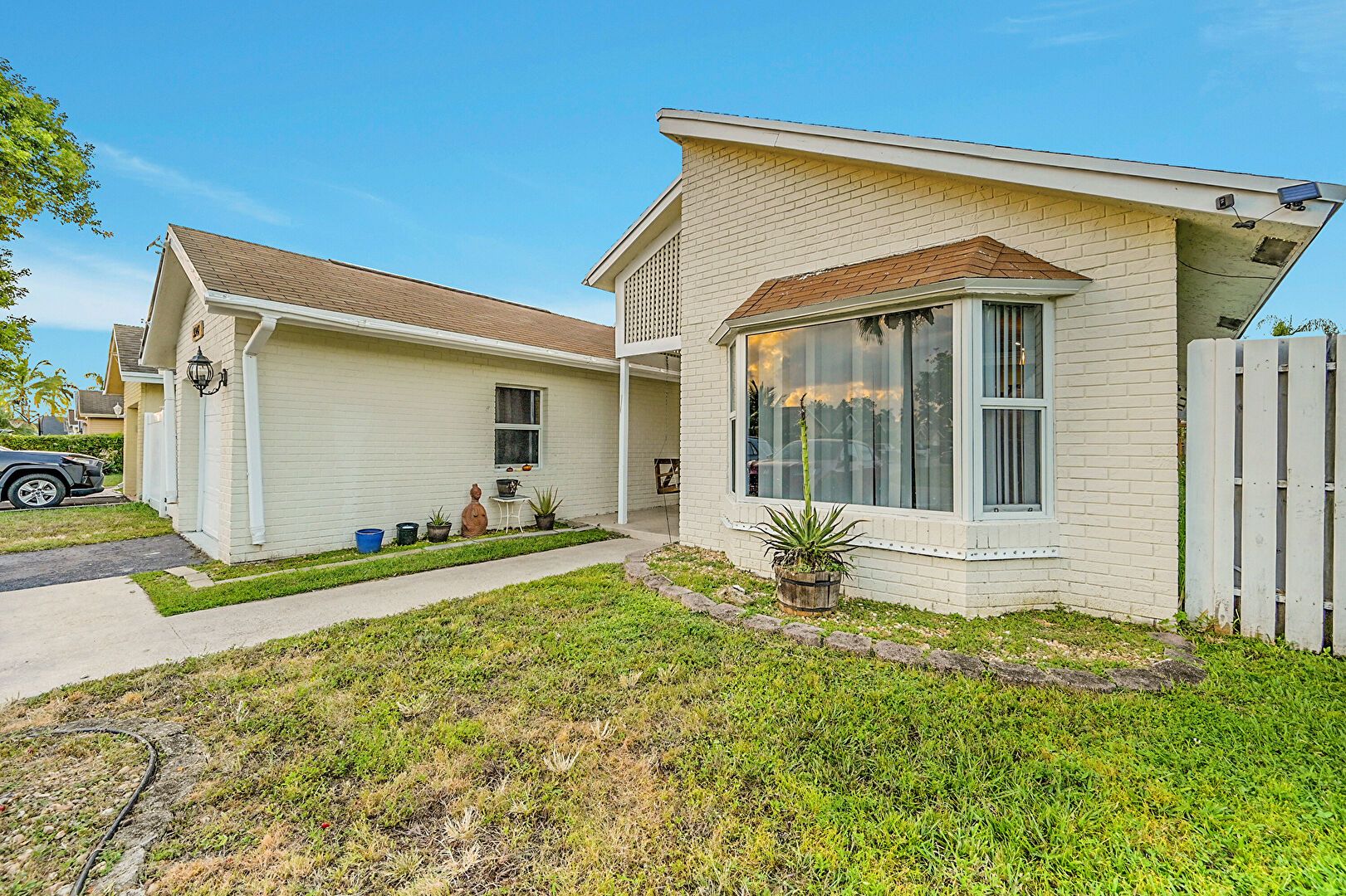 Brick Siding, Downspout, Driveway, Fence, Gate, Gutters, Horizontal Siding, Lawn, Water Meter, Brick Siding, Driveway, Fence, Lawn, Residential View