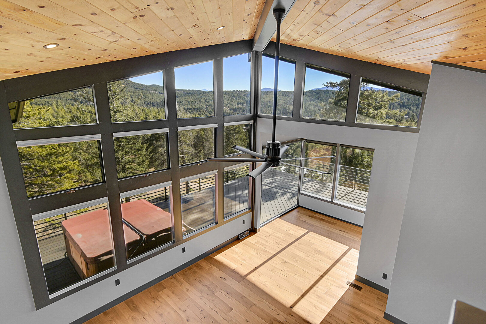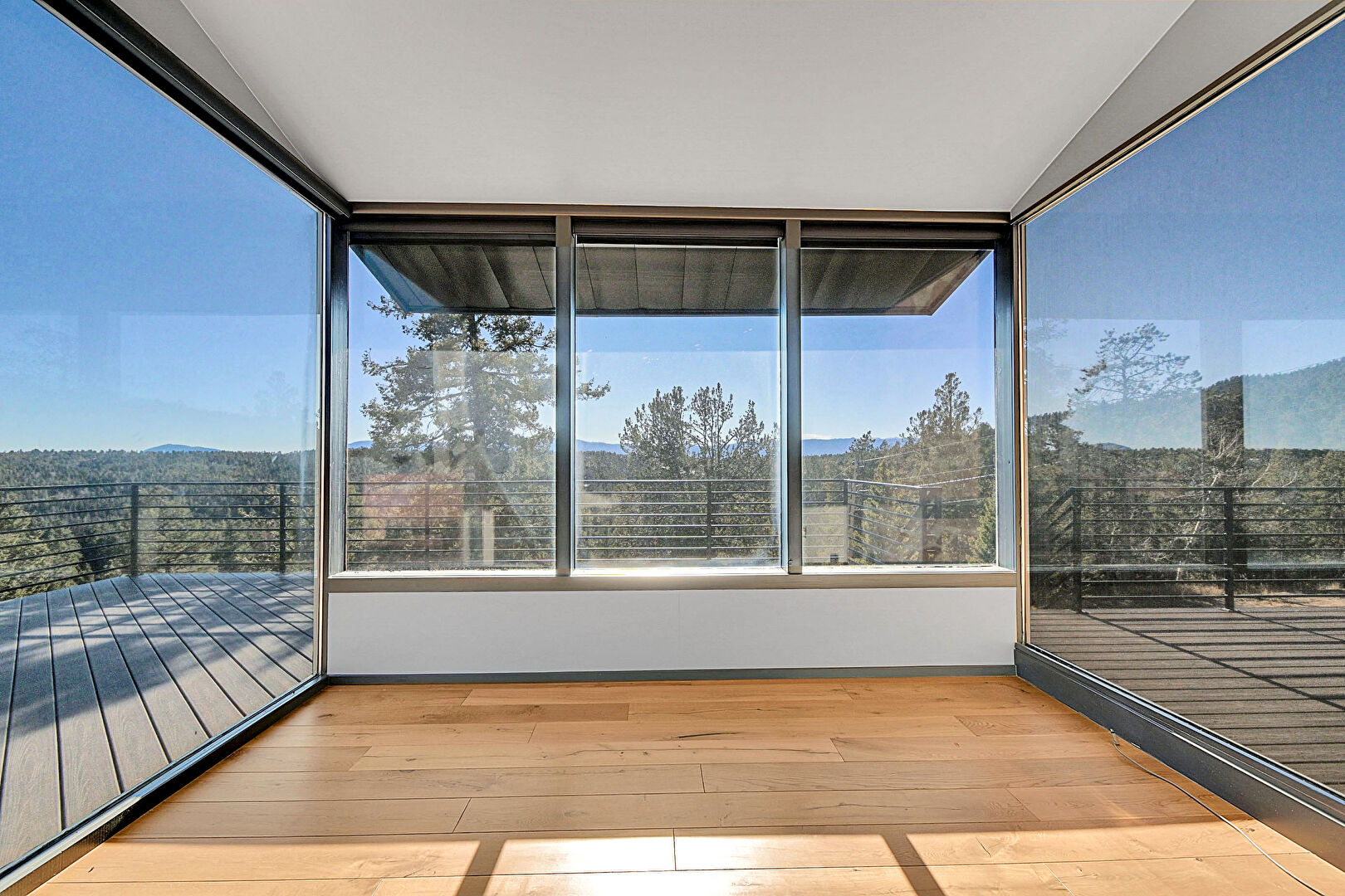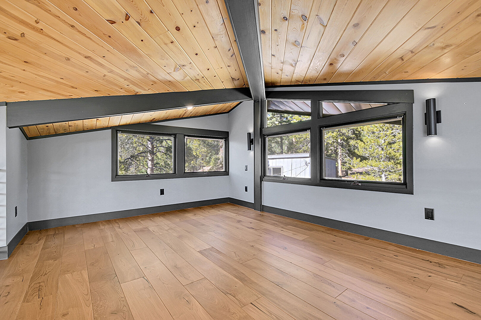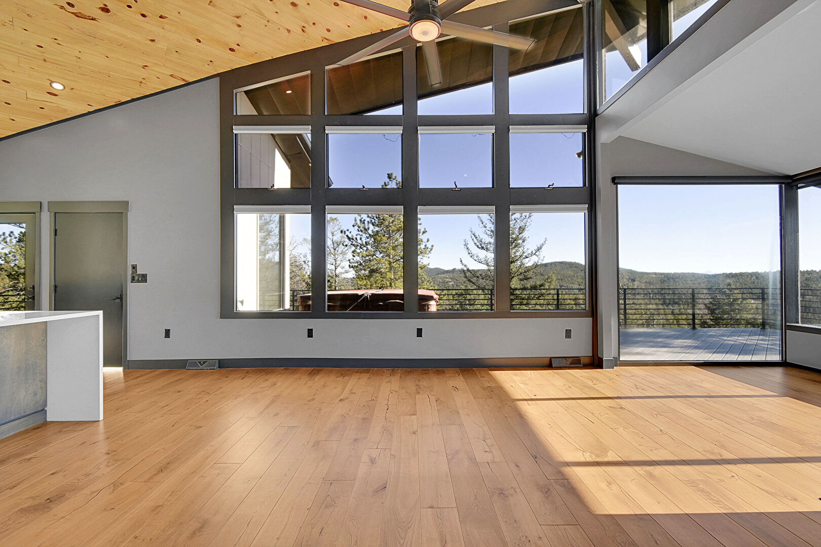 Baseboards Wall, Cathedral Ceiling, Drywall, Floor Ceiling Windows, Forest View, High Ceiling, Mountain View, Natural Light, Vaulted Ceiling, Wood Ceiling, Wood Finish Floor, Beamed Ceiling, Sunroom, Vaulted Ceiling