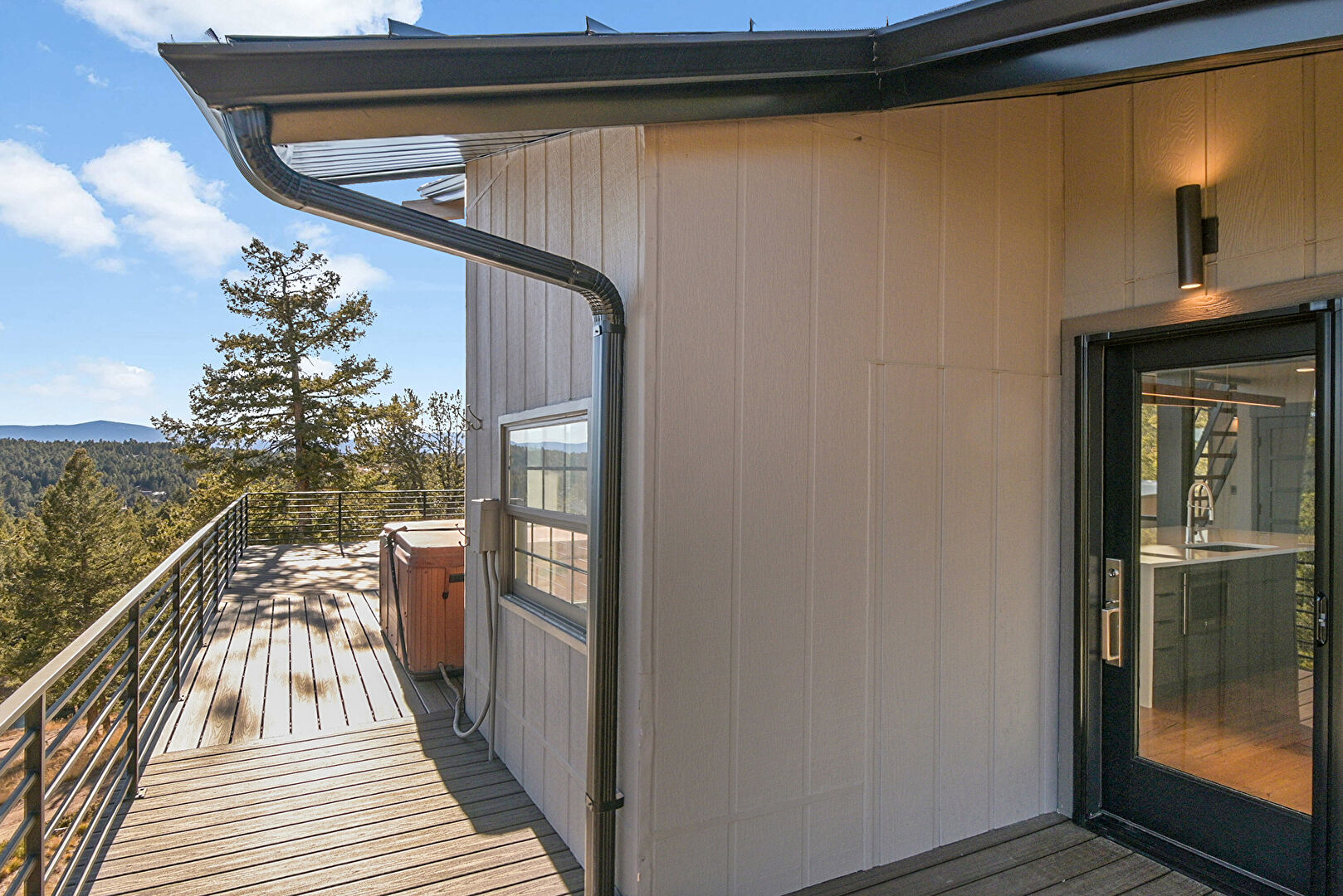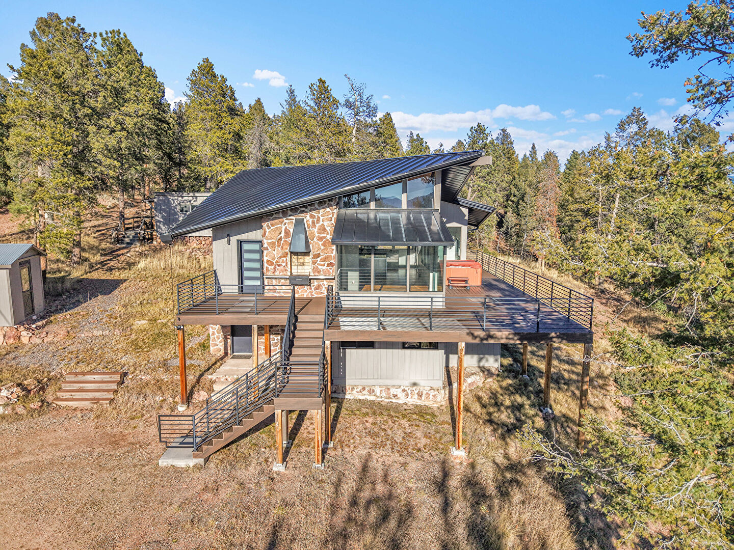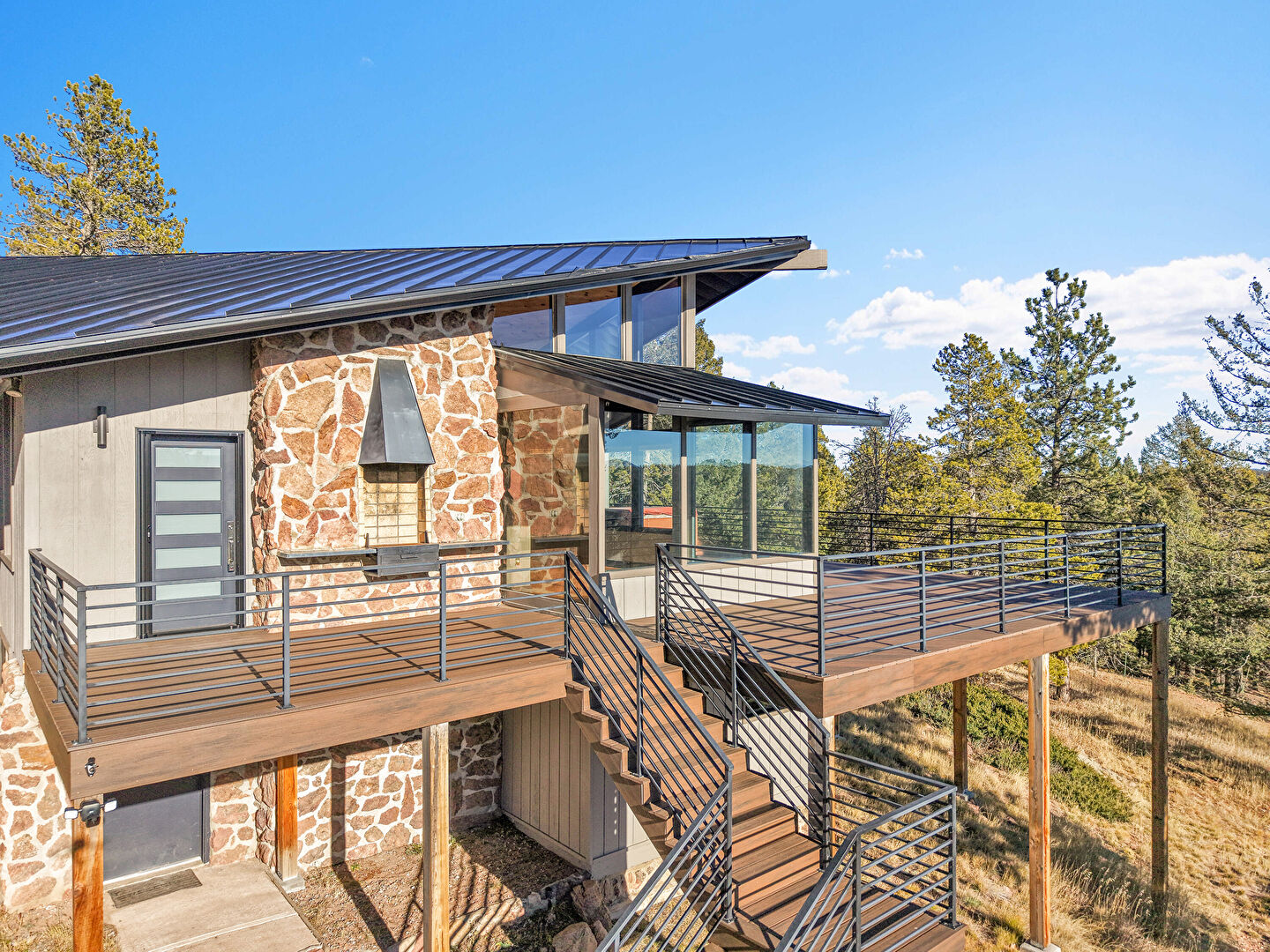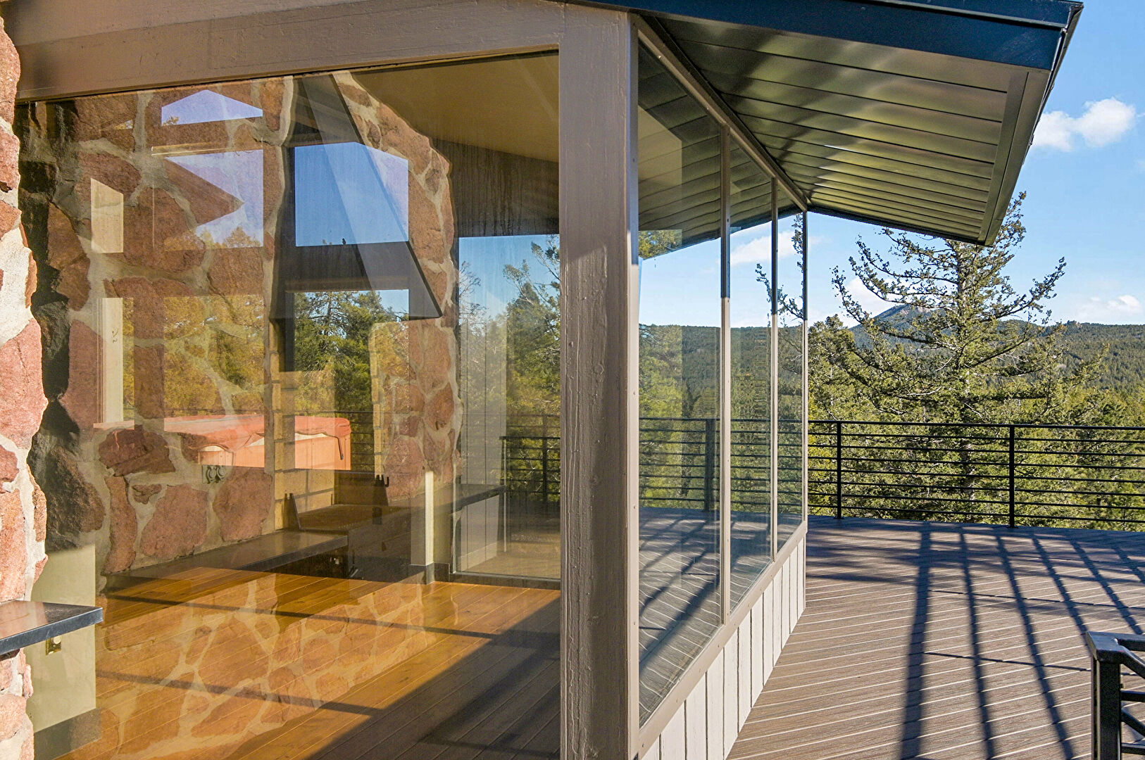 Balcony, Basement Walk Out, Central Ac, Deck, Forest View, Glass Siding, Gutters, Hot Tub, Metal Roof, Outdoor Structure, Patio, Stairs, Standing Seam Roof, Stone Siding, Sunroom, Vertical Siding, Glass Siding, Metal Roof, Standing Seam Roof, Sunroom