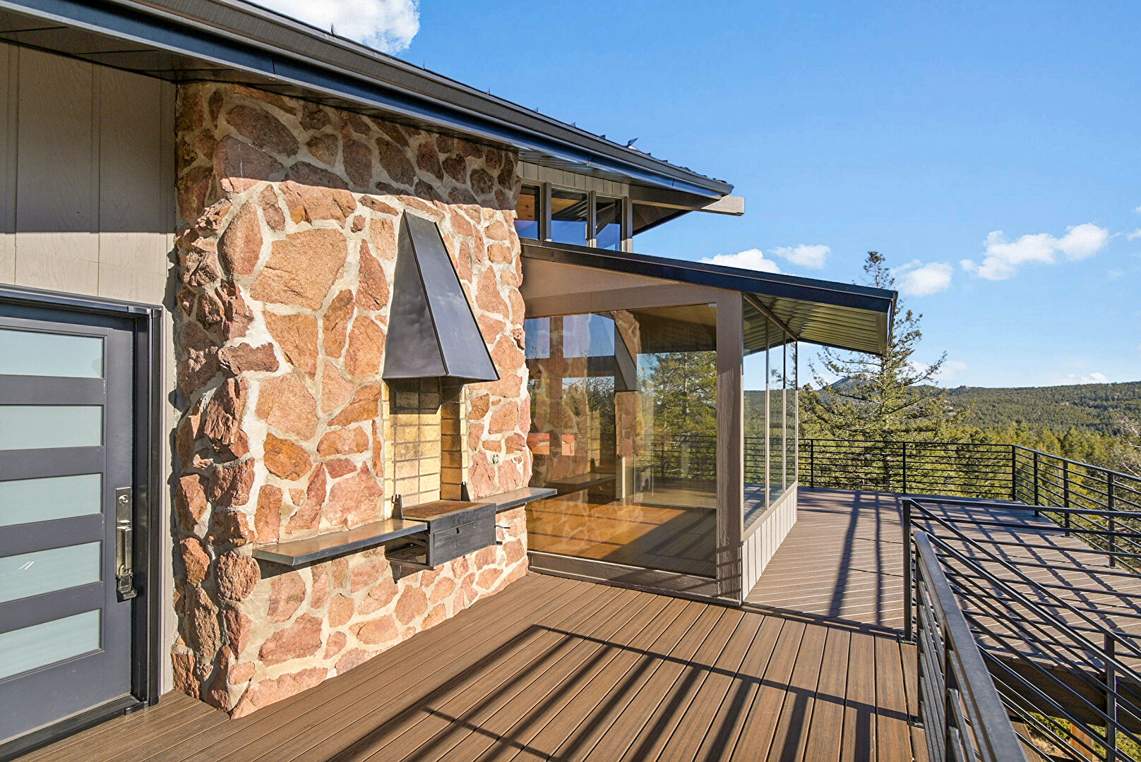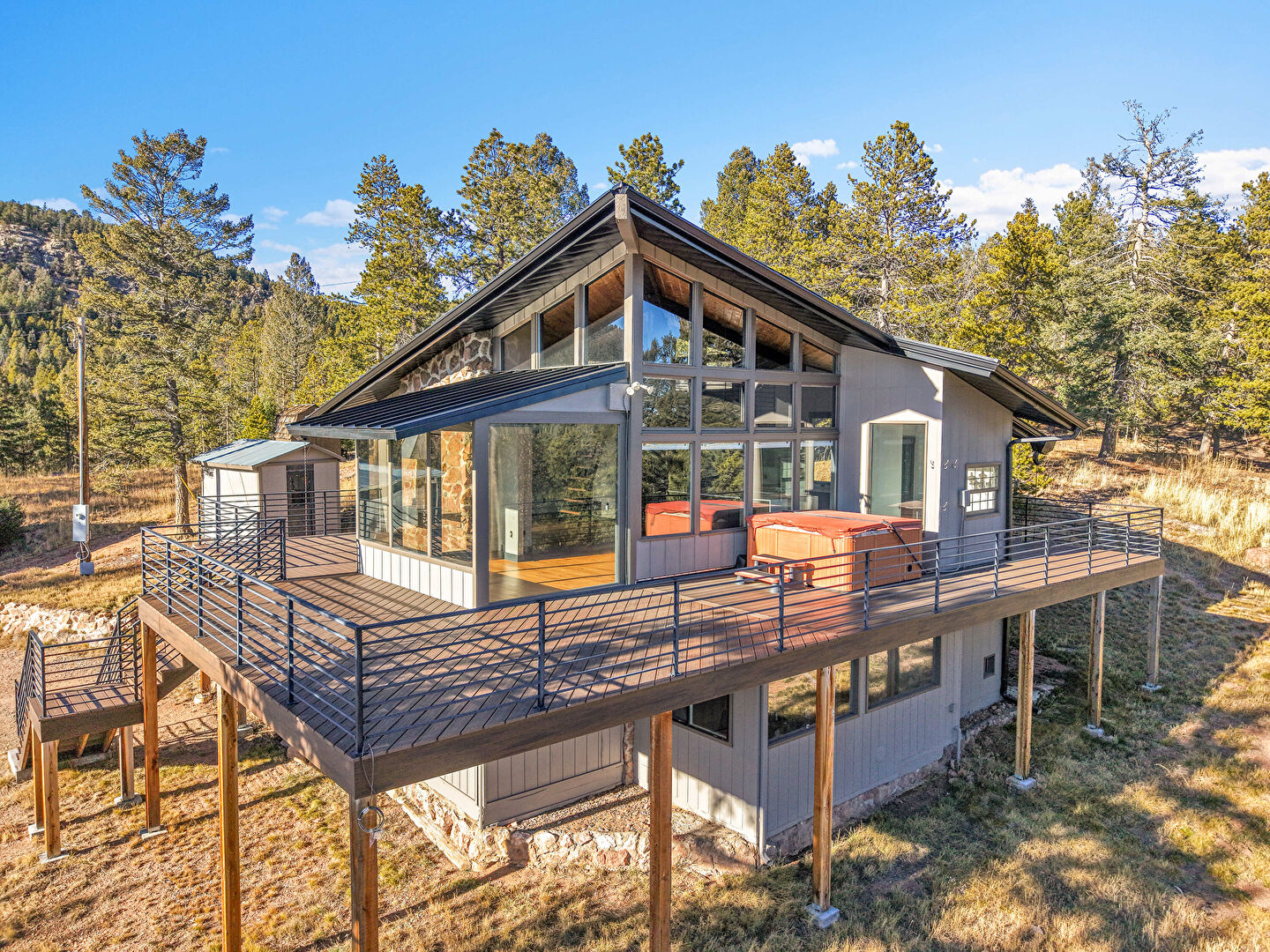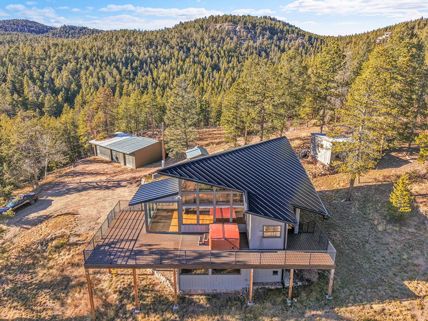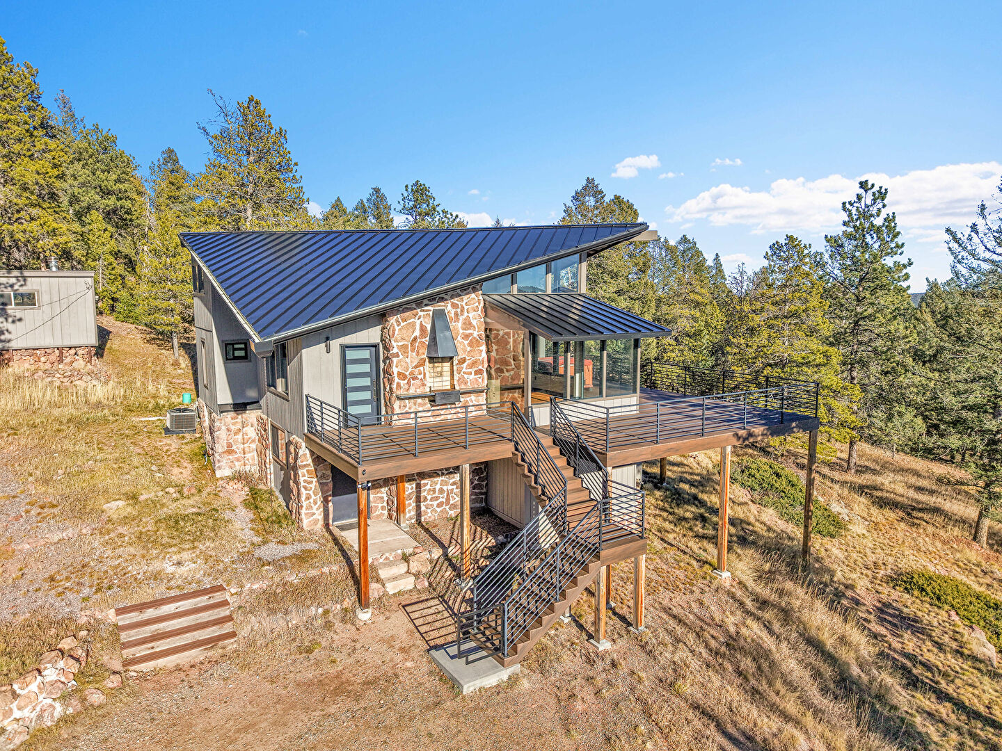 Balcony, Basement Walk Out, Central Ac, Deck, Forest View, Glass Siding, Gutters, Hot Tub, Metal Roof, Outdoor Structure, Patio, Stairs, Standing Seam Roof, Stone Siding, Sunroom, Vertical Siding, Glass Siding, Metal Roof, Standing Seam Roof, Sunroom