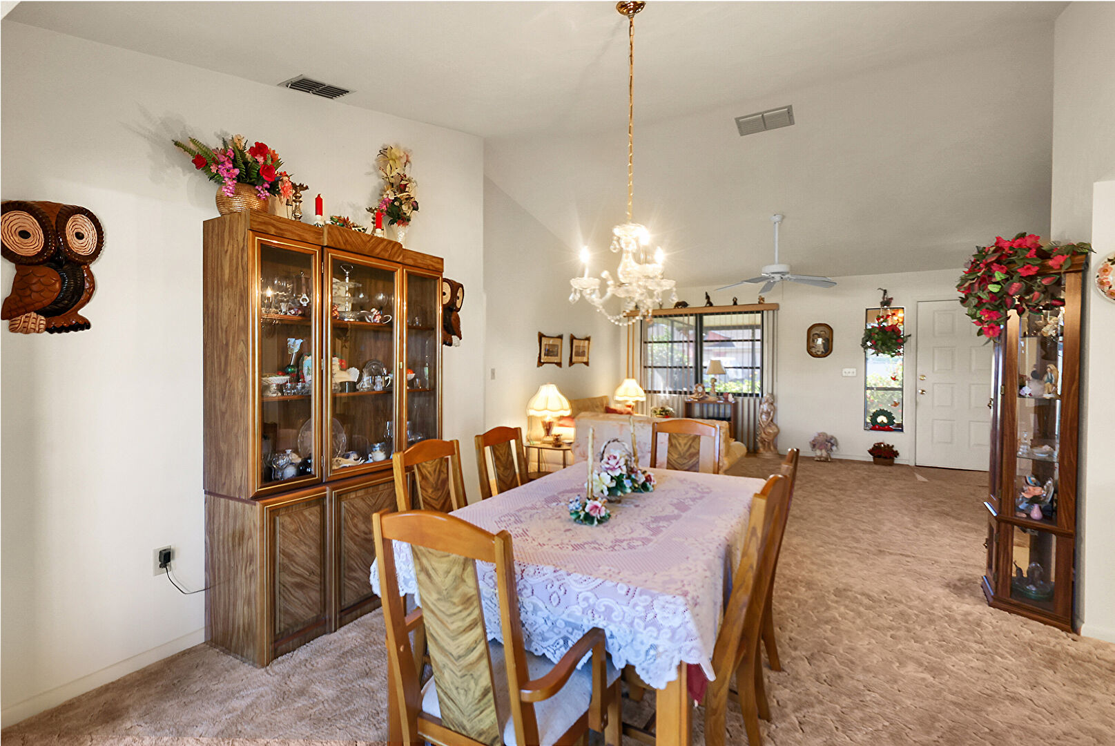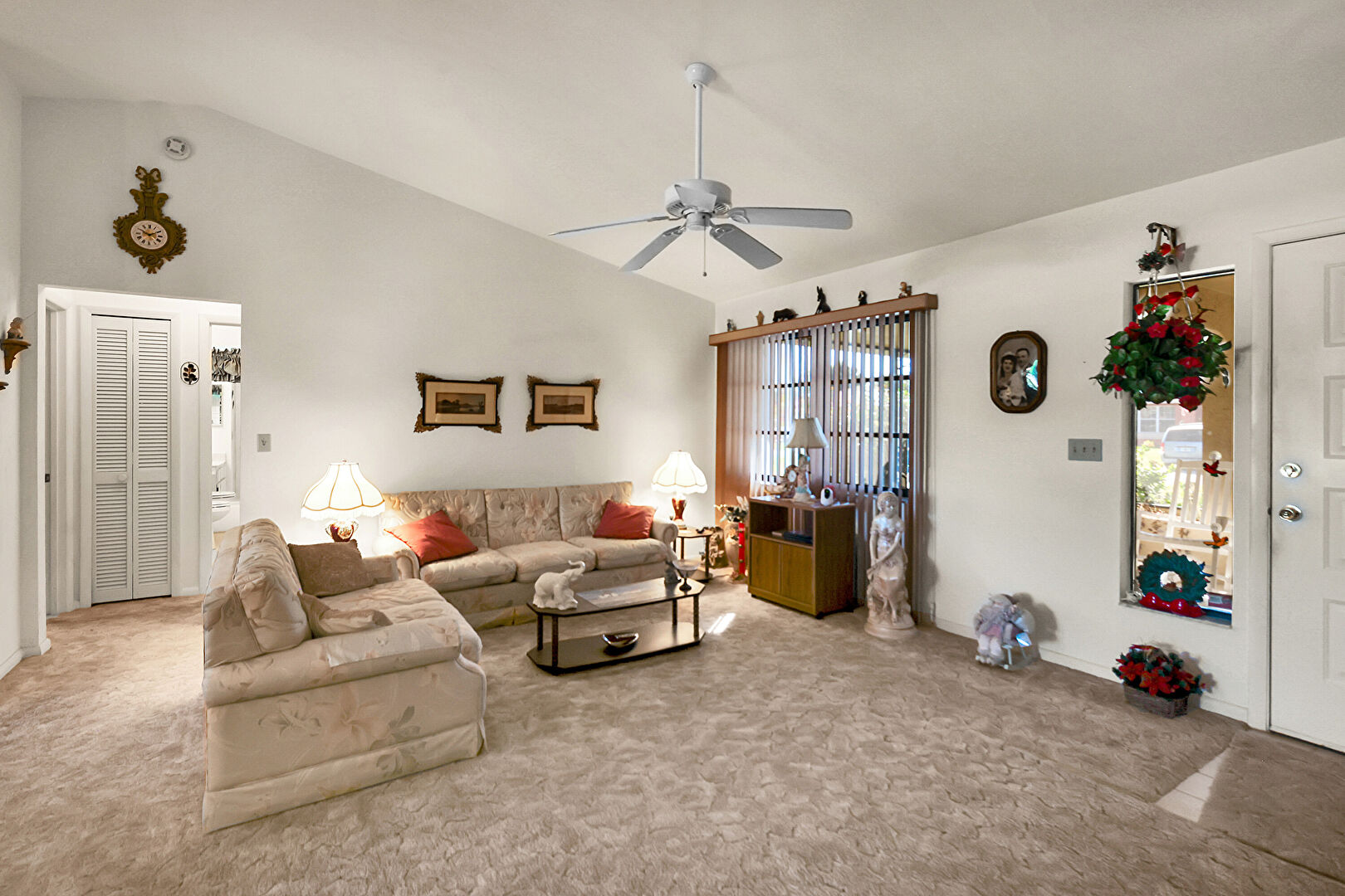 Baseboards Wall, Carpet, Ceiling Fan, Drywall, High Ceiling, Natural Light, Notable Chandelier, Vaulted Ceiling, Vent, Baseboards Wall, Vaulted Ceiling