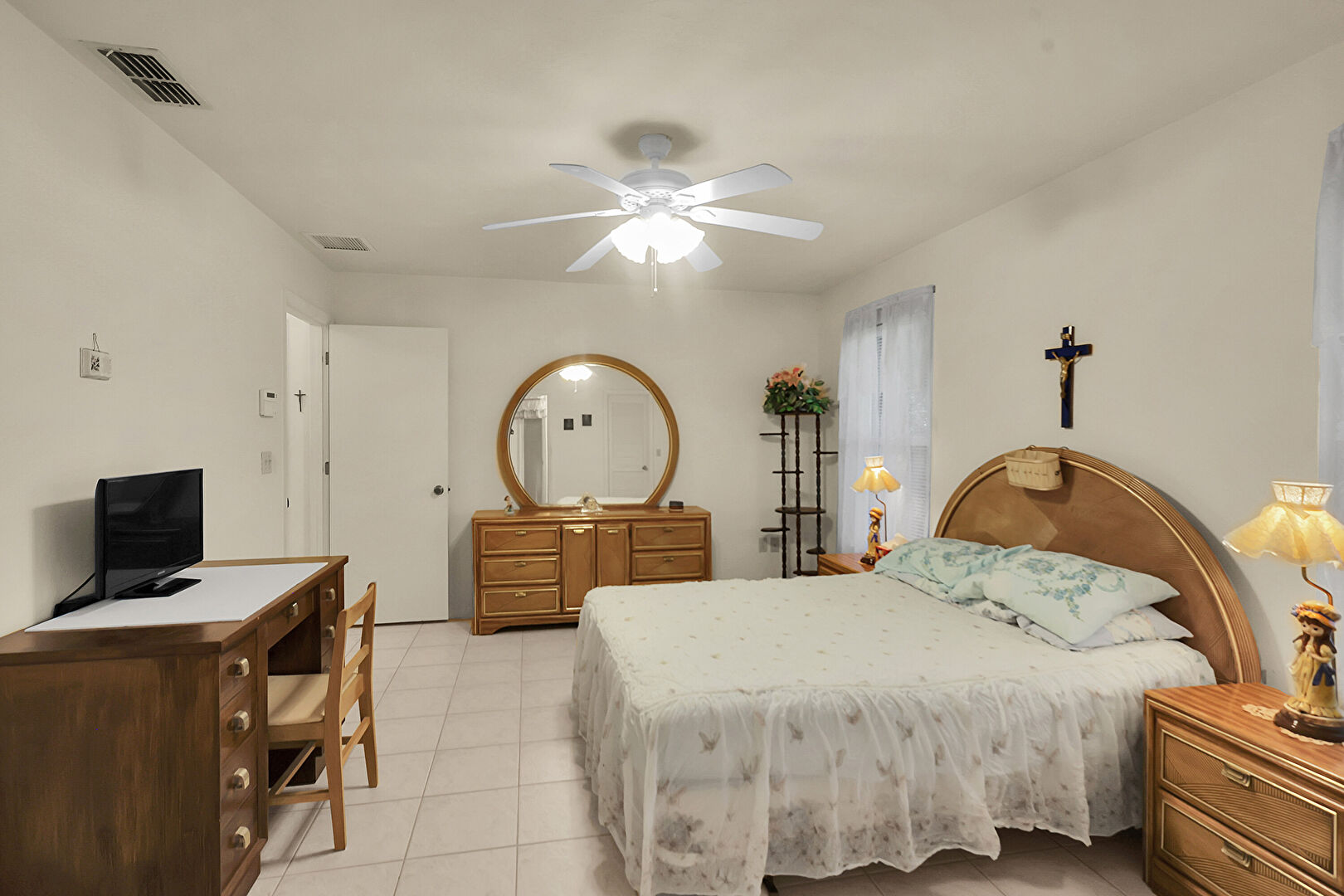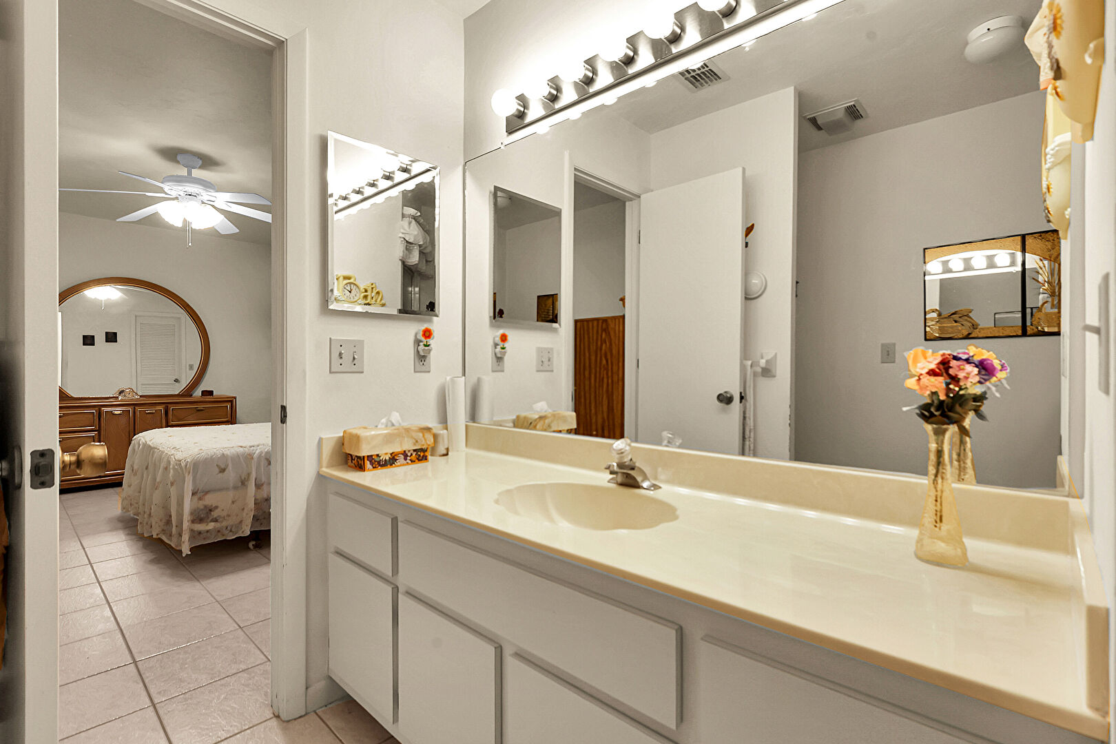 Ceiling Fan, Drywall, Ensuite Bathroom, Full Bathroom, Smoke Carbon Monoxide Detector, Tile Floor, Vanity, Vent, Closet, Drywall