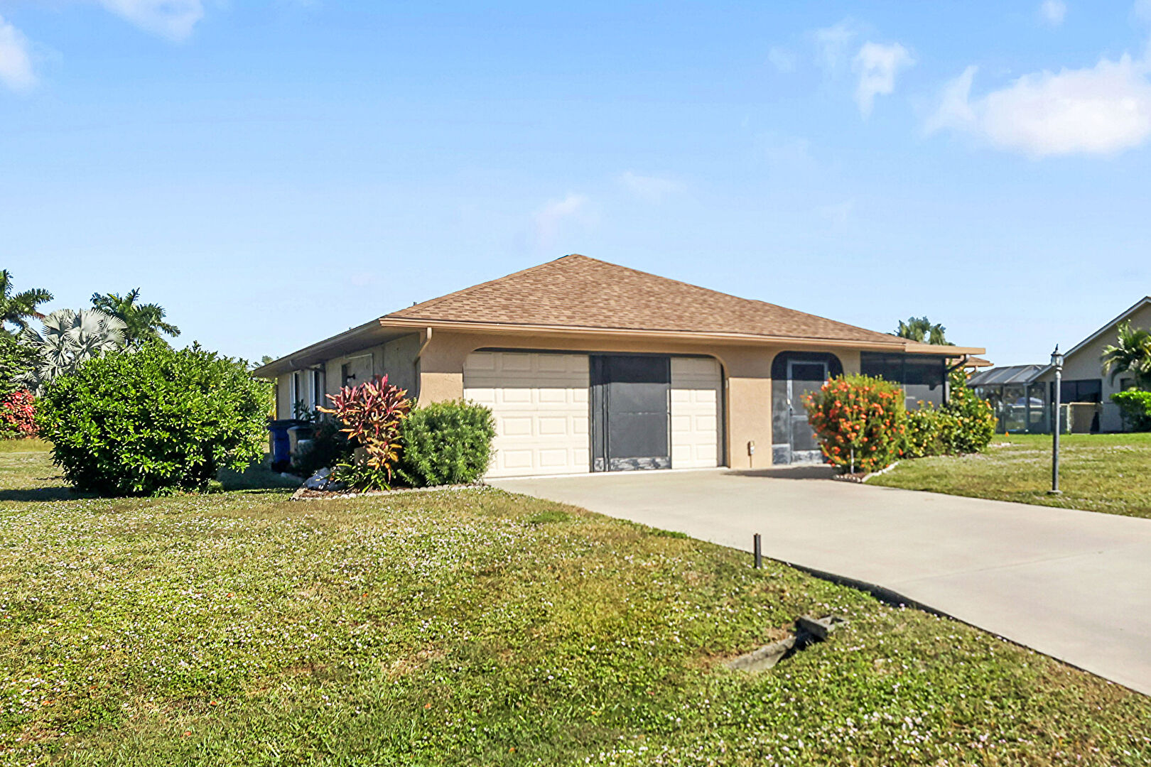 Downspout, Driveway, Gutters, Lawn, Shingle Roof, Stucco Siding, Driveway, Lawn