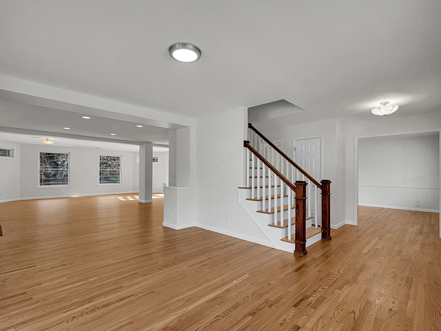 Baseboards Wall, Drywall, Natural Light, Vent, Wood Finish Floor, Stairs