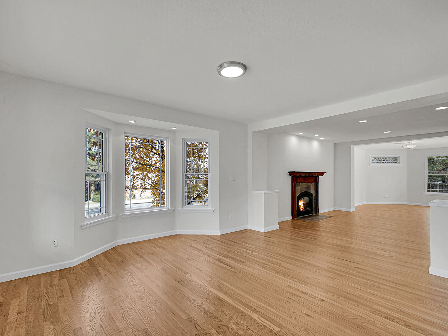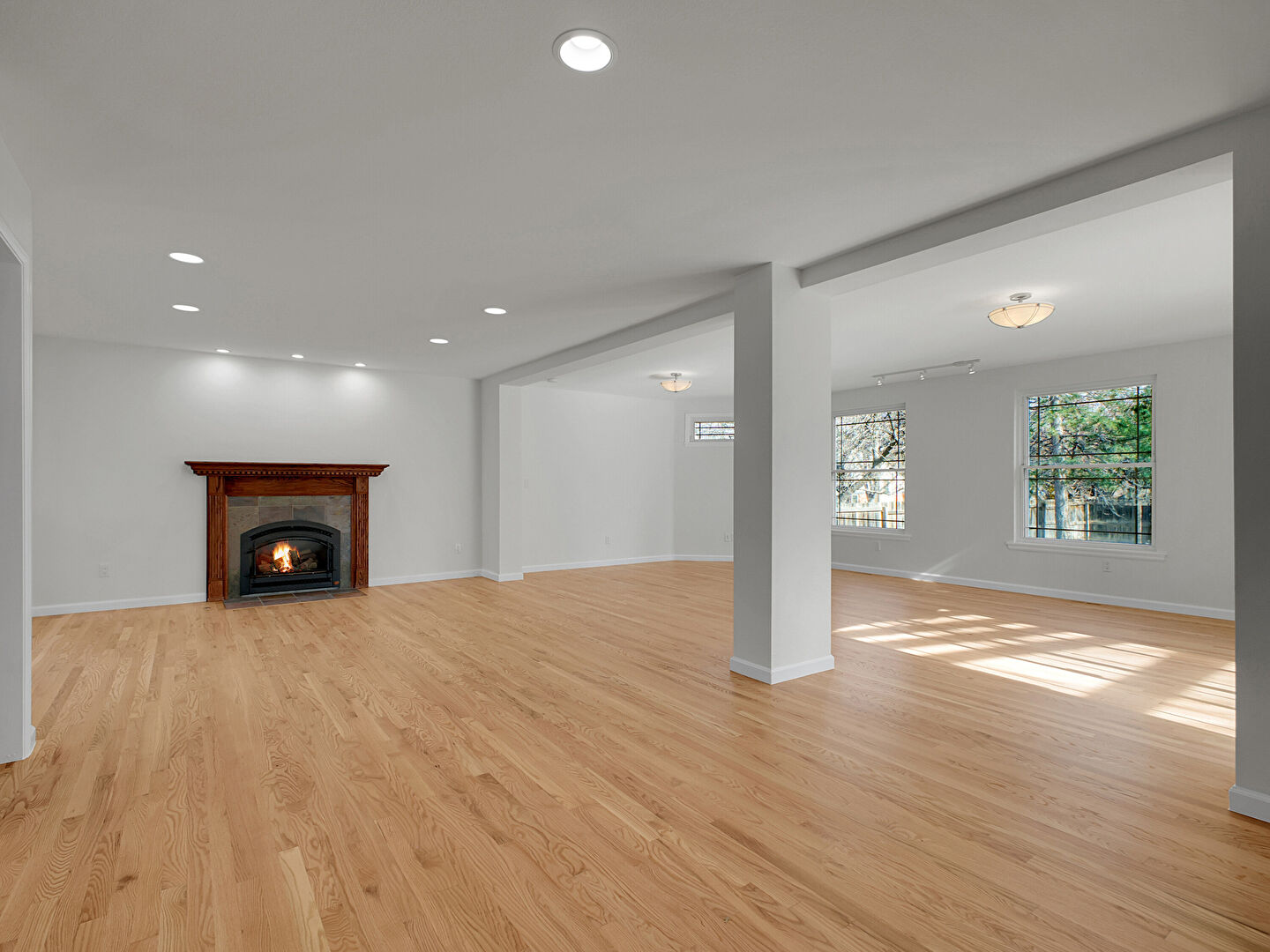 Baseboards Wall, Drywall, Fireplace, Natural Light, Recessed Lighting, Wood Finish Floor