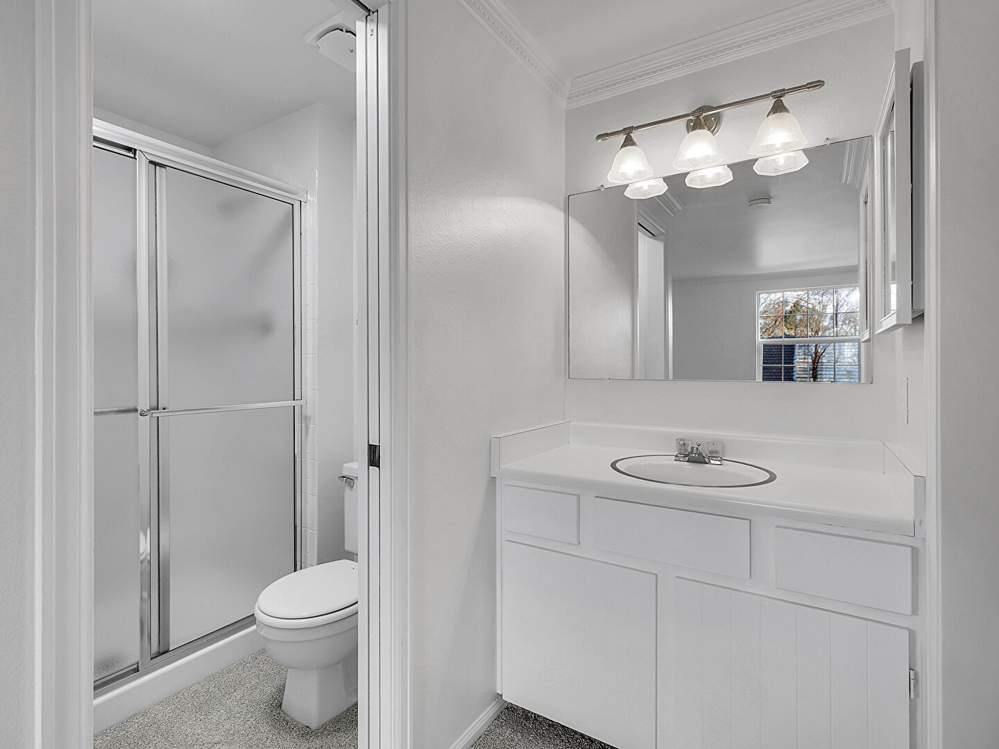 Crown Molding, Drywall, Full Bathroom, Natural Light, Vanity, Drywall, Full Bathroom