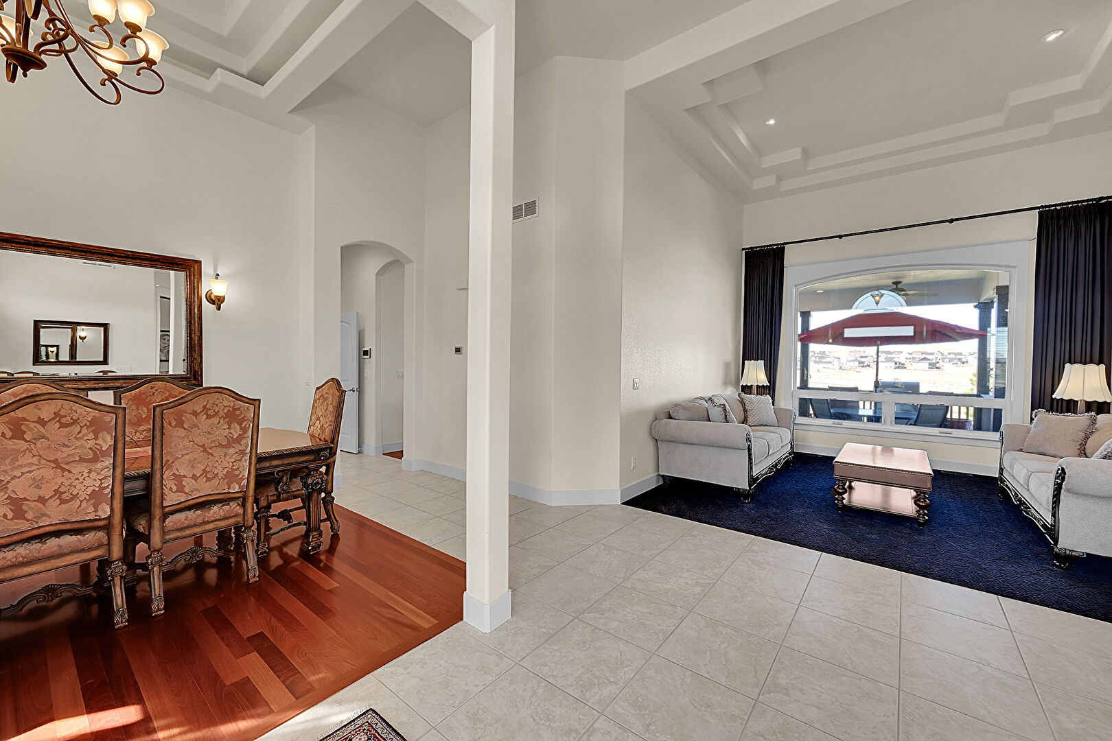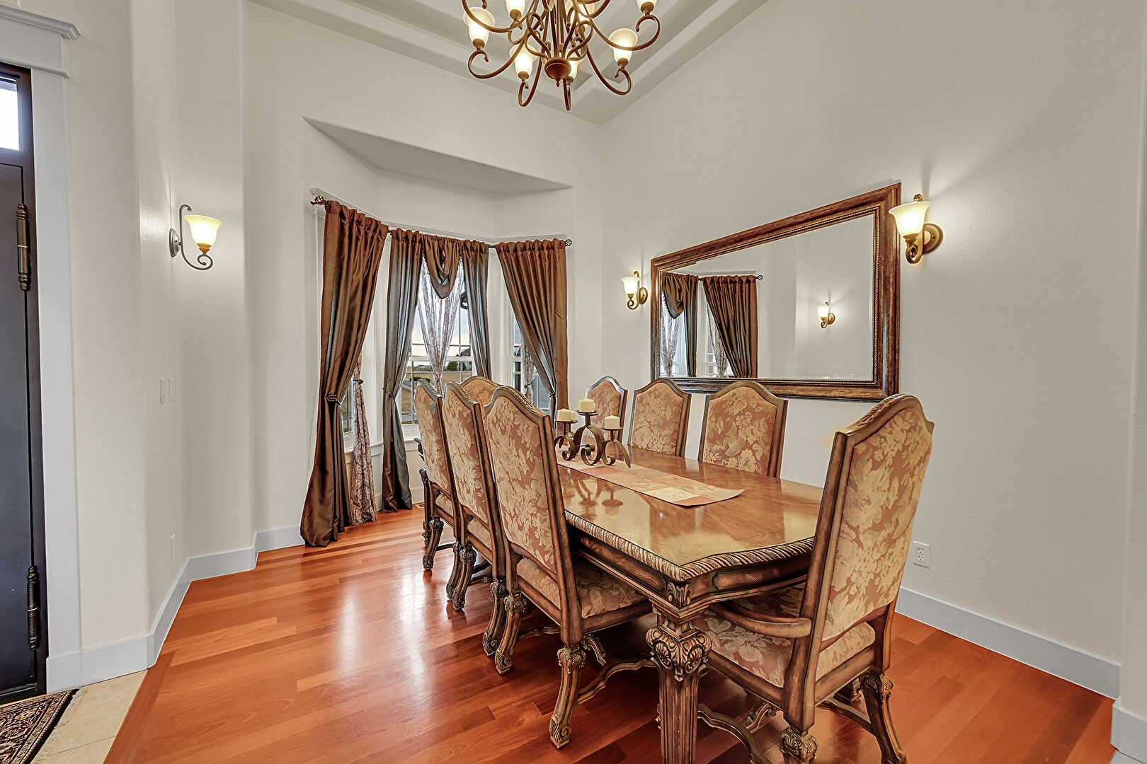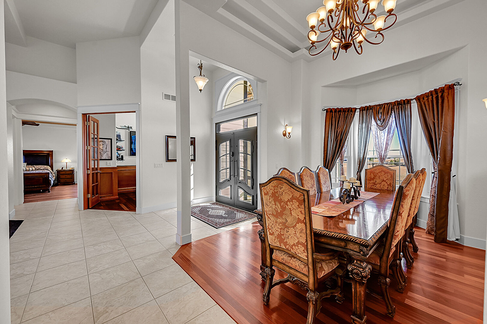 Arched Walkways, Baseboards Wall, Drywall, French Doors, High Ceiling, Natural Light, Notable Chandelier, Recessed Lighting, Tile Floor, Tray Ceiling, Vent, Wood Finish Floor, Crown Molding, Natural Light, Wood Finish Floor