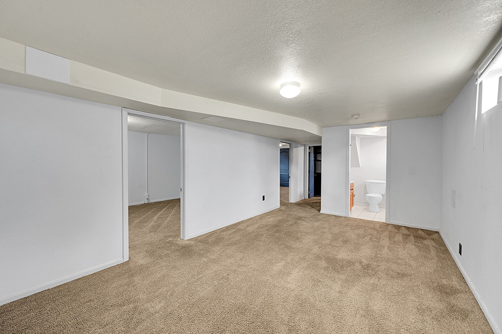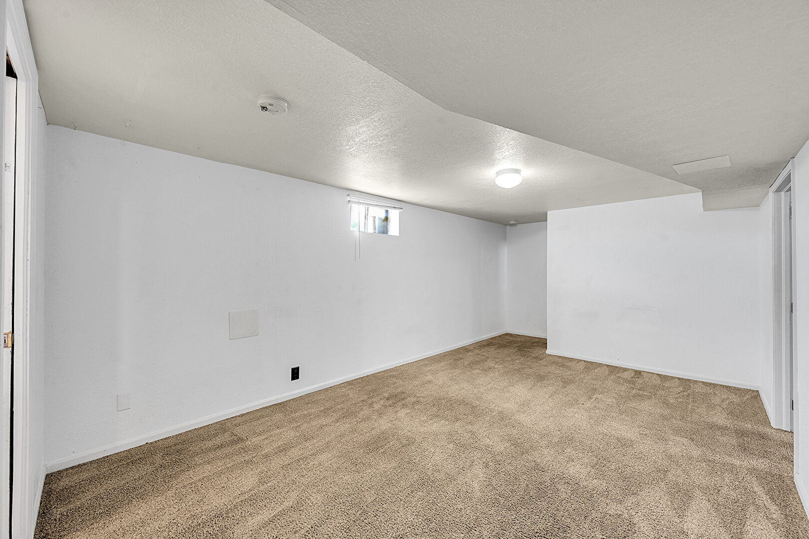 Baseboards Wall, Basement, Carpet, Drywall, Natural Light, Smoke Carbon Monoxide Detector, Textured Ceiling, Carpet, Drywall