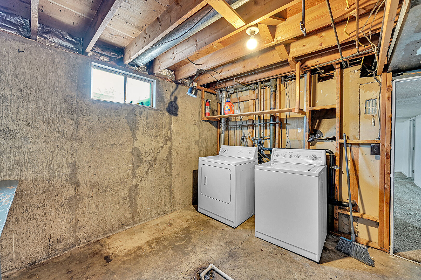 Basement, Concrete Floor, Laundry, Natural Light, Washer Hookup, Fire Extinguisher