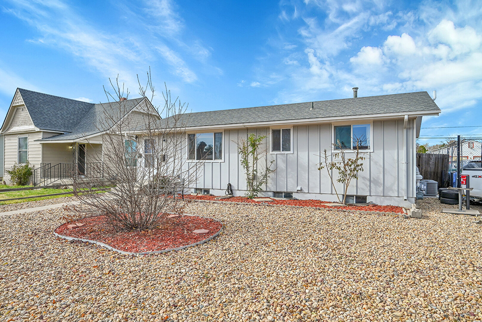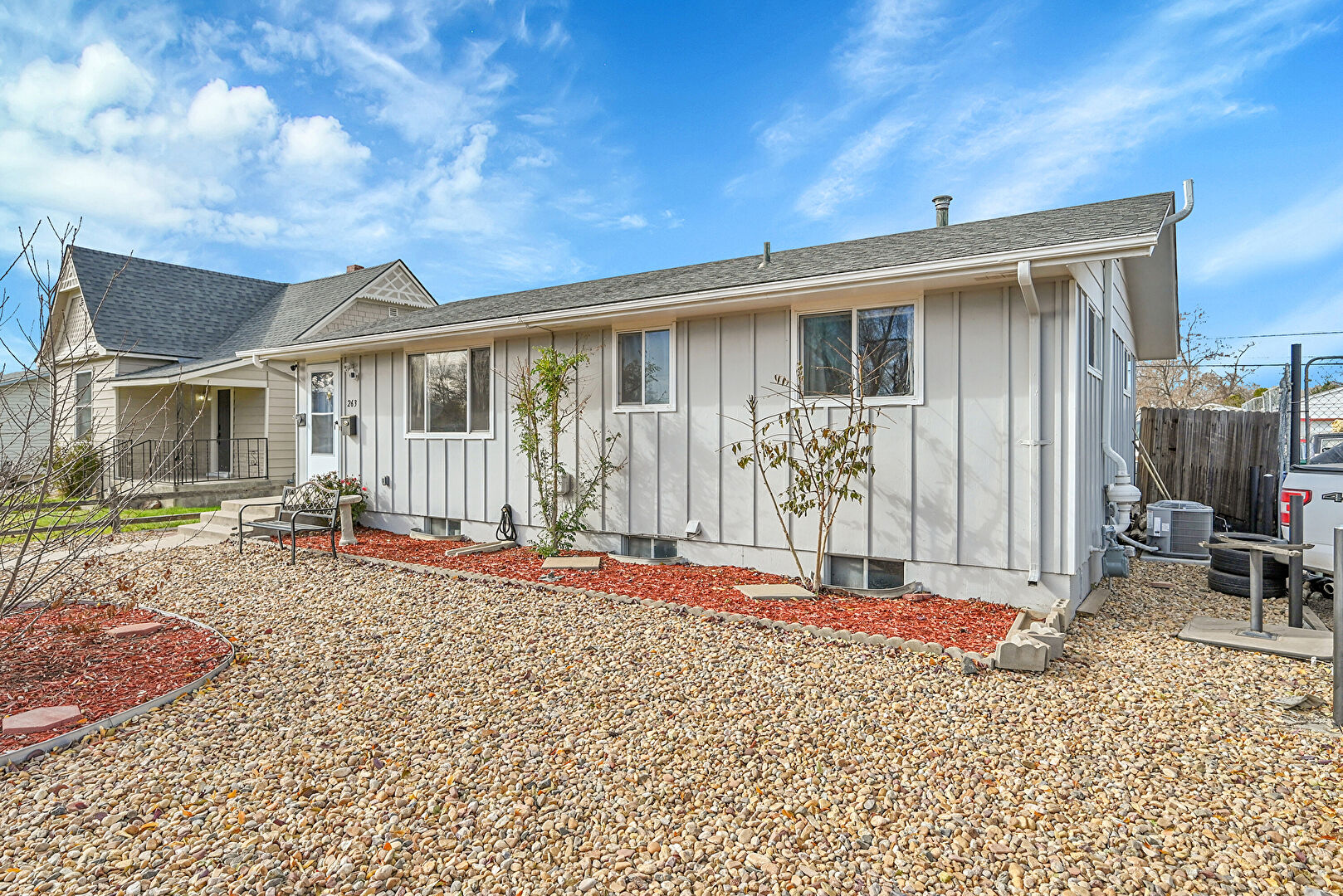 Board Batten Siding, Central Ac, Concrete Foundation, Crawl Space, Downspout, Fence, Gas Meter, Gutters, Parking Pad, Porch, Shingle Roof, Stoop, Vertical Siding, Concrete Foundation, Downspout, Parking Pad, Shingle Roof, Vertical Siding